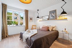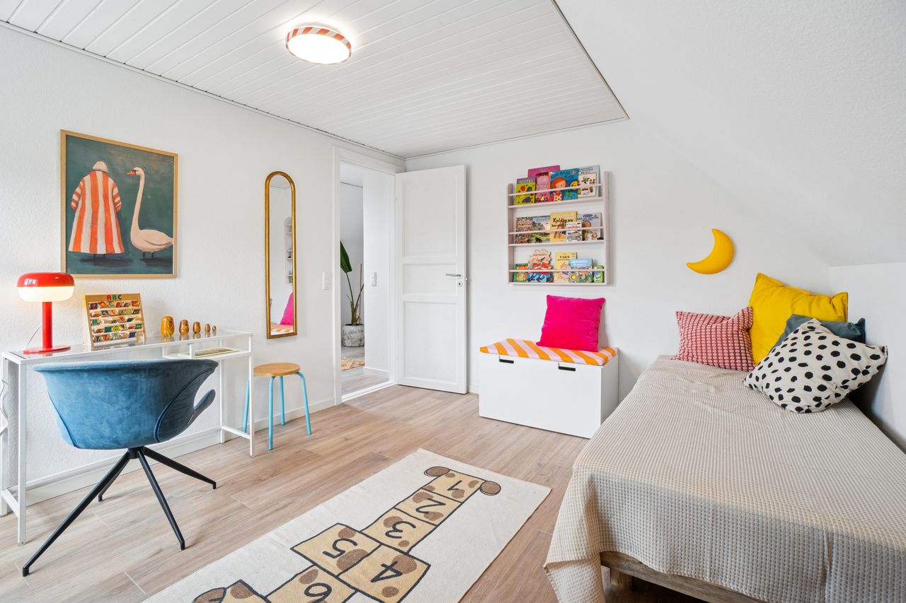 Boligen byder på hele 137 m2 fordelt på to etager, og planløsningen er både funktionel og familievenlig. Huset rummer tre store og lyse værelser, som giver god plads til både børn, hjemmekontor eller gæster.
