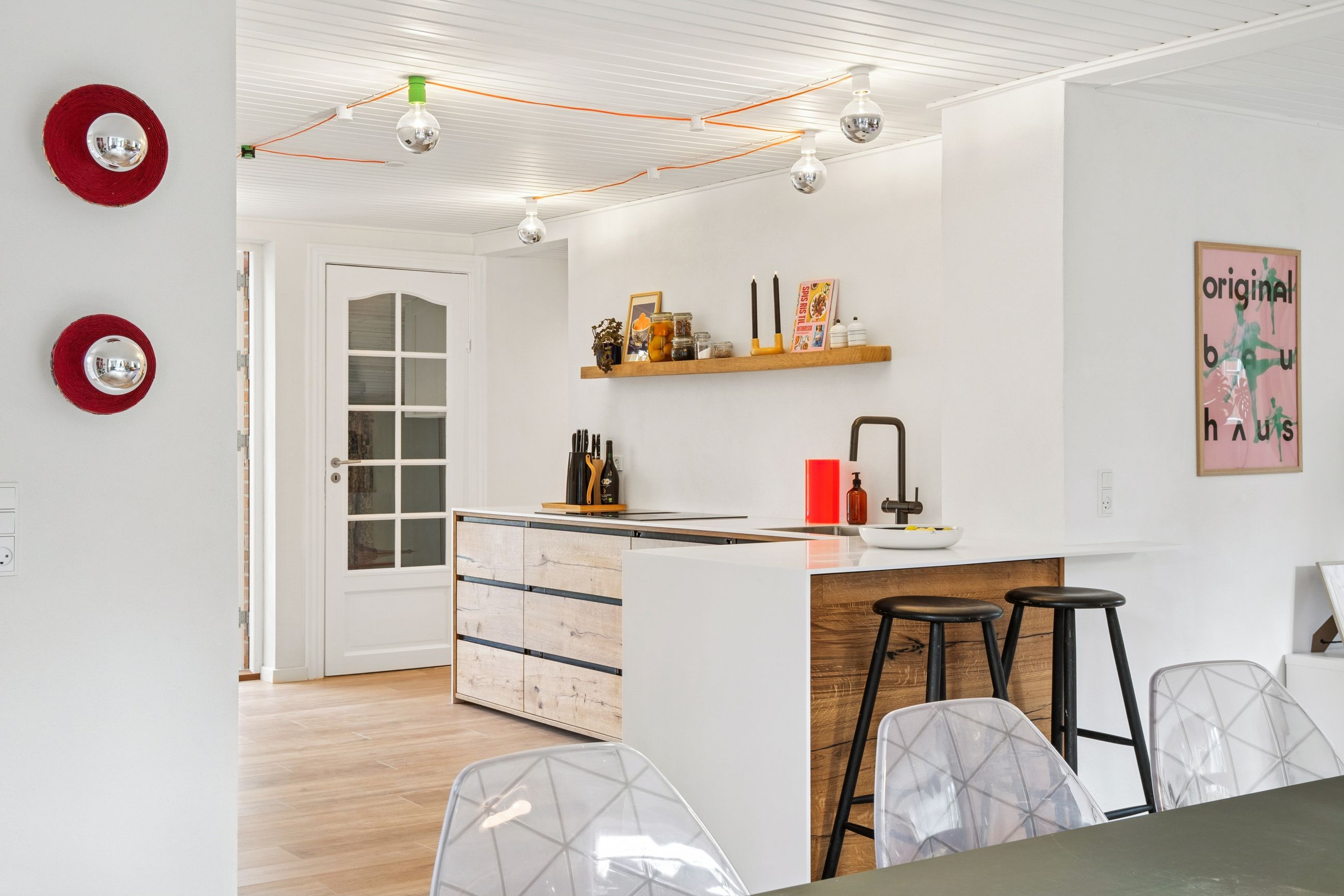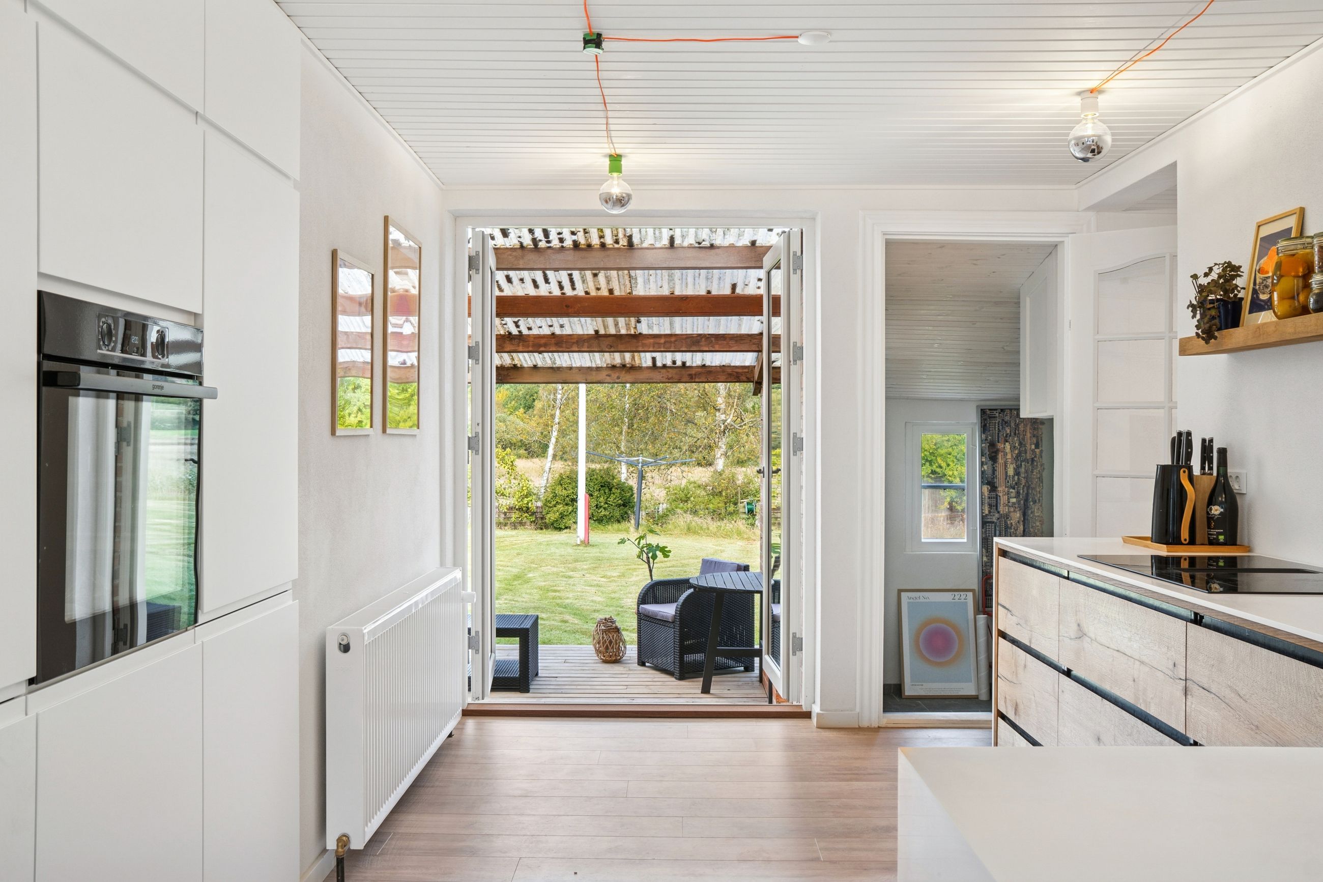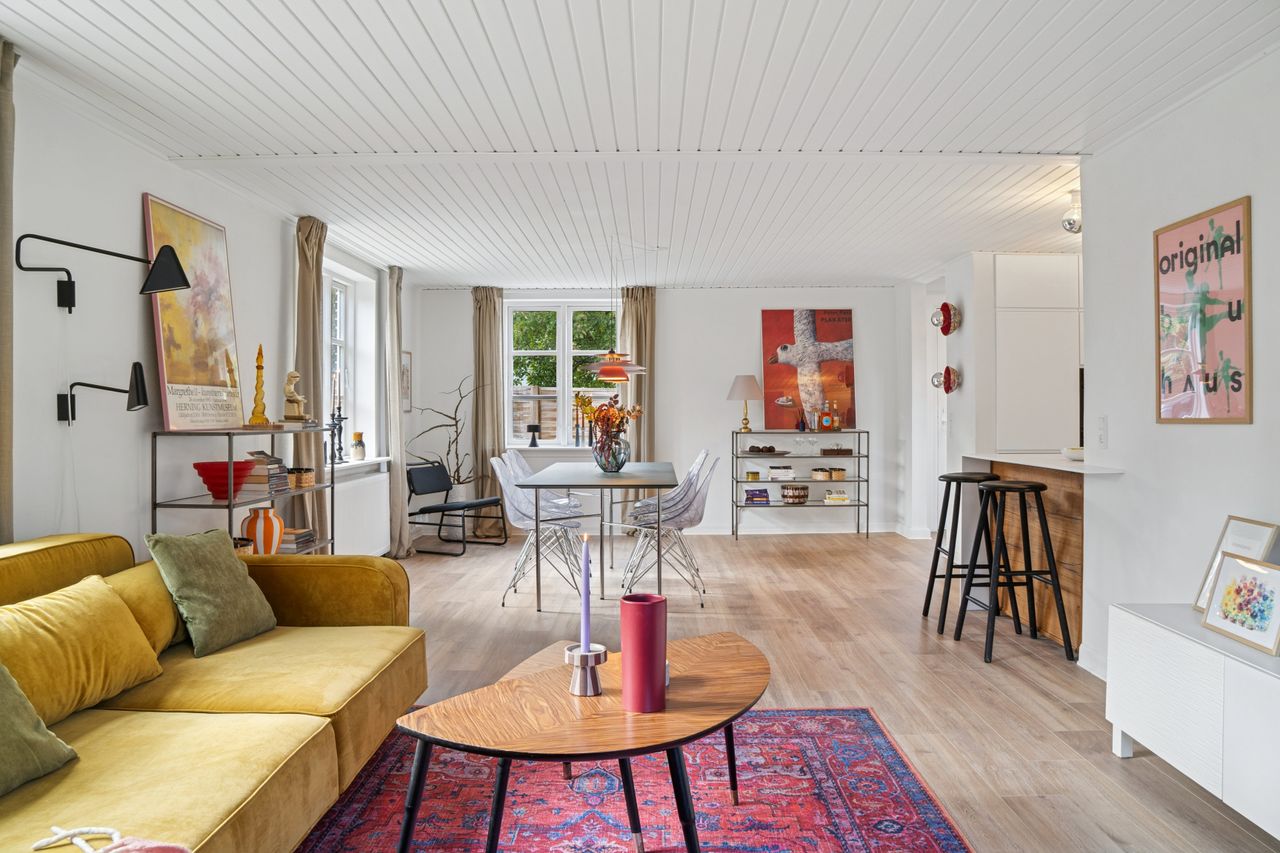 I hele huset er der lagt nye, flotte gulve, som binder rummene elegant sammen og understreger den lyse og indbydende atmosfære.