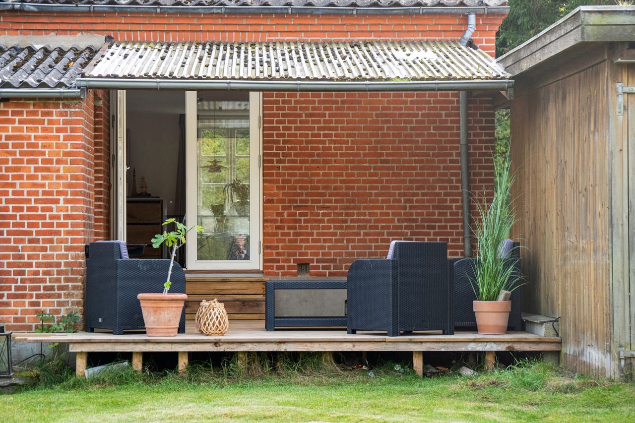 Udenfor får I en overkommelig have på 630 m2 – nem at holde, men med plads til både leg, blomsterbede og afslapning. Carporten på 27 m2 giver desuden god plads til bil og opbevaring.