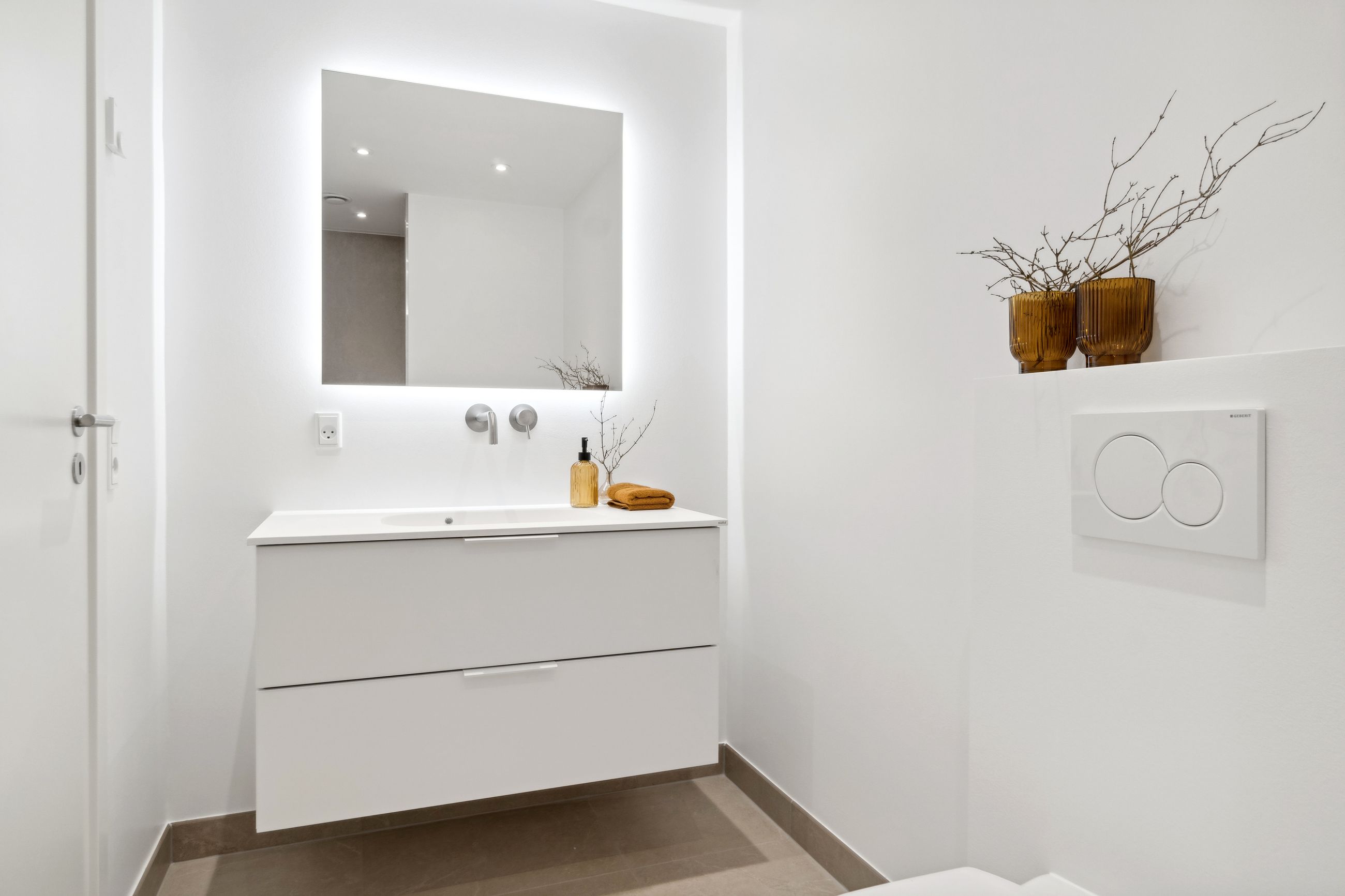 Hver lejlighed er udstyret med selvstændige forsyninger af varme, el og vand, moderne hvidevarer – herunder Siemens-køkken med to ovne og kogende vandhane – samt egen vaskemaskine og tørretumbler. Gulvvarme overalt sikrer ekstra komfort, og Nilan friskluftsystemet sørger for frisk luft i hjemmet.