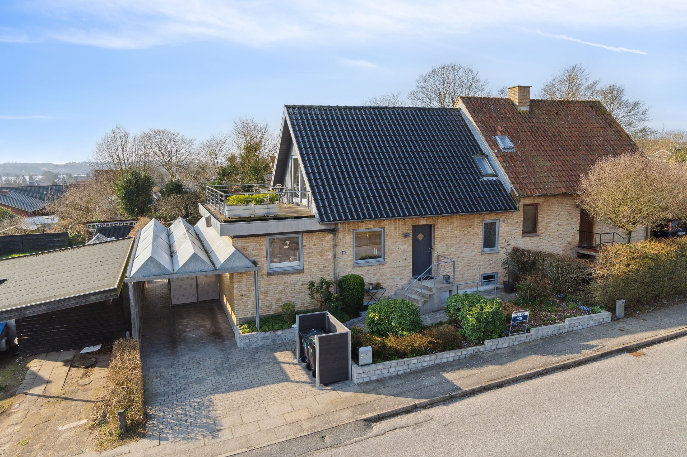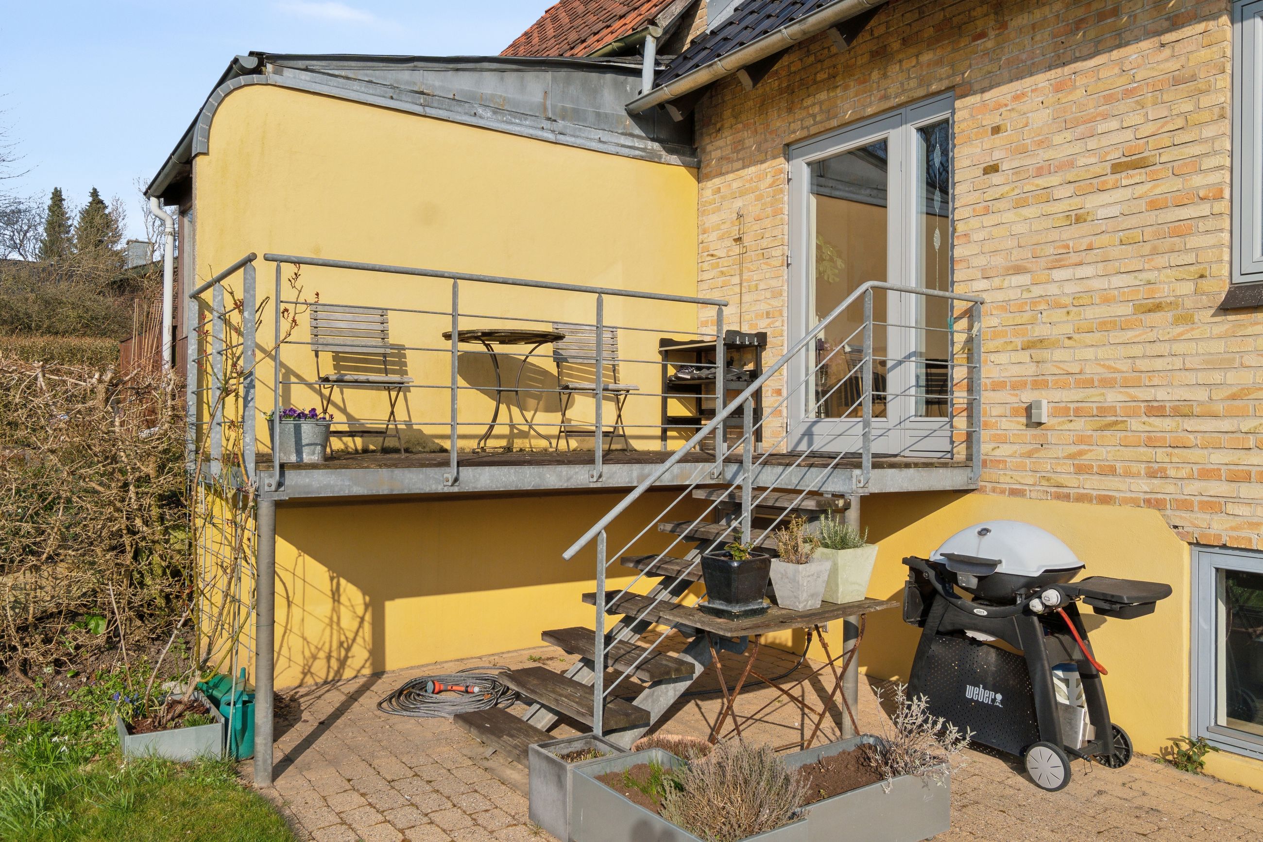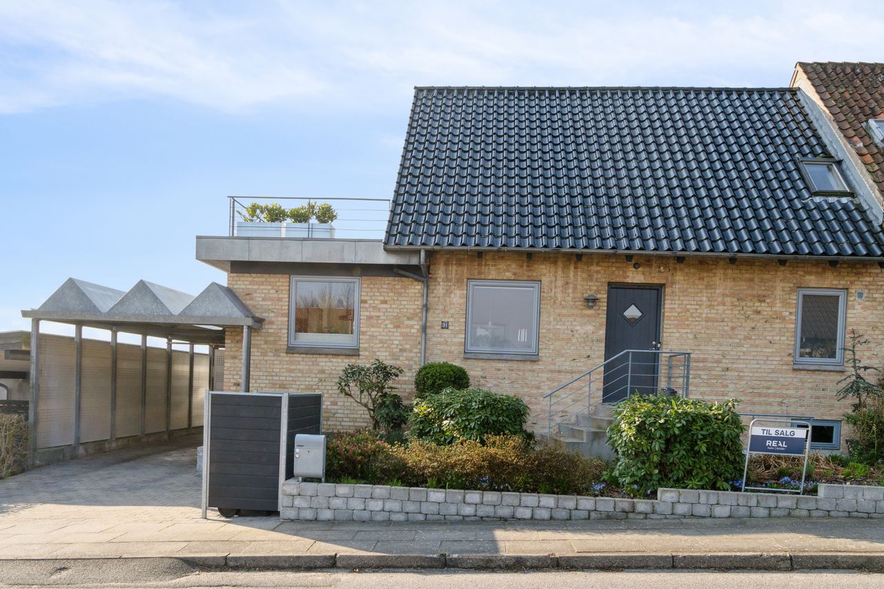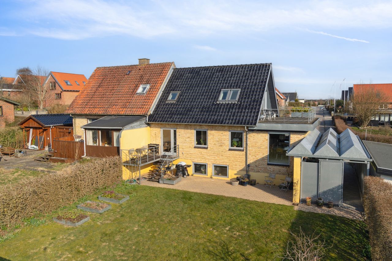 Udenfor venter en hyggelig, lukket og sydvendt have, der primært består af en græsplæne, et drivhus, højbede og en skøn terrasse, som giver gode muligheder for at nyde eftermiddags- og aftensolen. Til boligen hører desuden en carport med opbevaringsplads.