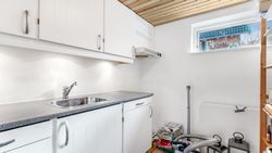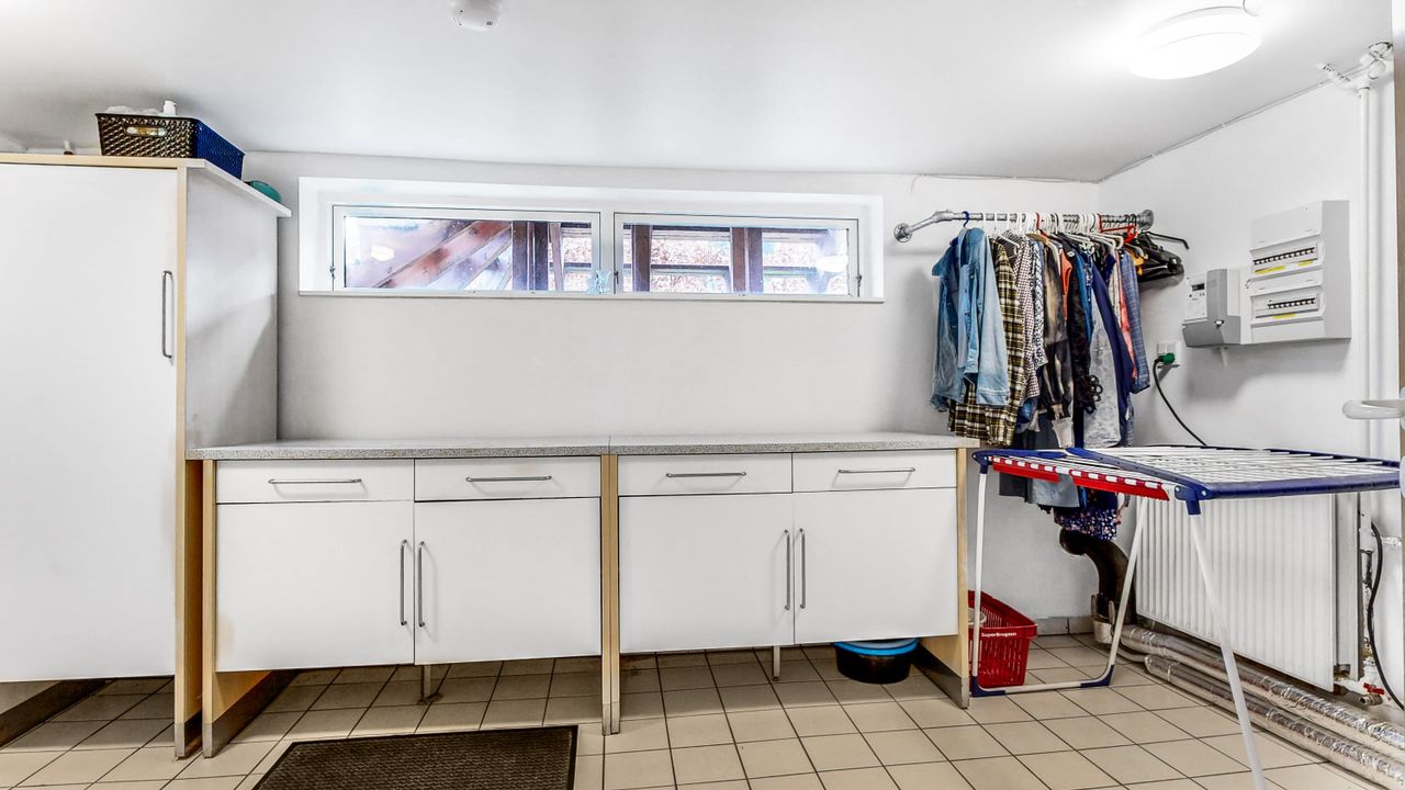 Den anvendelige underetage byder på et stort renoveret vaskerum, et praktisk thekøkken, badeværelse med bruseniche samt tre disponible rum, som kan bruges til alt fra hobbyrum til hjemmekontor eller teenageafdeling.
