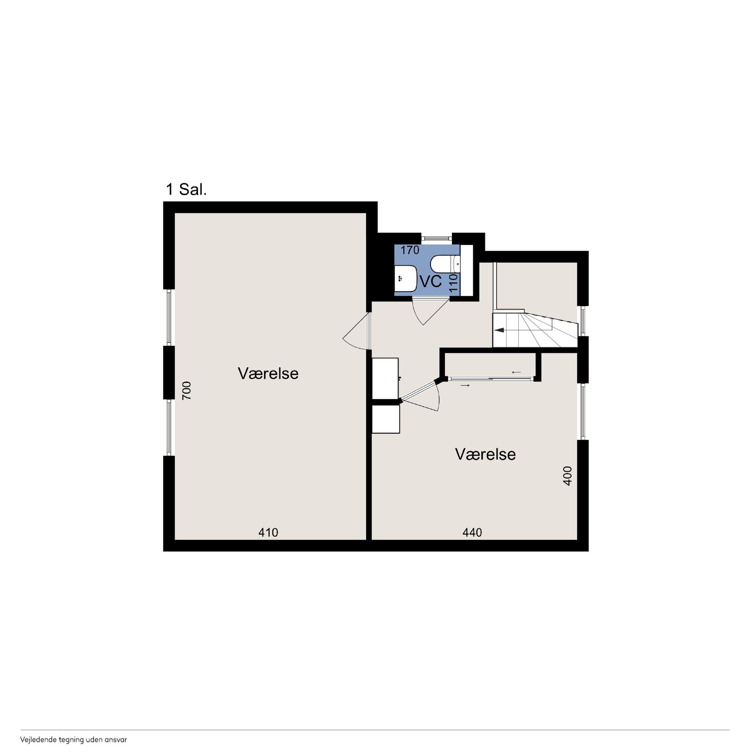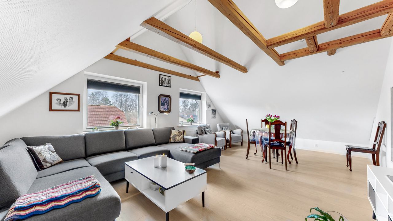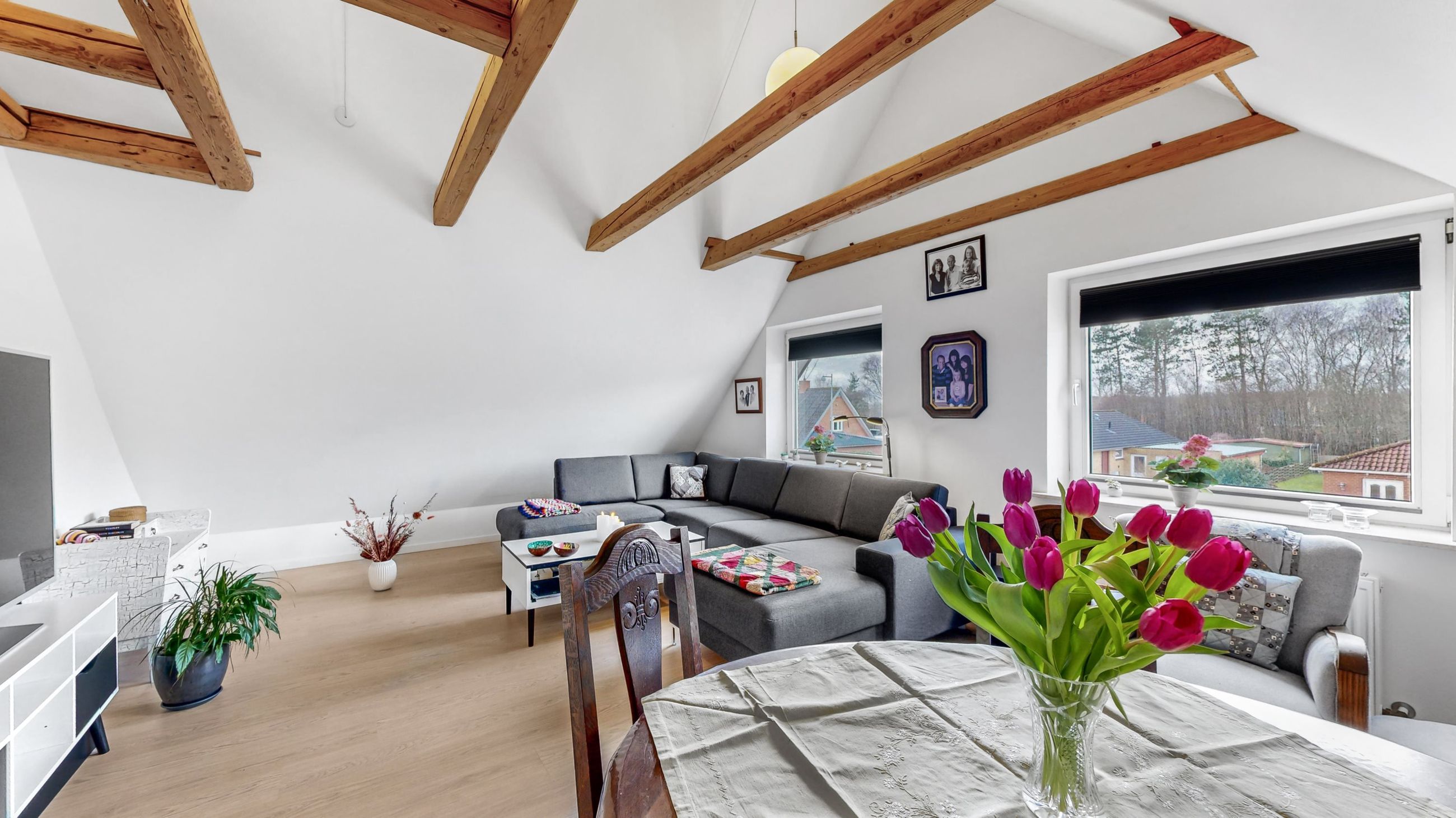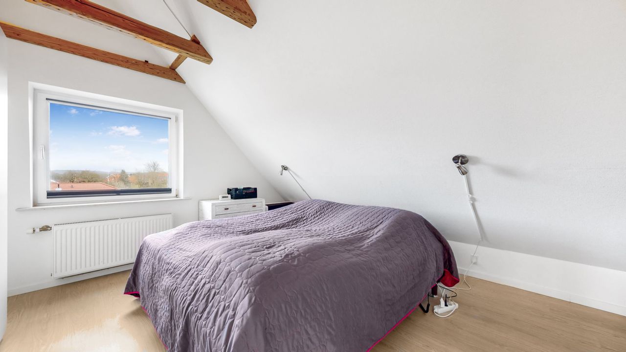 På førstesalen skaber loft til kip og synlige bjælker en hyggelig og charmerende stemning. Her finder du to gode, lyse værelser samt et nyere toilet – og mulighed for at etablere endnu et værelse, hvis behovet opstår.