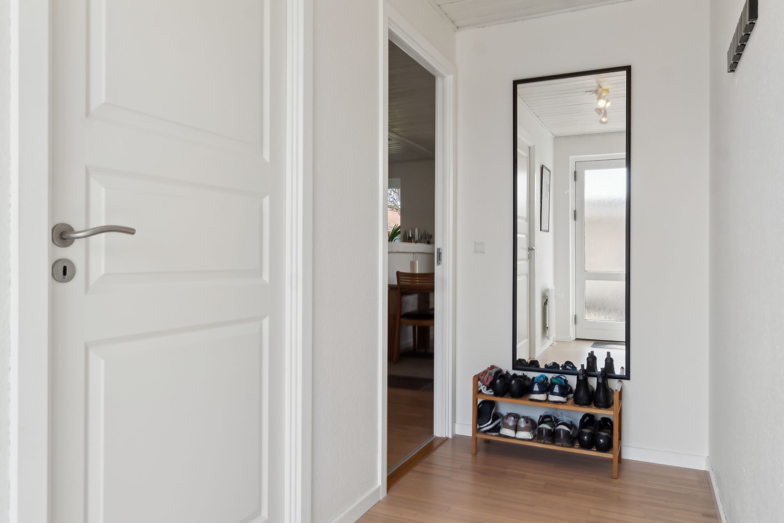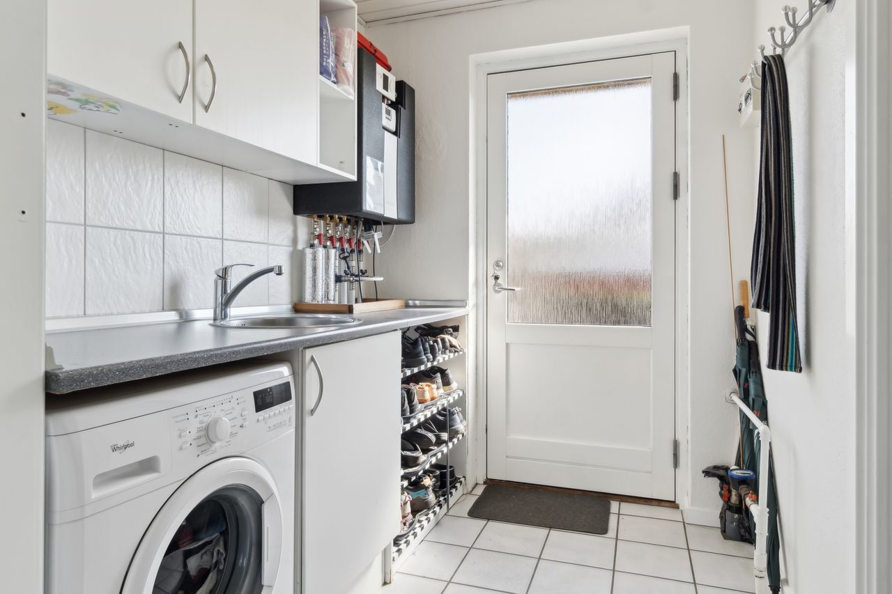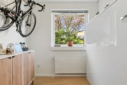 Rækkehuset rummer desuden et lyst badeværelse med bruseniche, praktisk bryggers med vaskefaciliteter samt flere gode værelser med fine indretningsmuligheder.