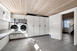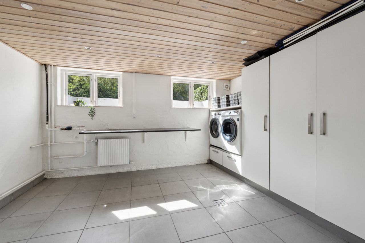 Indvendigt byder boligen på hele 150 etagemeter, som er udnyttet optimalt. Den fulde kælder i boligstandard rummer både to gode disponible rum, et stort bryggers samt et praktisk badeværelse.