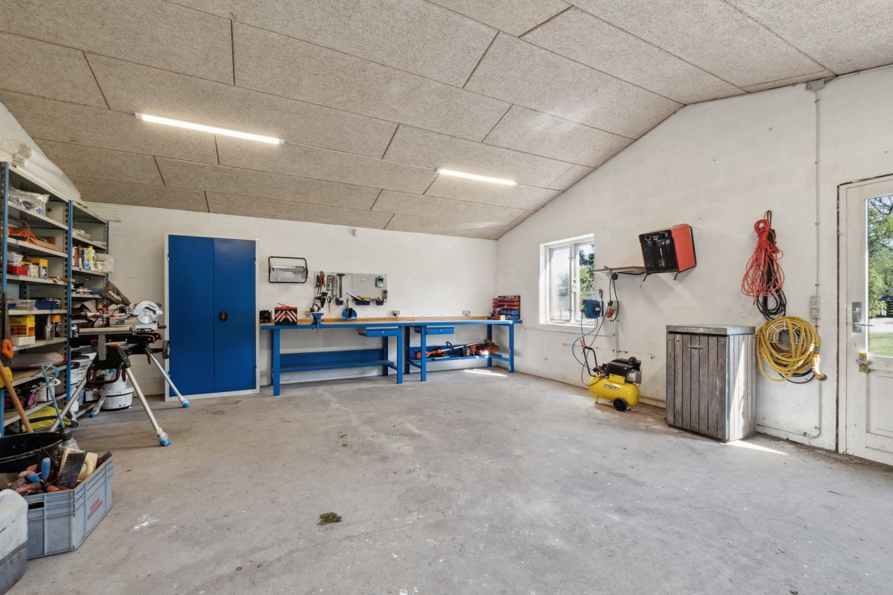 Ejendommens store isolerede garage/værksted/hobbyrum er ideelt til diverse projekter. Ejendommen har ligeledes en rummelig carport og redskabsskur.