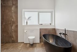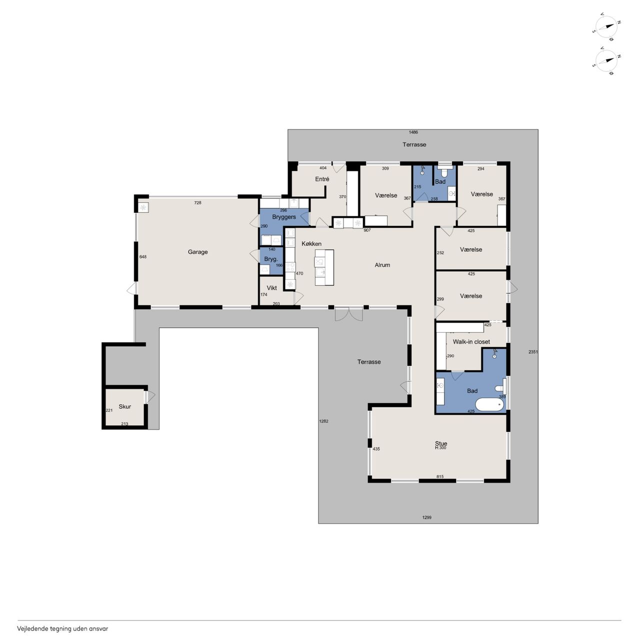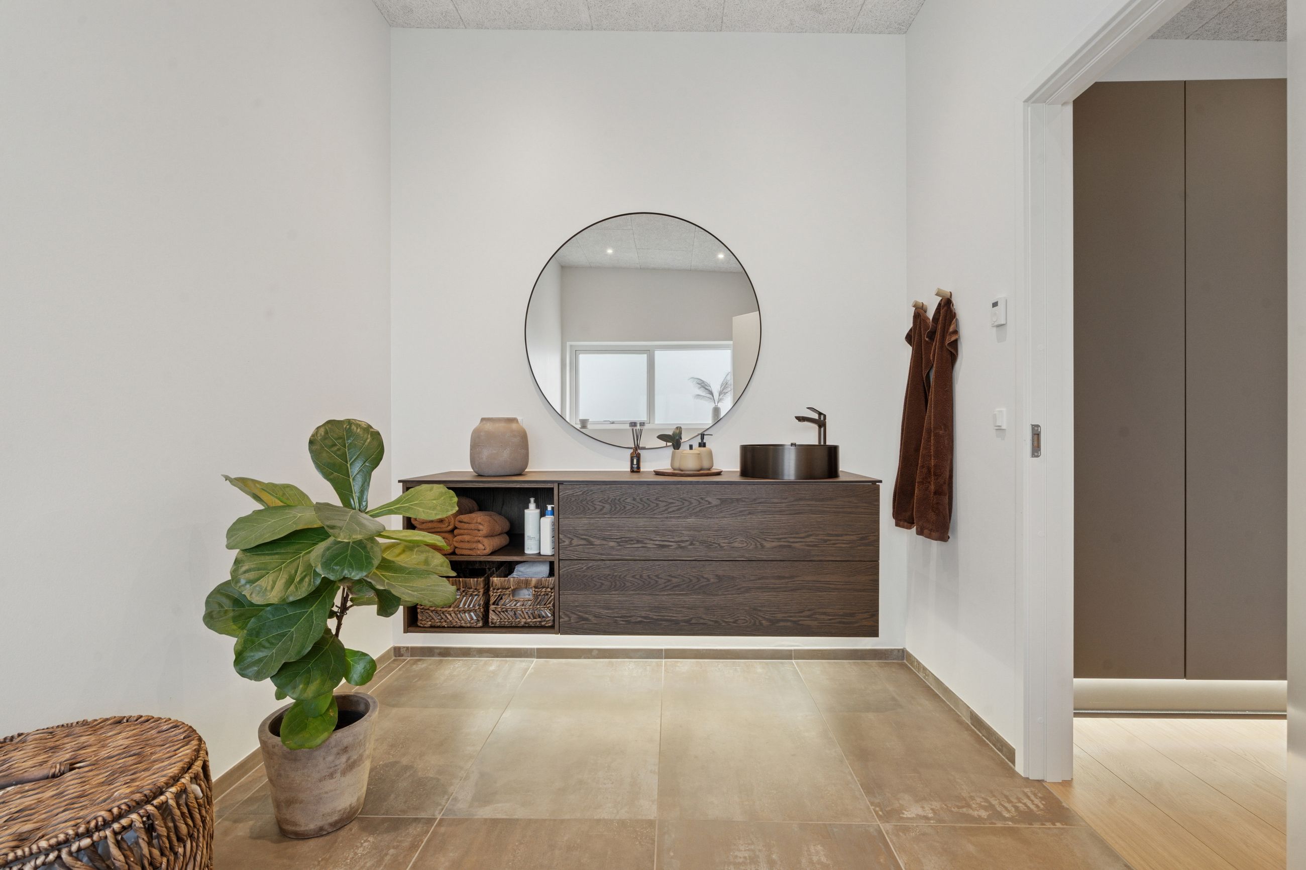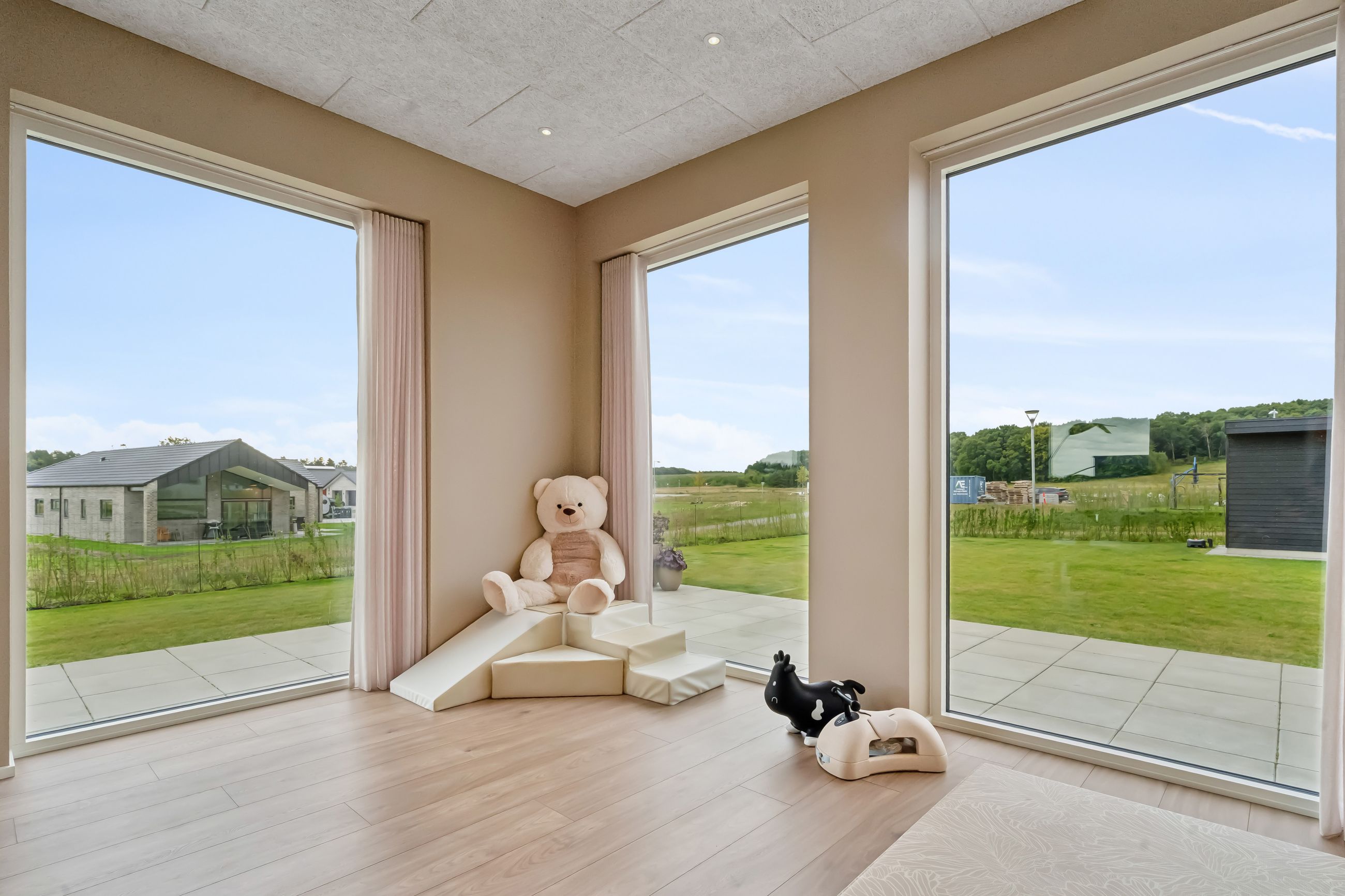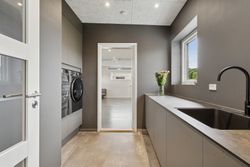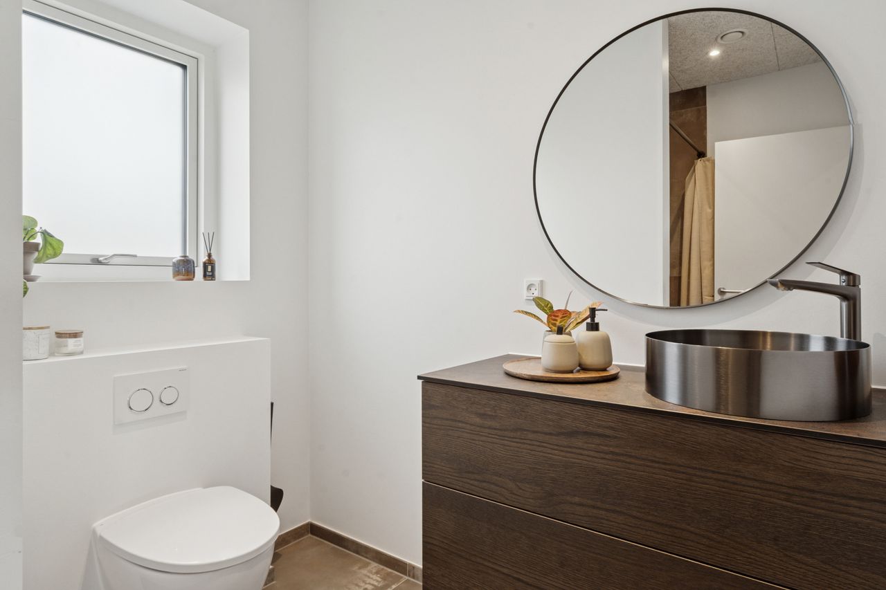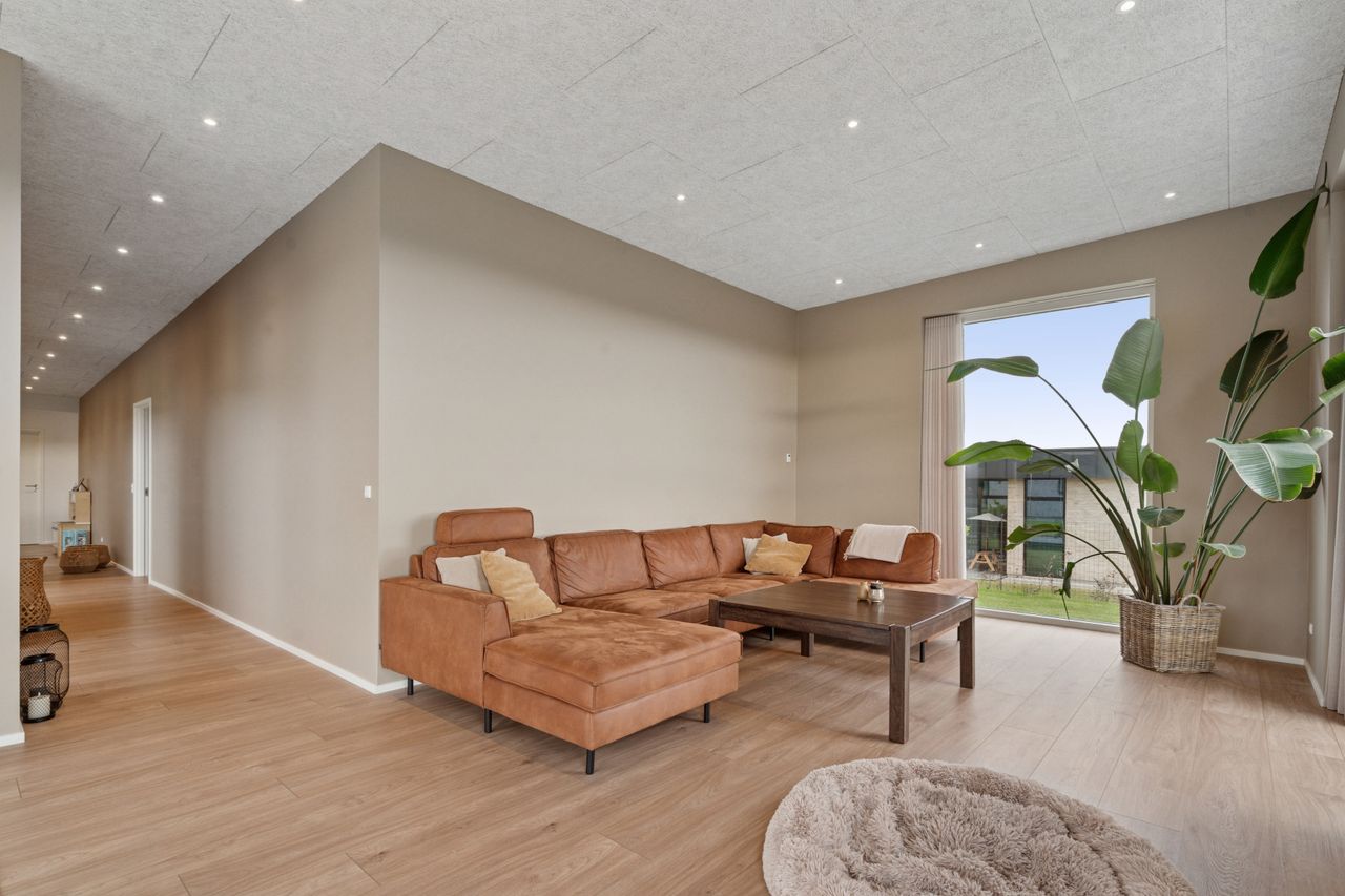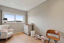 Boligen er smart indrettet med en klar opdeling mellem forældre- og børneafdeling, så der skabes en god balance mellem nærvær og privatliv. I forældreafdelingen finder du et rummeligt soveværelse med direkte adgang til et stort, lækkert badeværelse via et praktisk walk-in-closet. Børneafdelingen rummer flere gode og lyse værelser samt sit eget badeværelse, så der er god plads og funktionalitet til hele familien. Derudover byder hjemmet på en række velfungerende løsninger som bryggers, entré og depotrum – alt sammen med til at gøre hverdagen både nem og velorganiseret.
