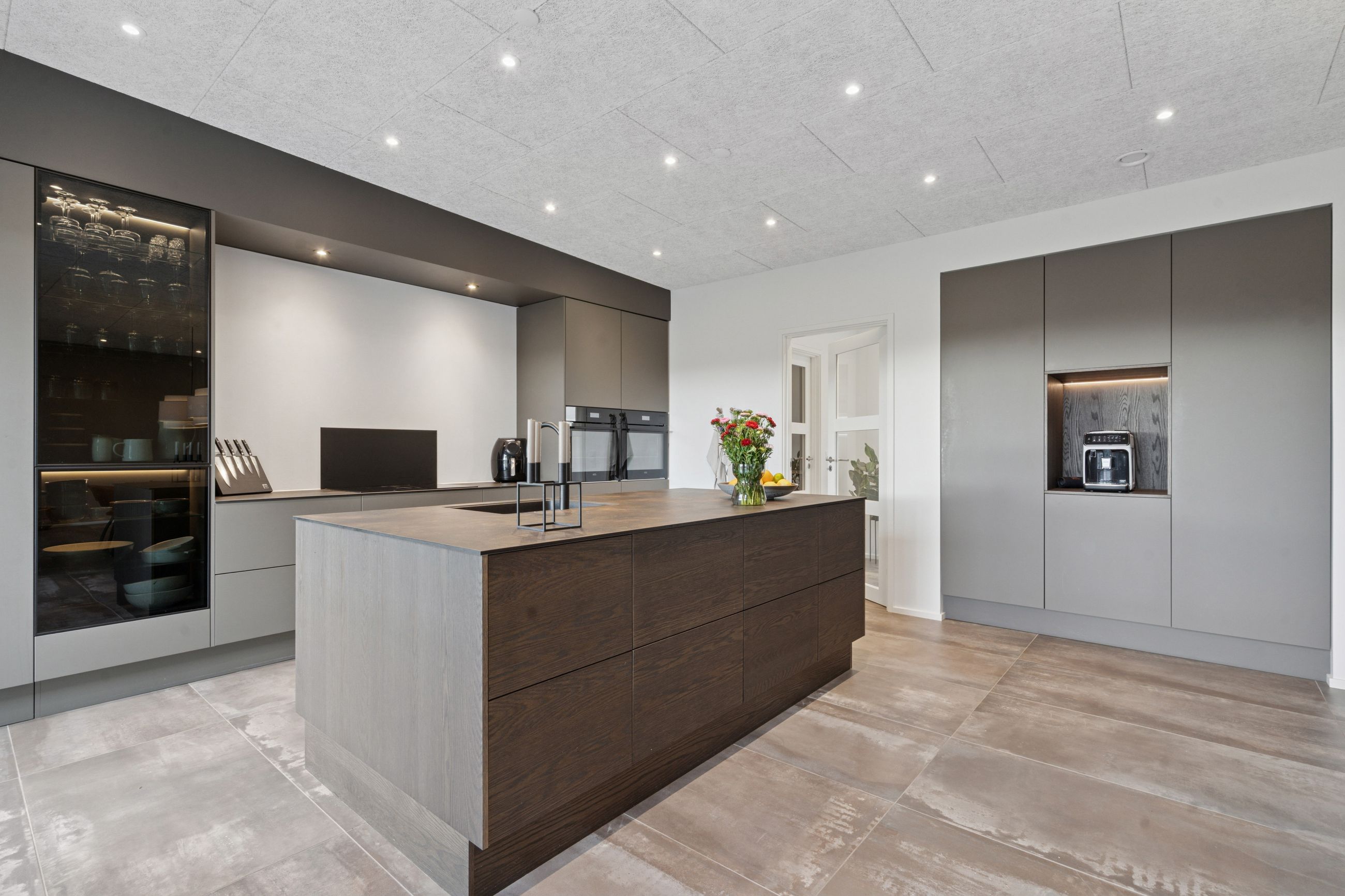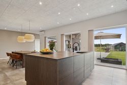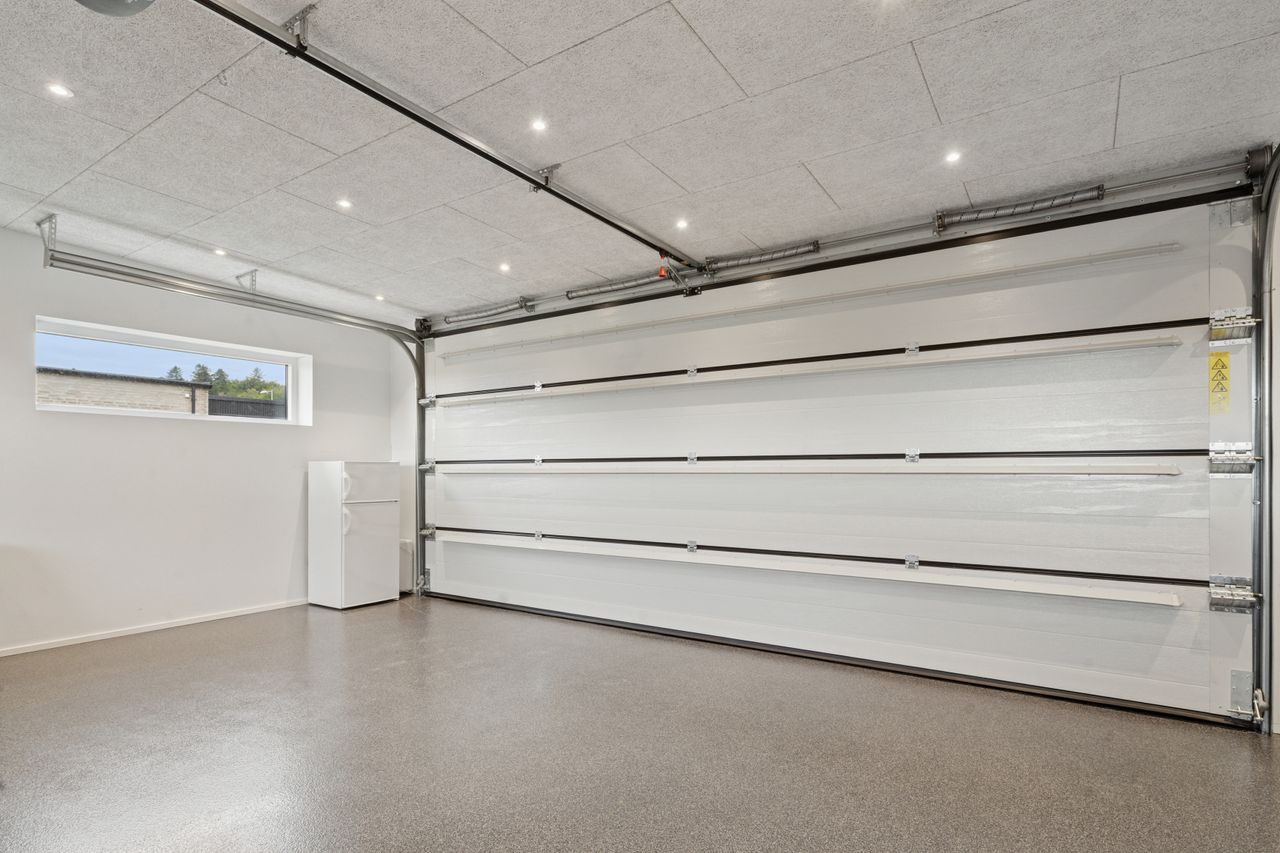 Ejendommen præsenterer sig med en smuk og moderne arkitektur, der spiller flot sammen med det rolige og etablerede kvarter. Foran huset finder du en rummelig og praktisk dobbelt garage med god plads til både biler, opbevaring og hverdagens udstyr. Når du træder ind i huset, mødes du af en lys og indbydende atmosfære med store vinduespartier, der trækker dagslyset helt ind i boligen og skaber en dejlig fornemmelse af luft og åbenhed.