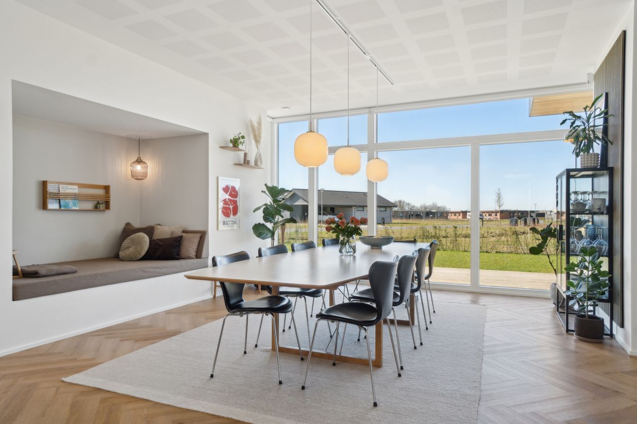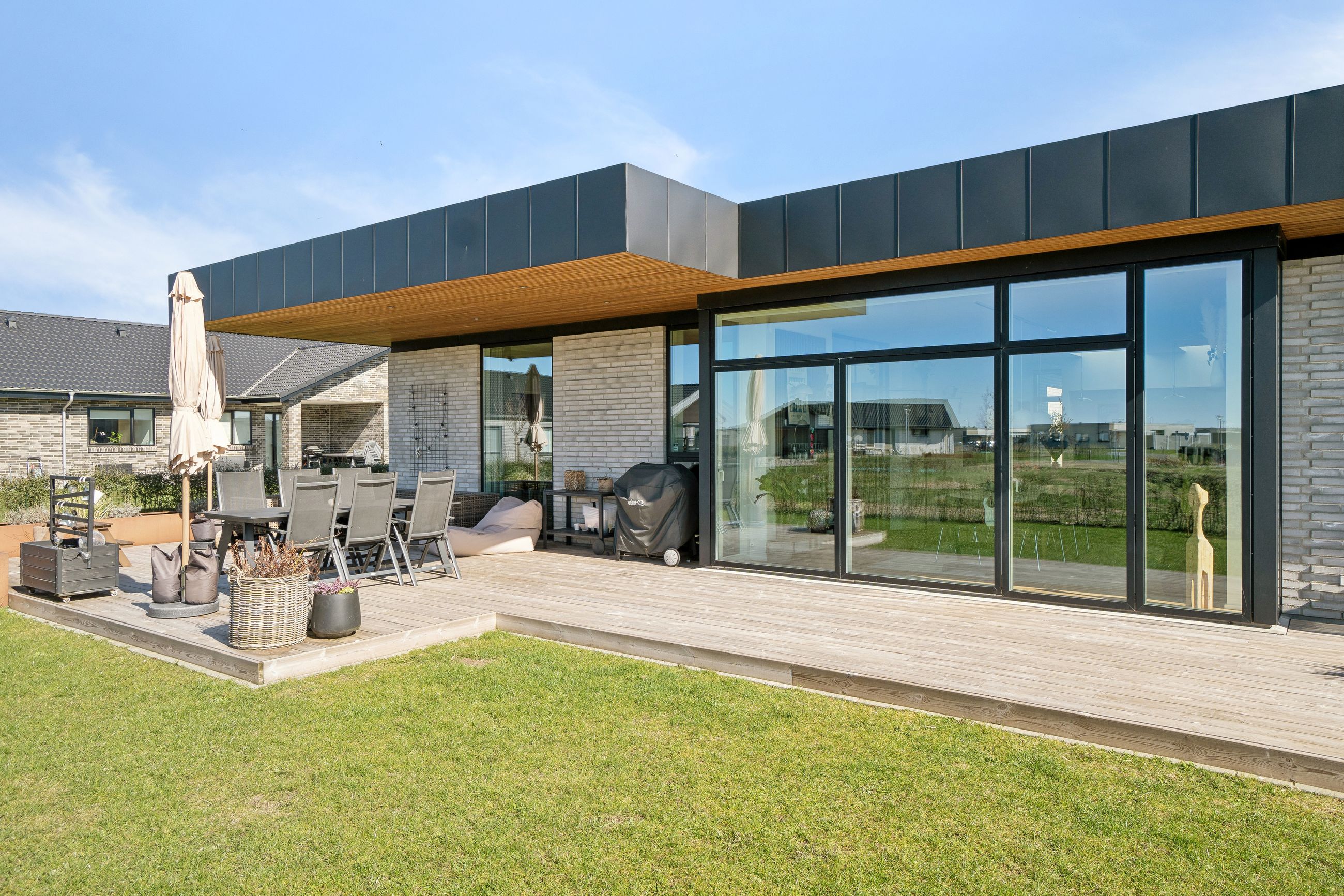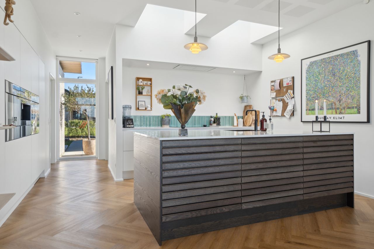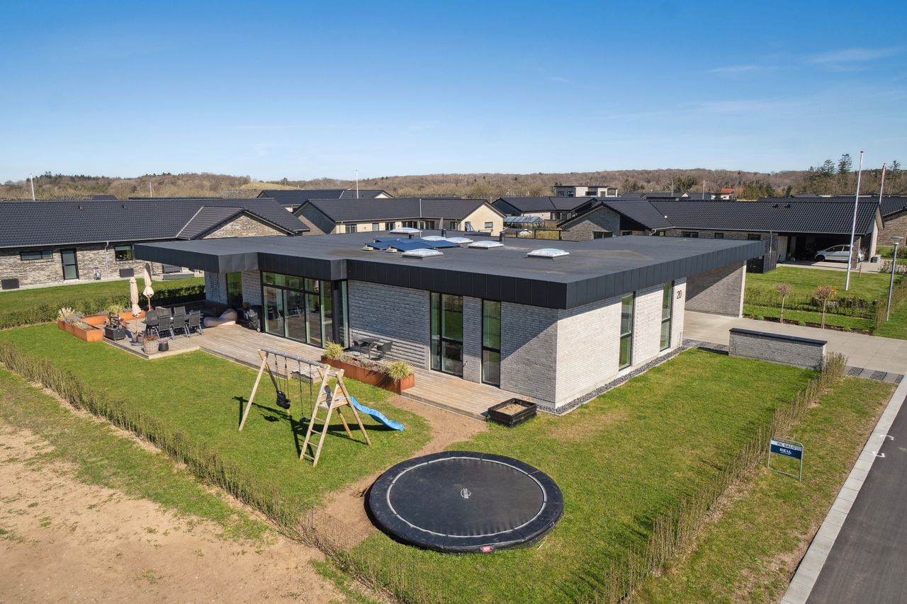 Villaen byder på 217 m2 boligareal, fordelt på en gennemtænkt planløsning med åbne, lyse opholdsrum og private zoner, der skaber en ideel ramme for både familieliv og gæstfrihed. Store panoramavinduer og elegante materialevalg skaber et hjem med karakter, varme og masser af naturligt lys.