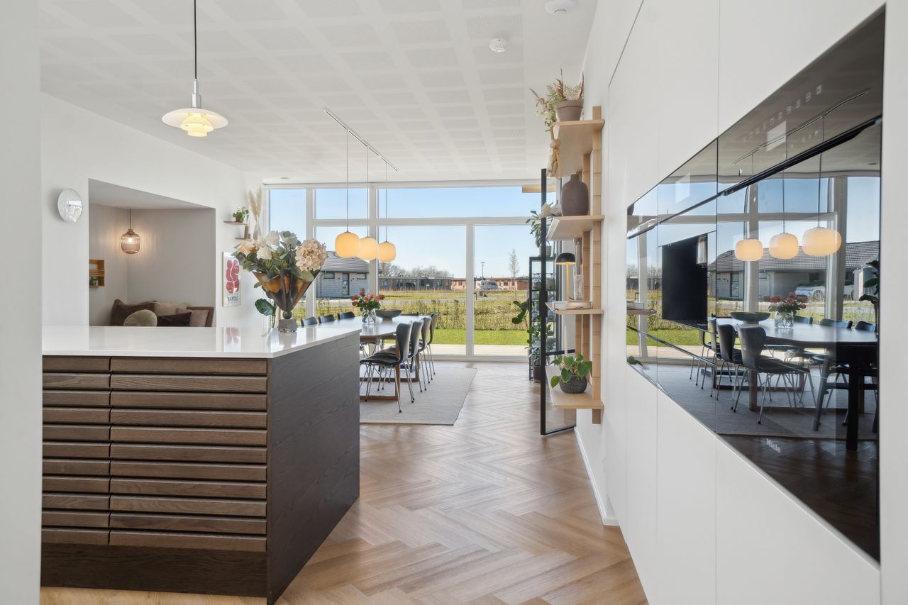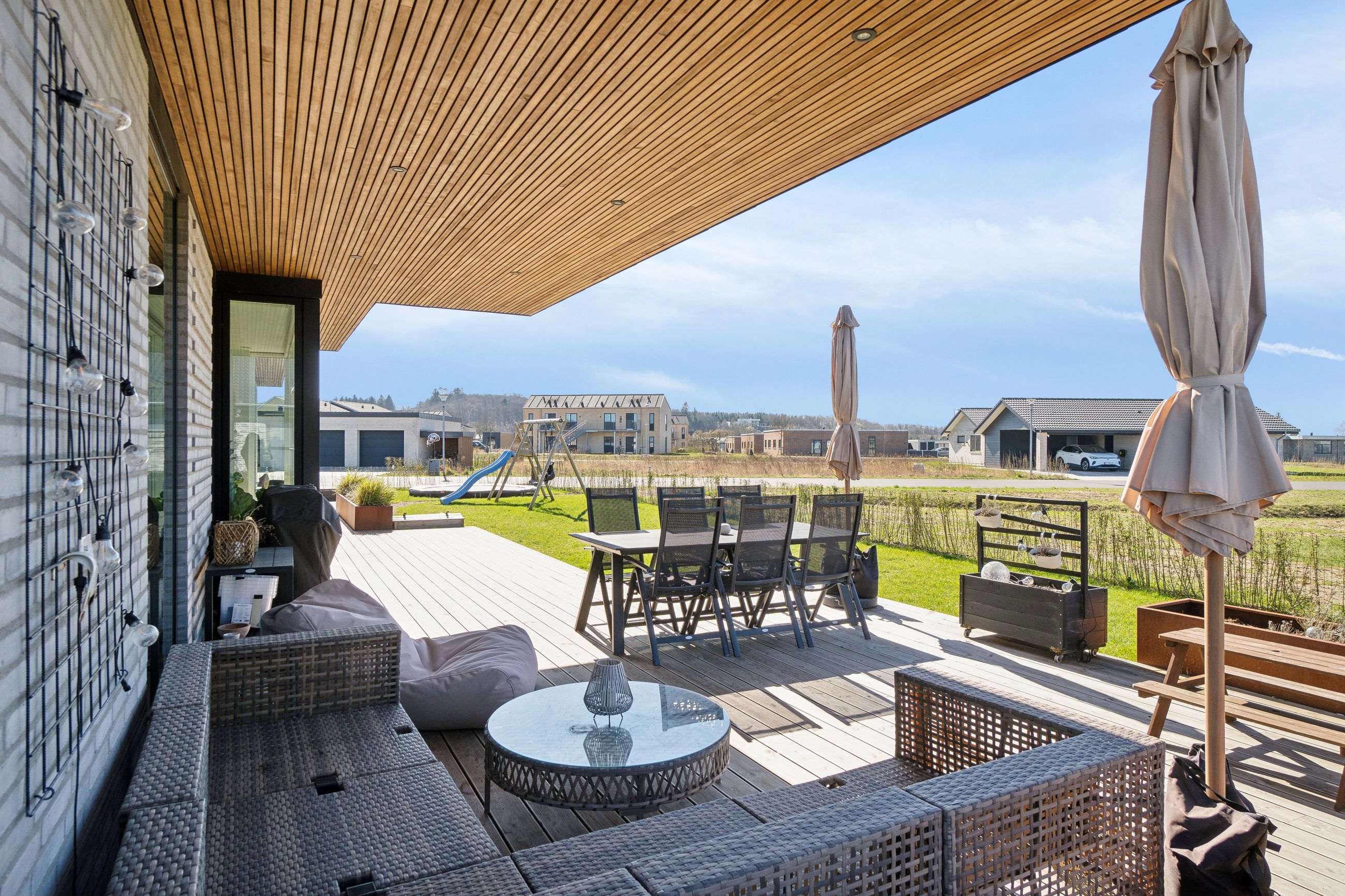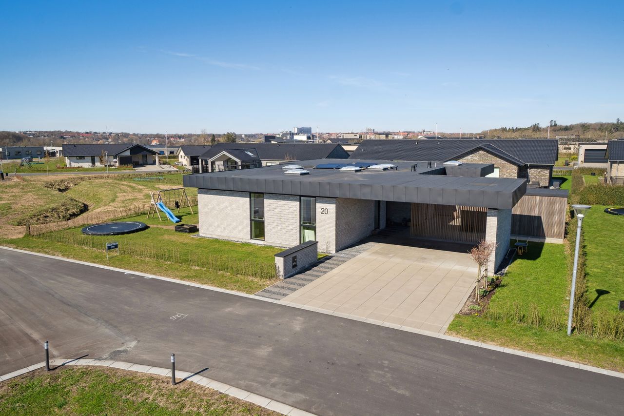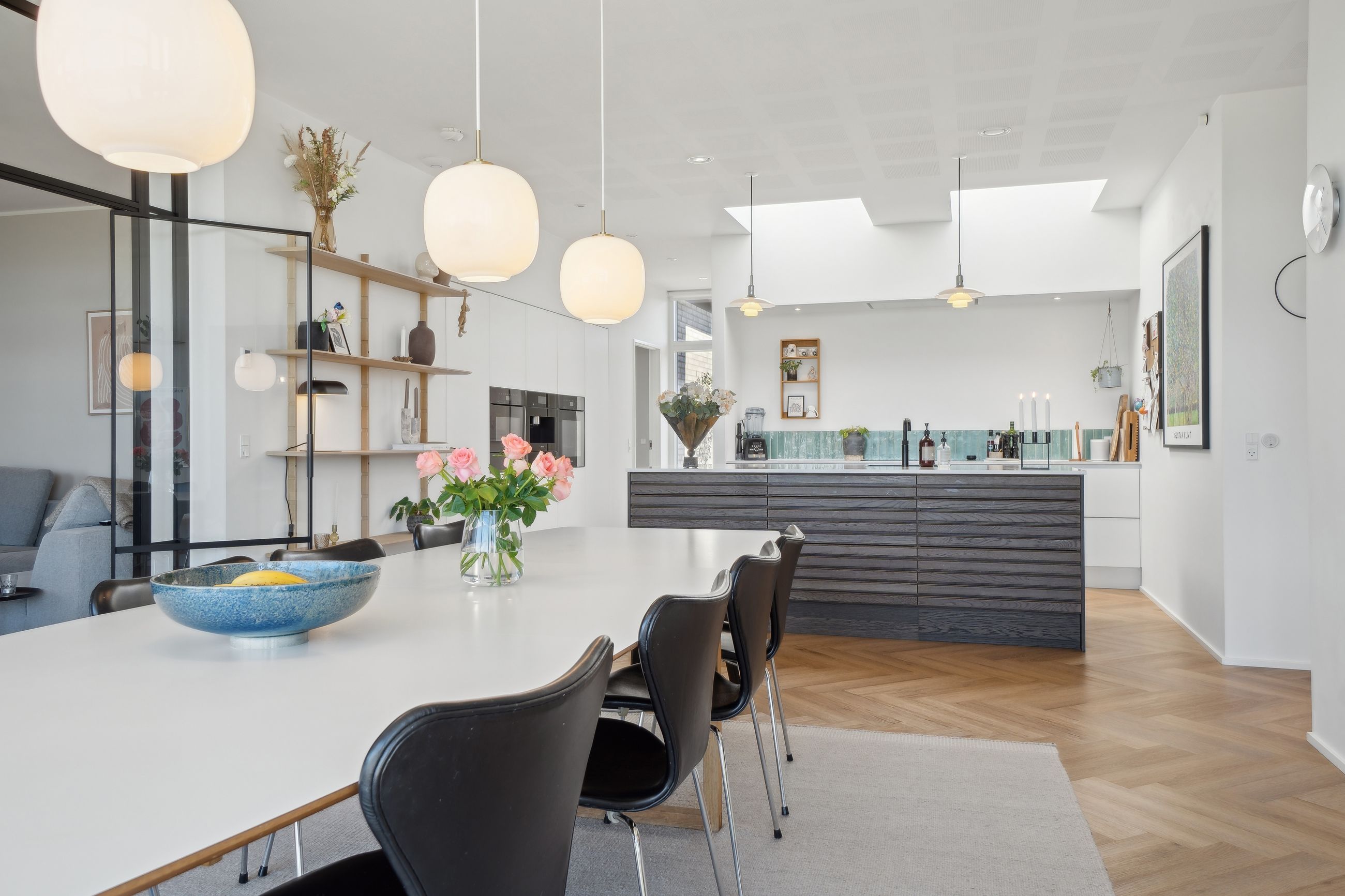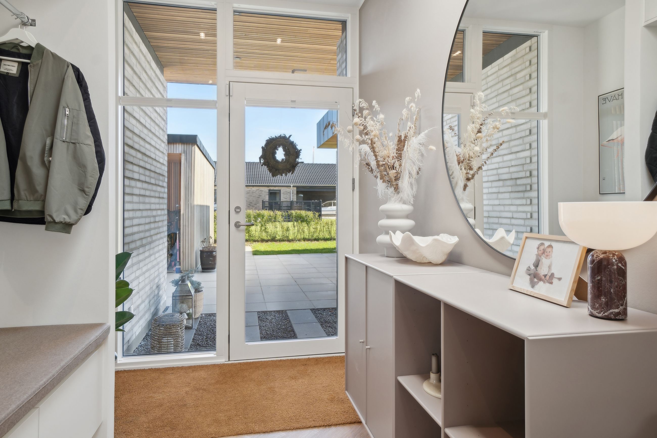 Villaen byder på 217 m2 boligareal, fordelt på en gennemtænkt planløsning med åbne, lyse opholdsrum og private zoner, der skaber en ideel ramme for både familieliv og gæstfrihed. Store panoramavinduer og elegante materialevalg skaber et hjem med karakter, varme og masser af naturligt lys.