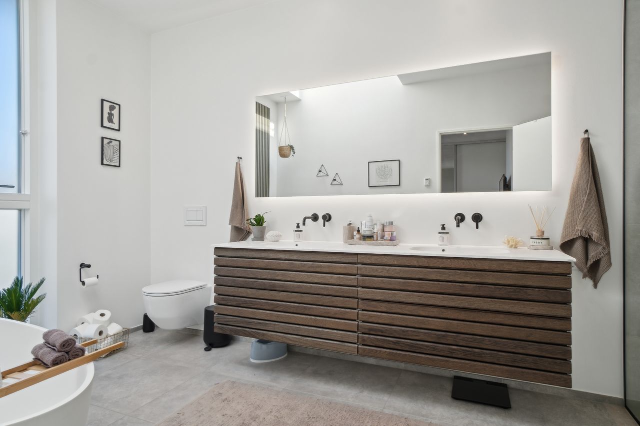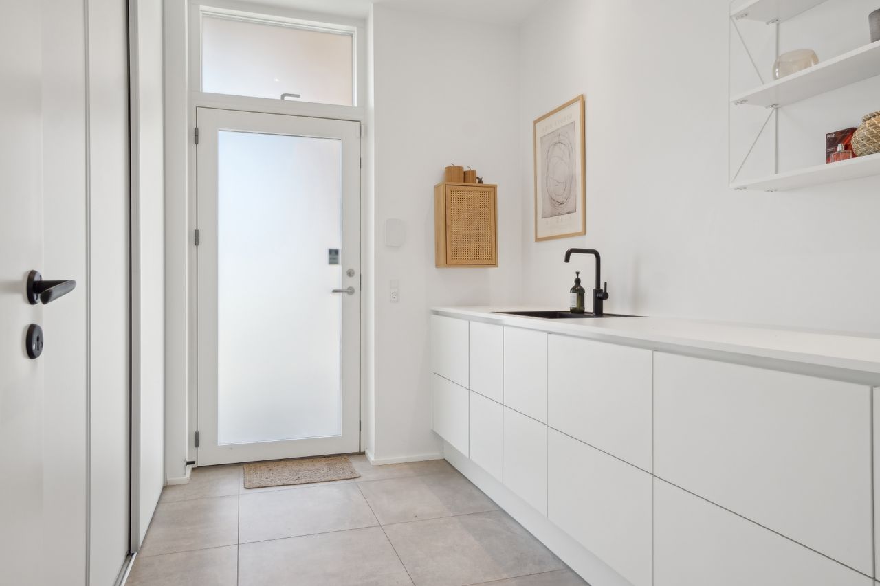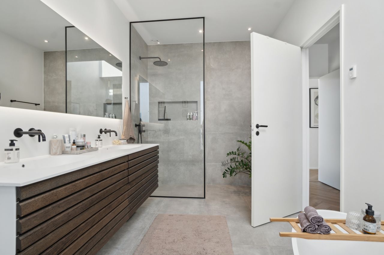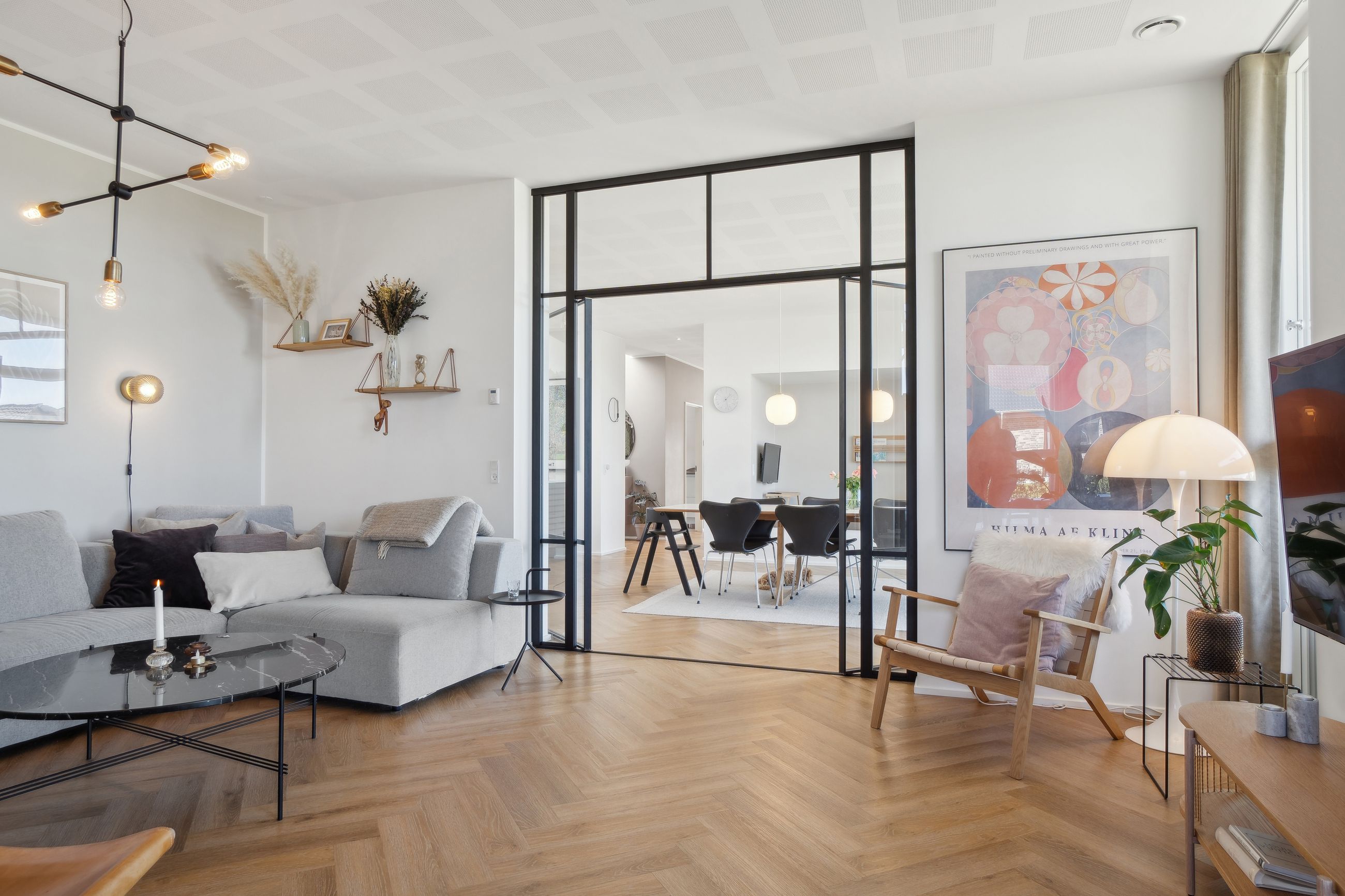 Villaen byder på 217 m2 boligareal, fordelt på en gennemtænkt planløsning med åbne, lyse opholdsrum og private zoner, der skaber en ideel ramme for både familieliv og gæstfrihed. Store panoramavinduer og elegante materialevalg skaber et hjem med karakter, varme og masser af naturligt lys.