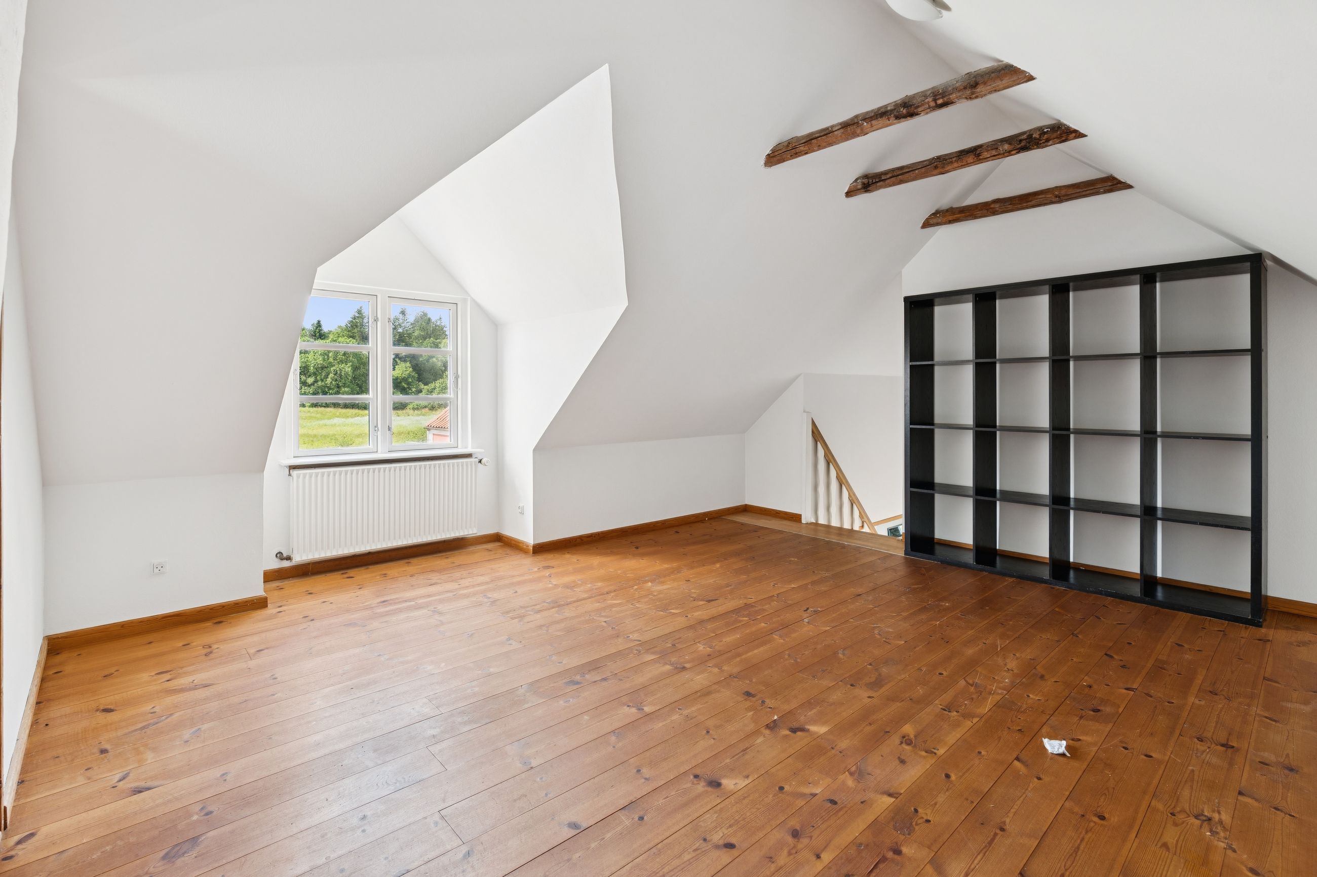 Med de omkringliggende enge og marker har du naturen lige uden for døren. Du kan nyde smukke solnedgange, fuglesang og en rolig atmosfære, hvor du virkelig kan mærke årstidernes skiften. Grusvejen sikrer, at du bor ugeneret uden trafik, samtidig med at du har overkommelig afstand til byens faciliteter.