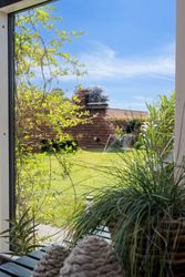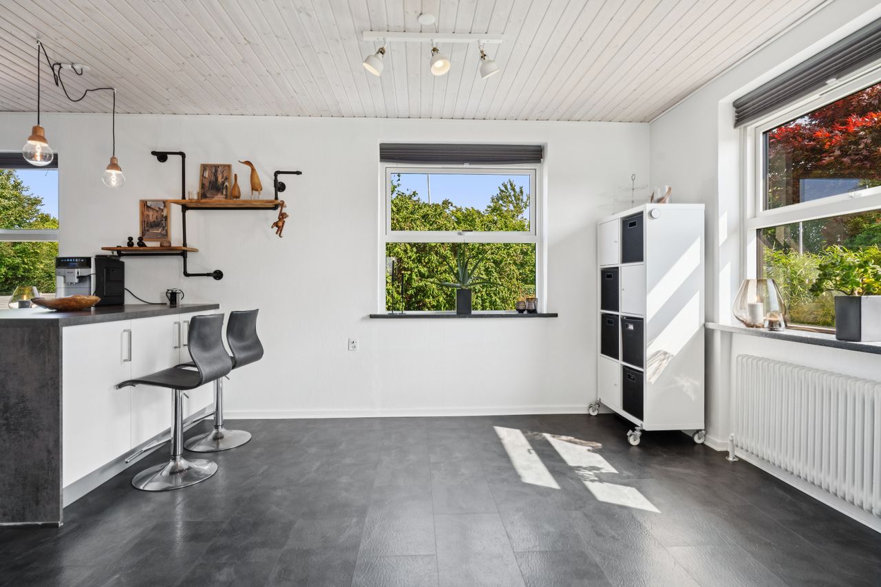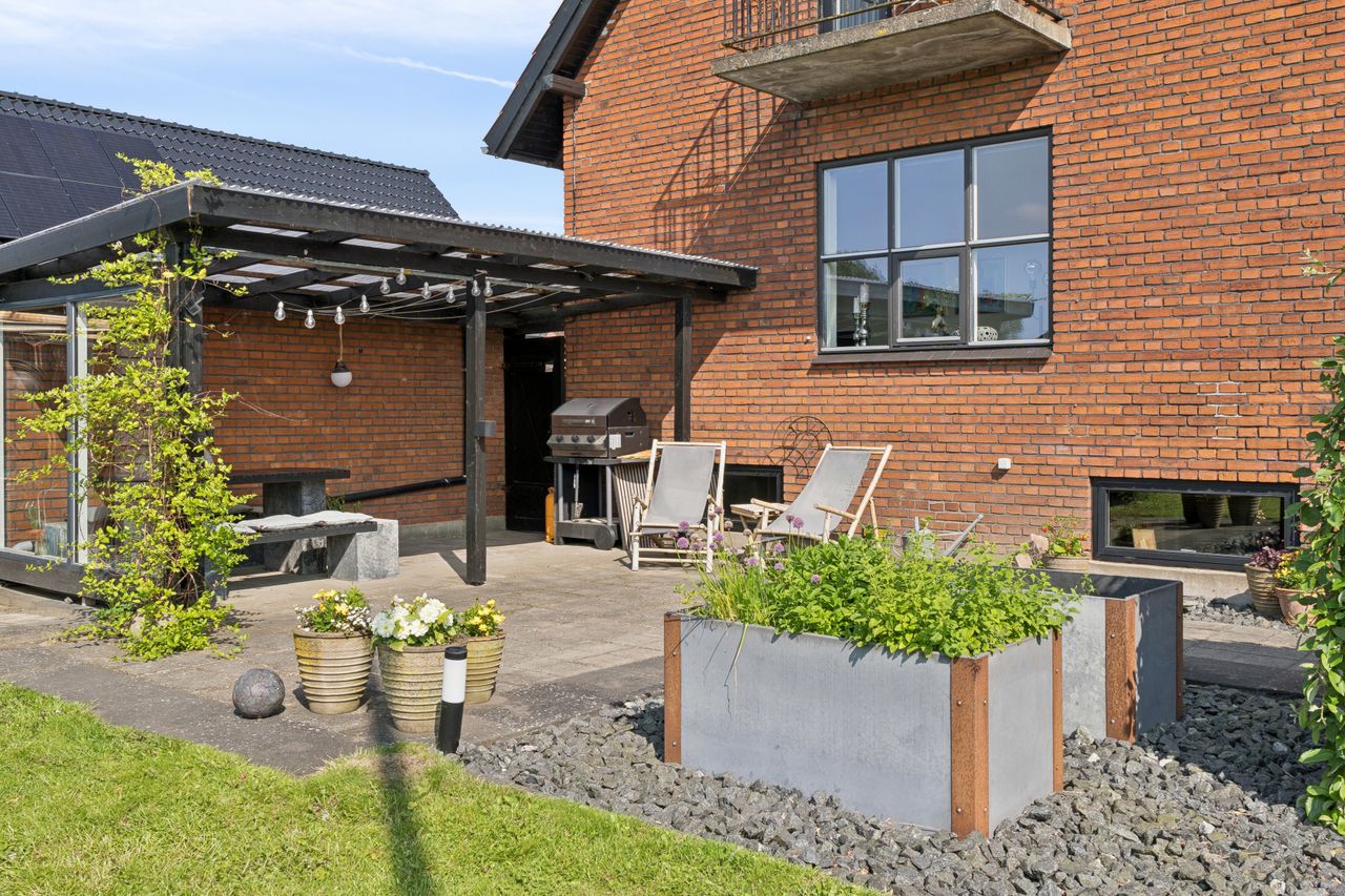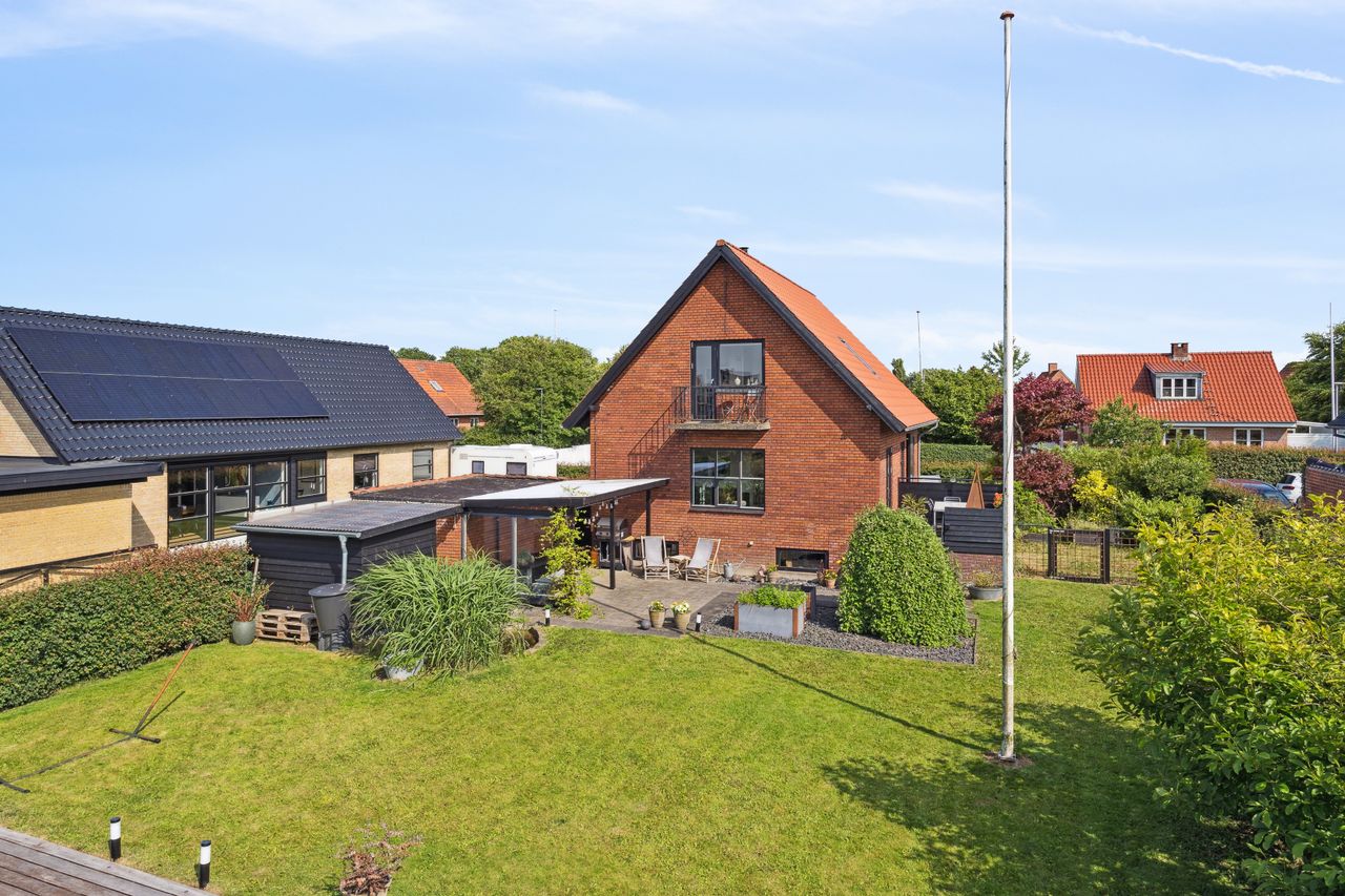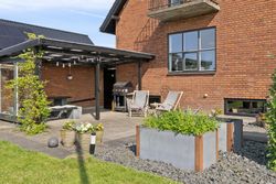 Udenfor finder du en hyggelig og overskuelig have, som indbyder til både afslapning og udendørs aktiviteter. Haven er omgivet af grønne rammer, der giver en rar og privat atmosfære, og med gode solforhold kan du nyde udelivet det meste af dagen.
