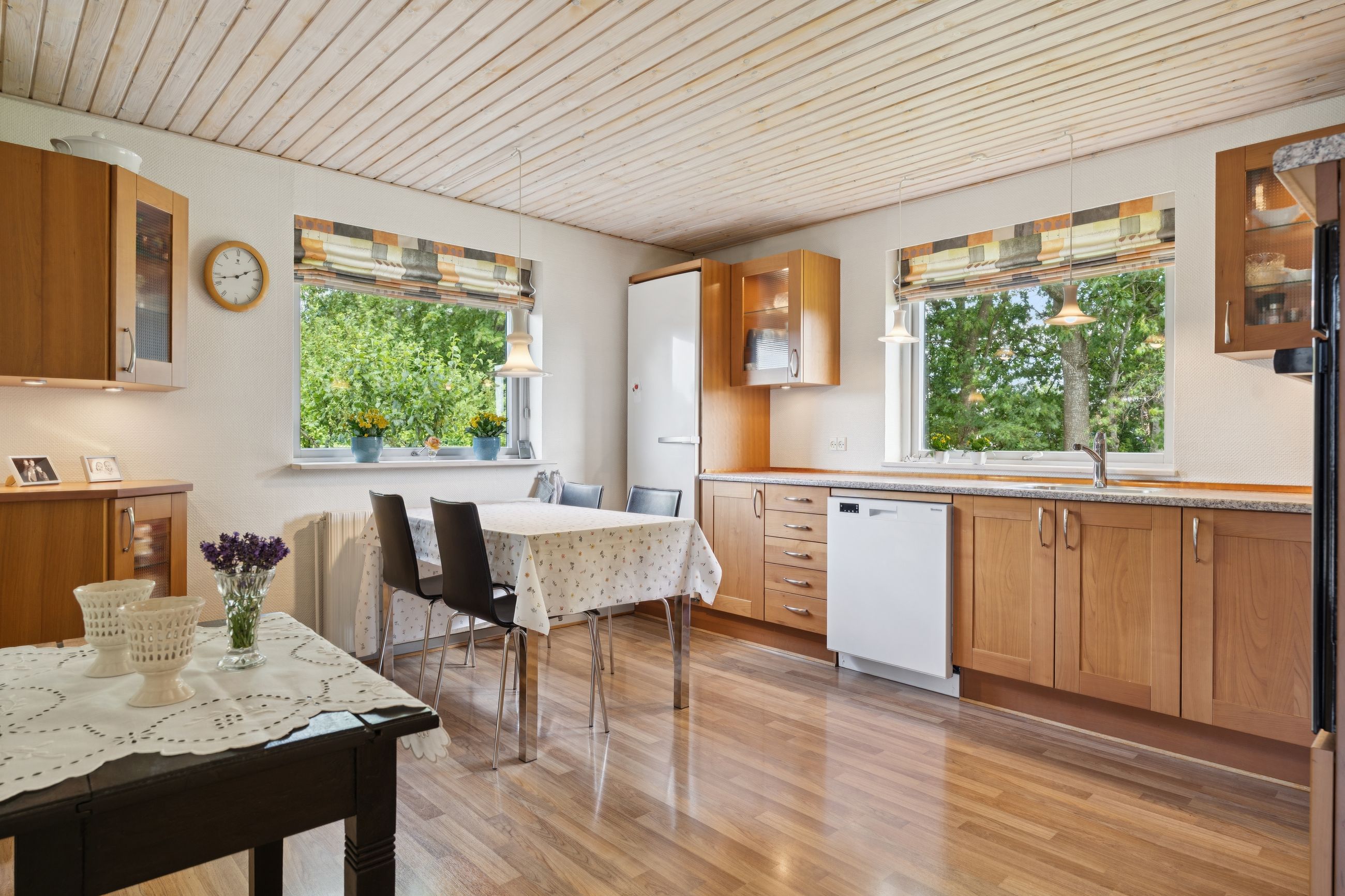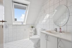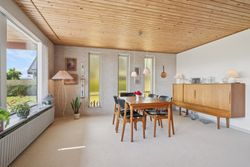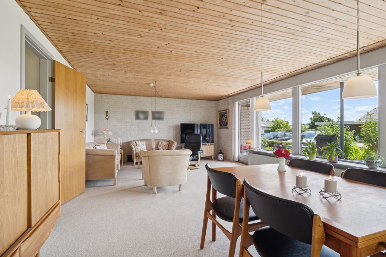 Ejendommen fremstår i pæn stand og byder på en god planløsning med masser af plads til både familieliv og personlig udfoldelse. Stuen er lys og indbydende med store vinduespartier, som lader lyset strømme ind, og rummet har en god størrelse med mulighed for både spiseafdeling og sofagruppe. Køkkenet ligger i åben forbindelse med et praktisk bryggers, og flere værelser giver rig mulighed for at indrette sig med børneværelser, hjemmekontor eller gæsterum. Badeværelset er holdt i den originale, klassiske stil og fremstår velholdt, med separat toilet og bad.