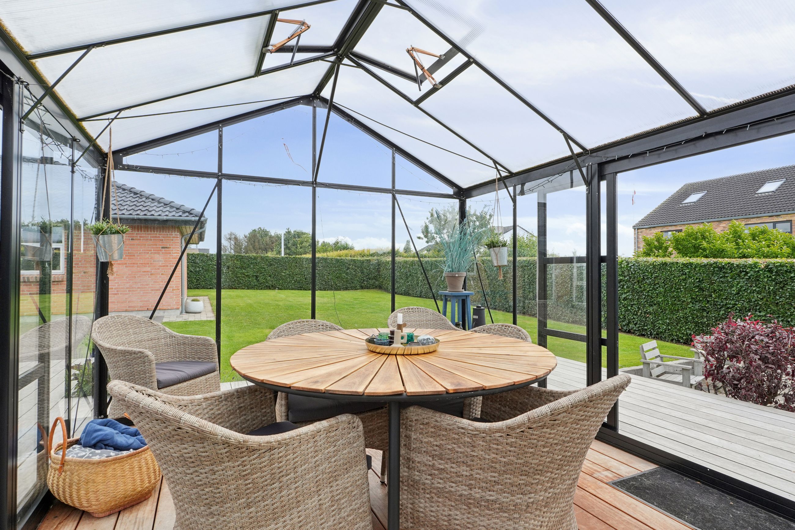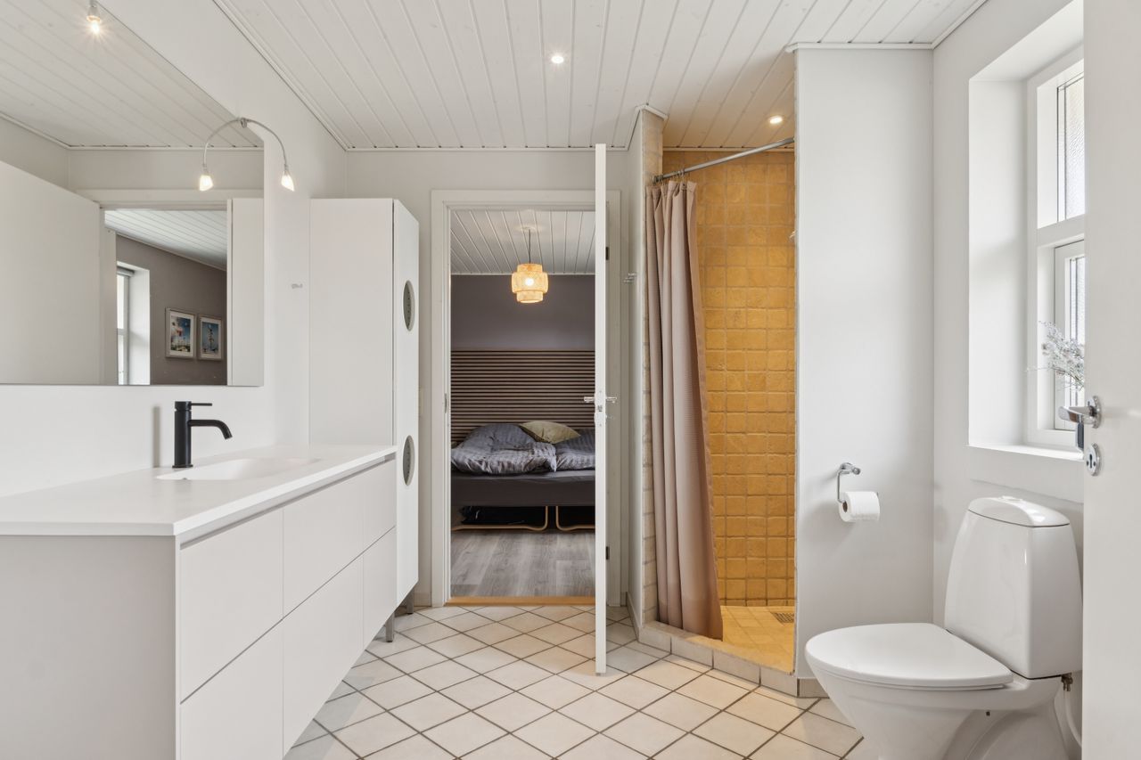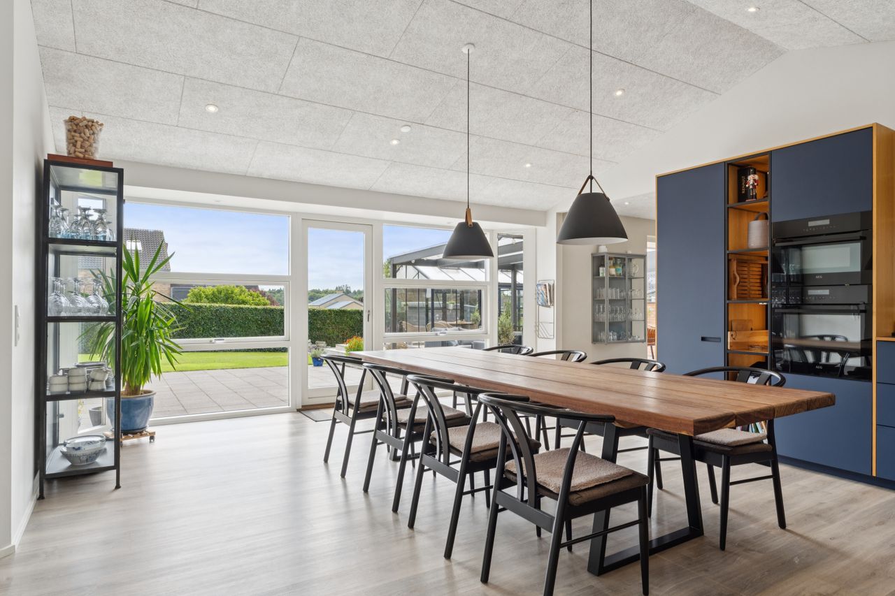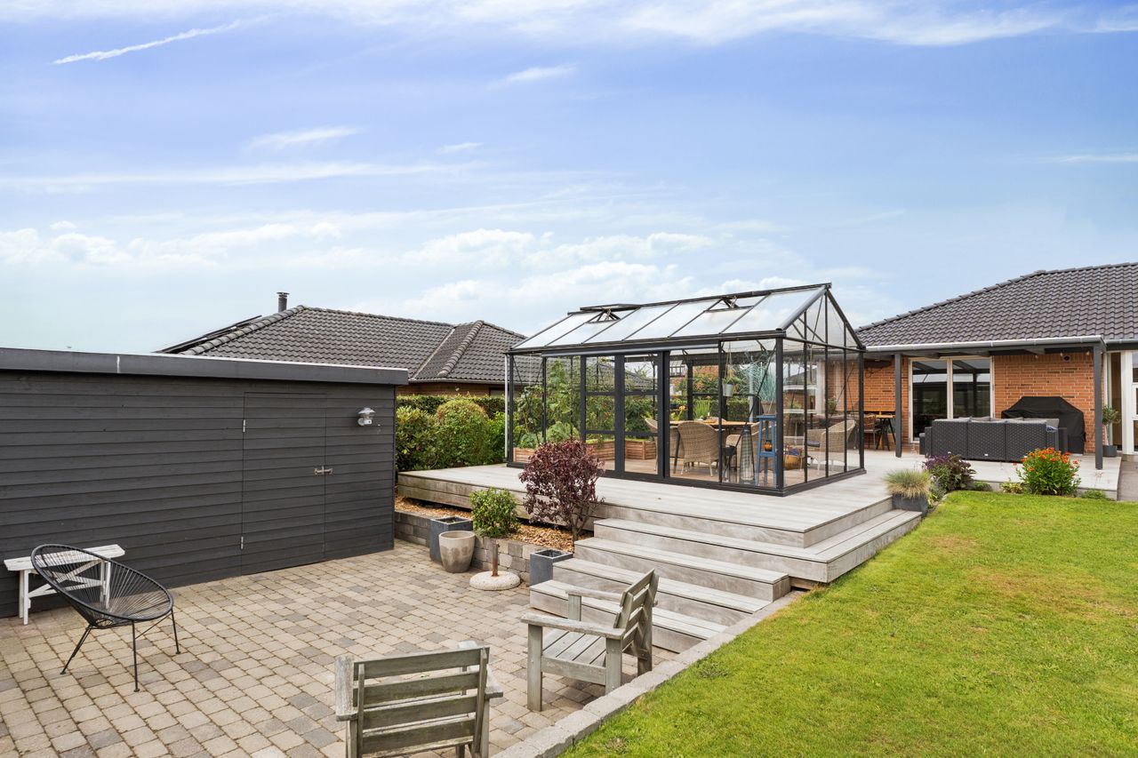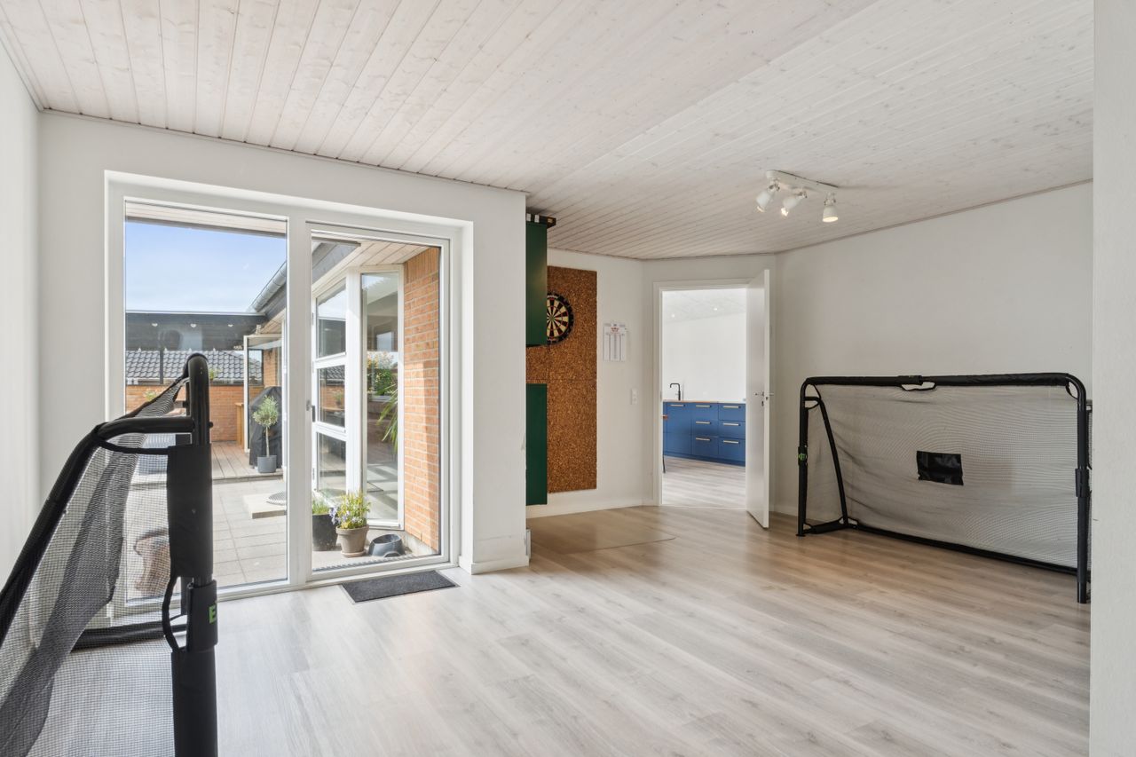 Udendørs venter skønne udemiljøer, hvor solen og udelivet kan nydes i fulde drag. Haven byder på både plads til leg og hyggelige terrasser, hvor I kan slappe af i fredelige omgivelser.
