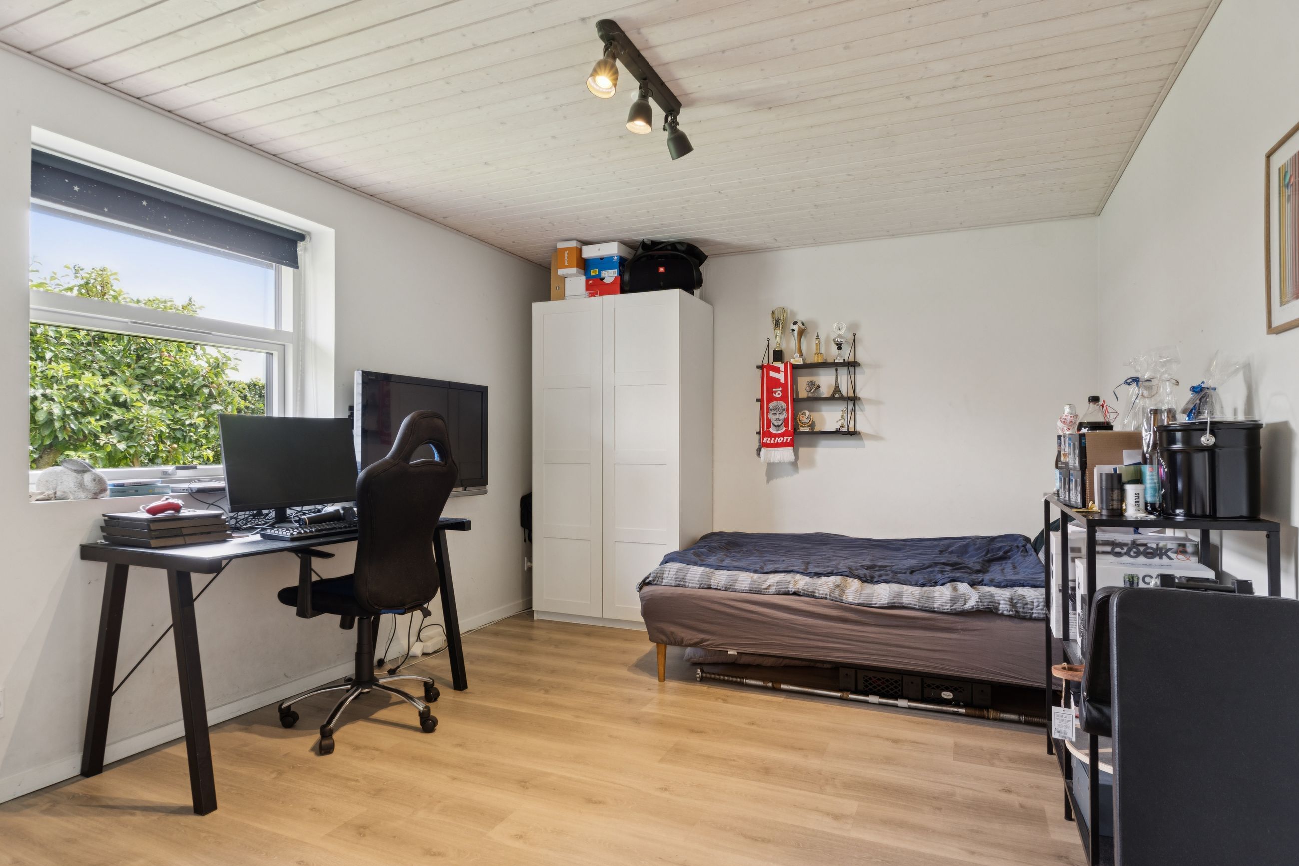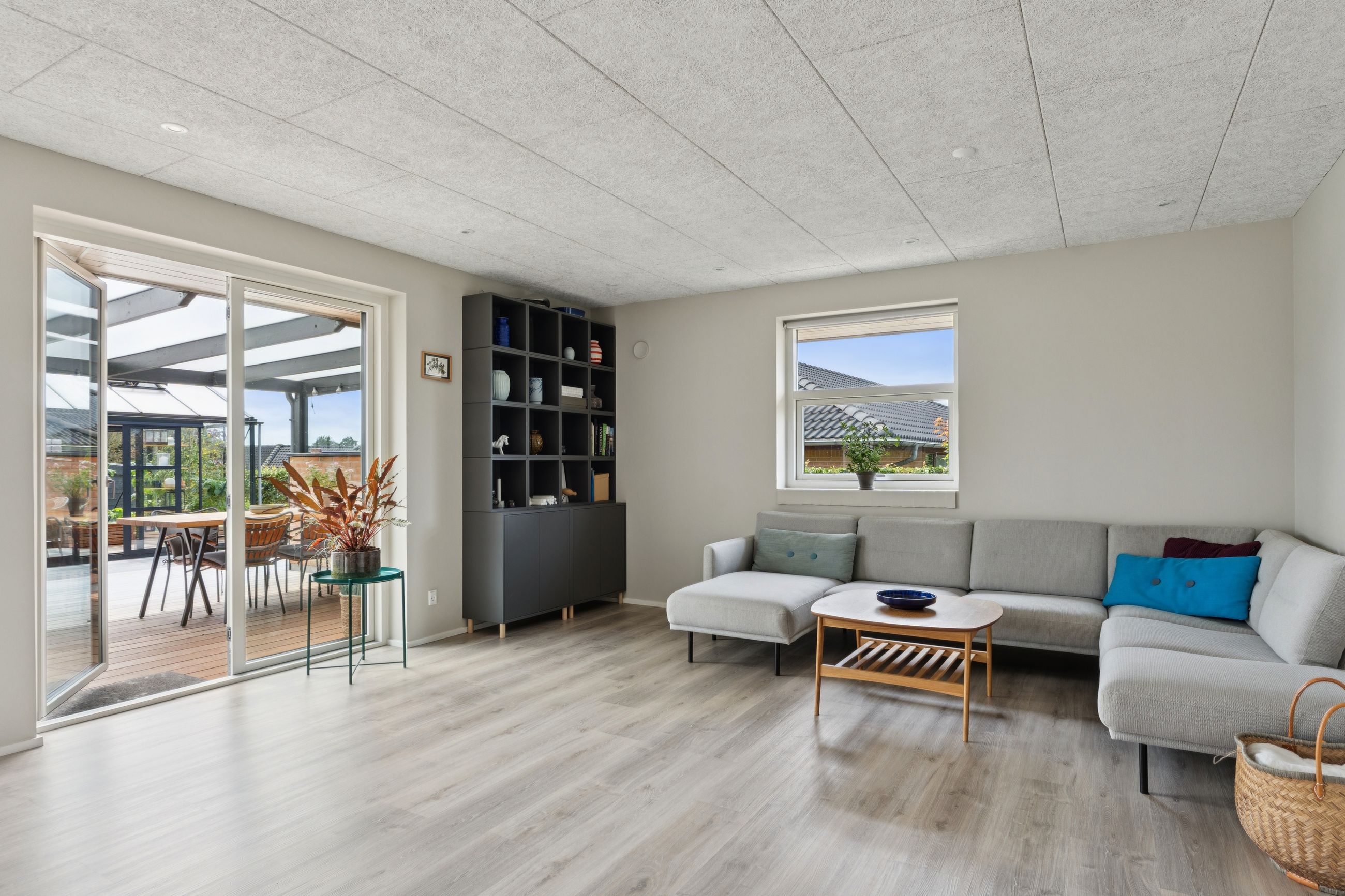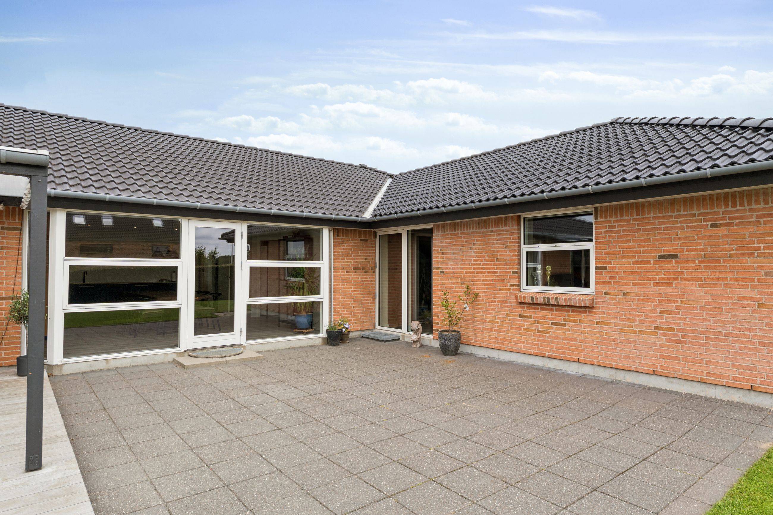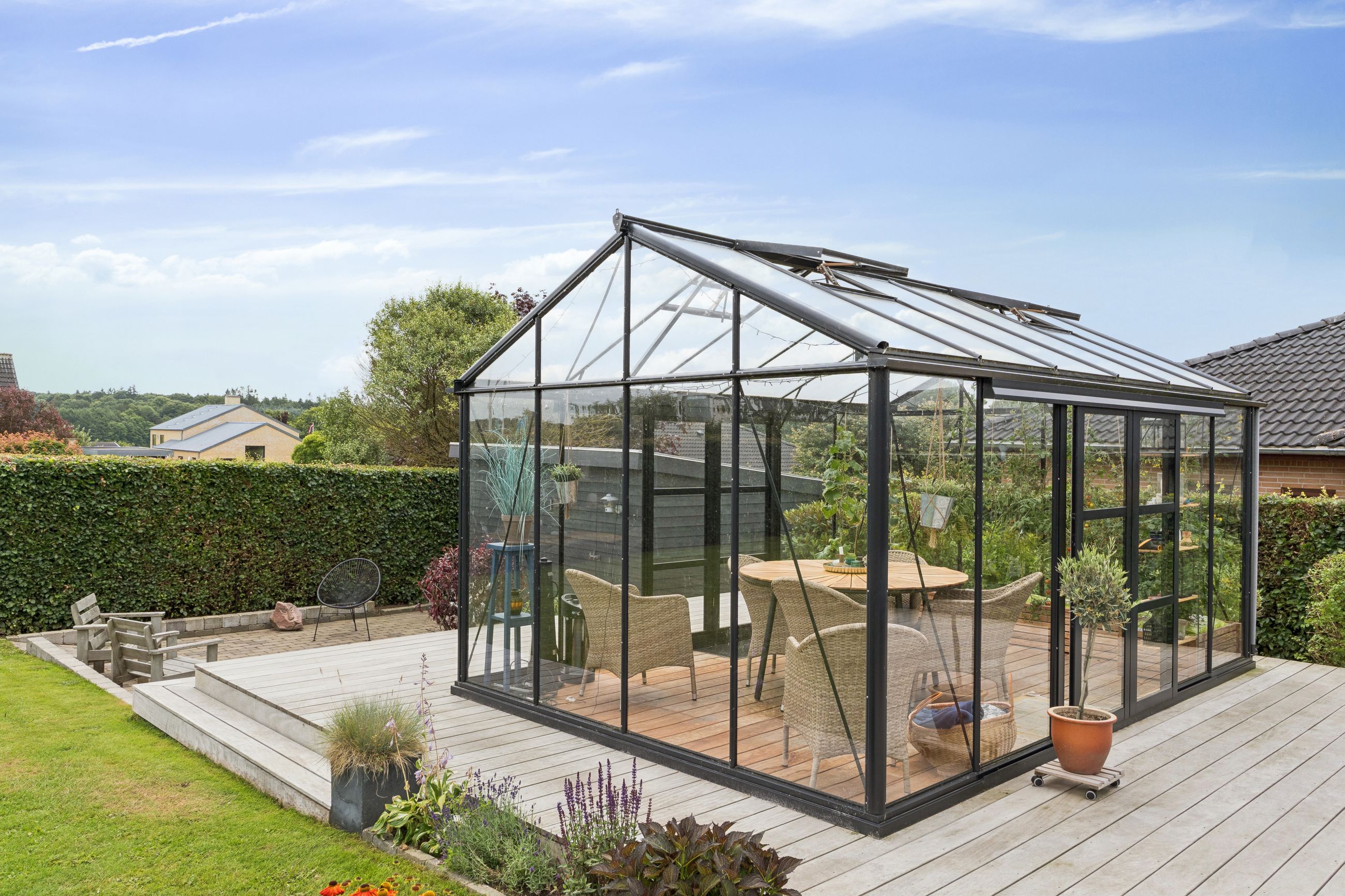 Udendørs venter skønne udemiljøer, hvor solen og udelivet kan nydes i fulde drag. Haven byder på både plads til leg og hyggelige terrasser, hvor I kan slappe af i fredelige omgivelser.