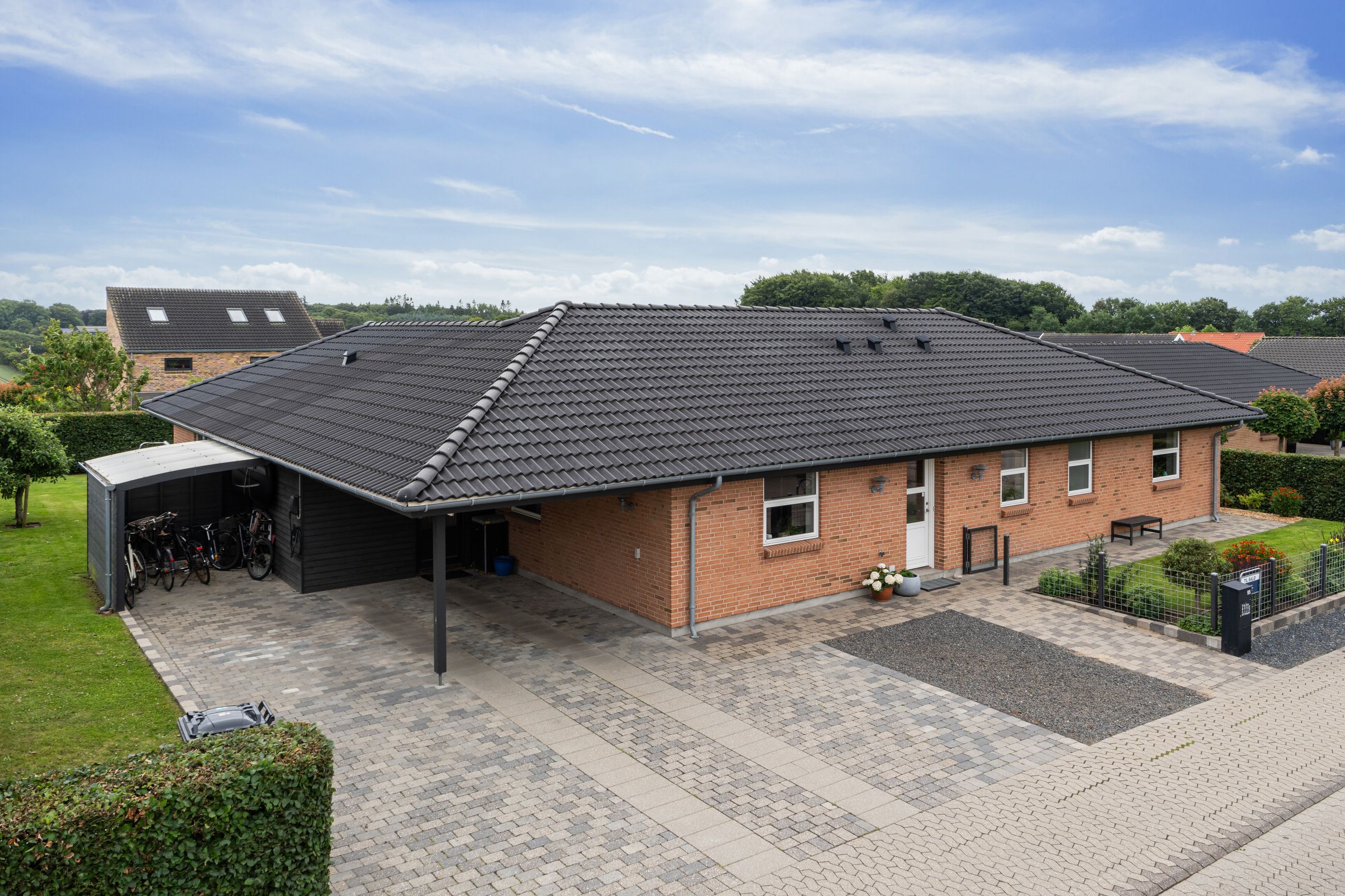 Beliggenheden er et stort plus: Ejendommen ligger i et populært og børnevenligt kvarter, med trygge stisystemer der binder området sammen. Her kan børnene nemt cykle til den nye skole, Lysningen, og I finder både børnehaver og indkøbsmuligheder i nærmiljøet.