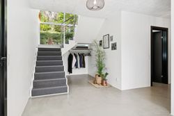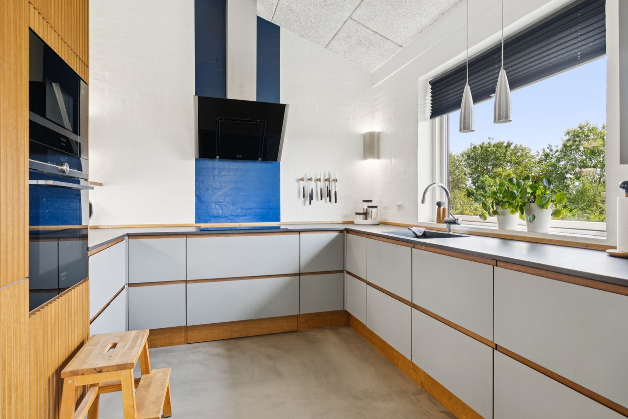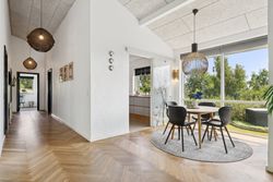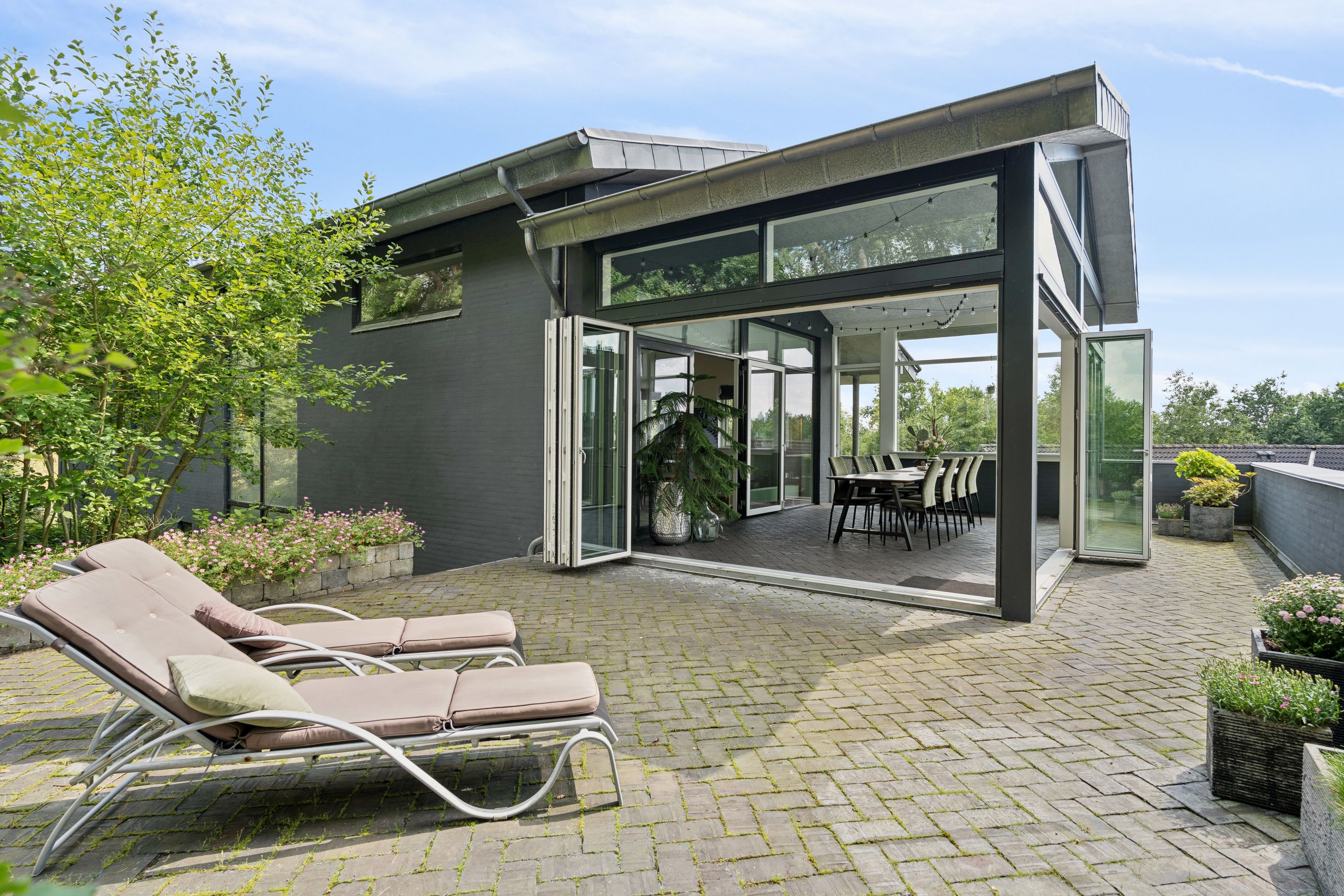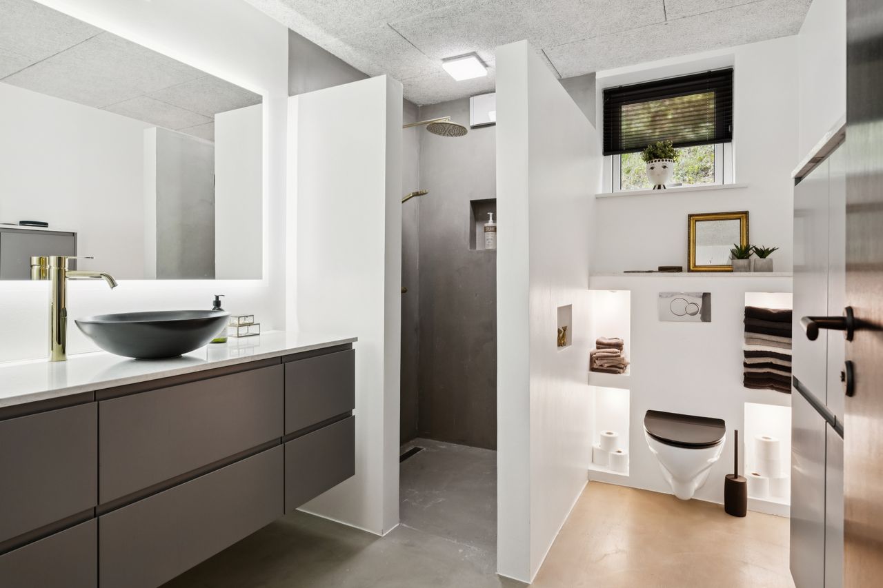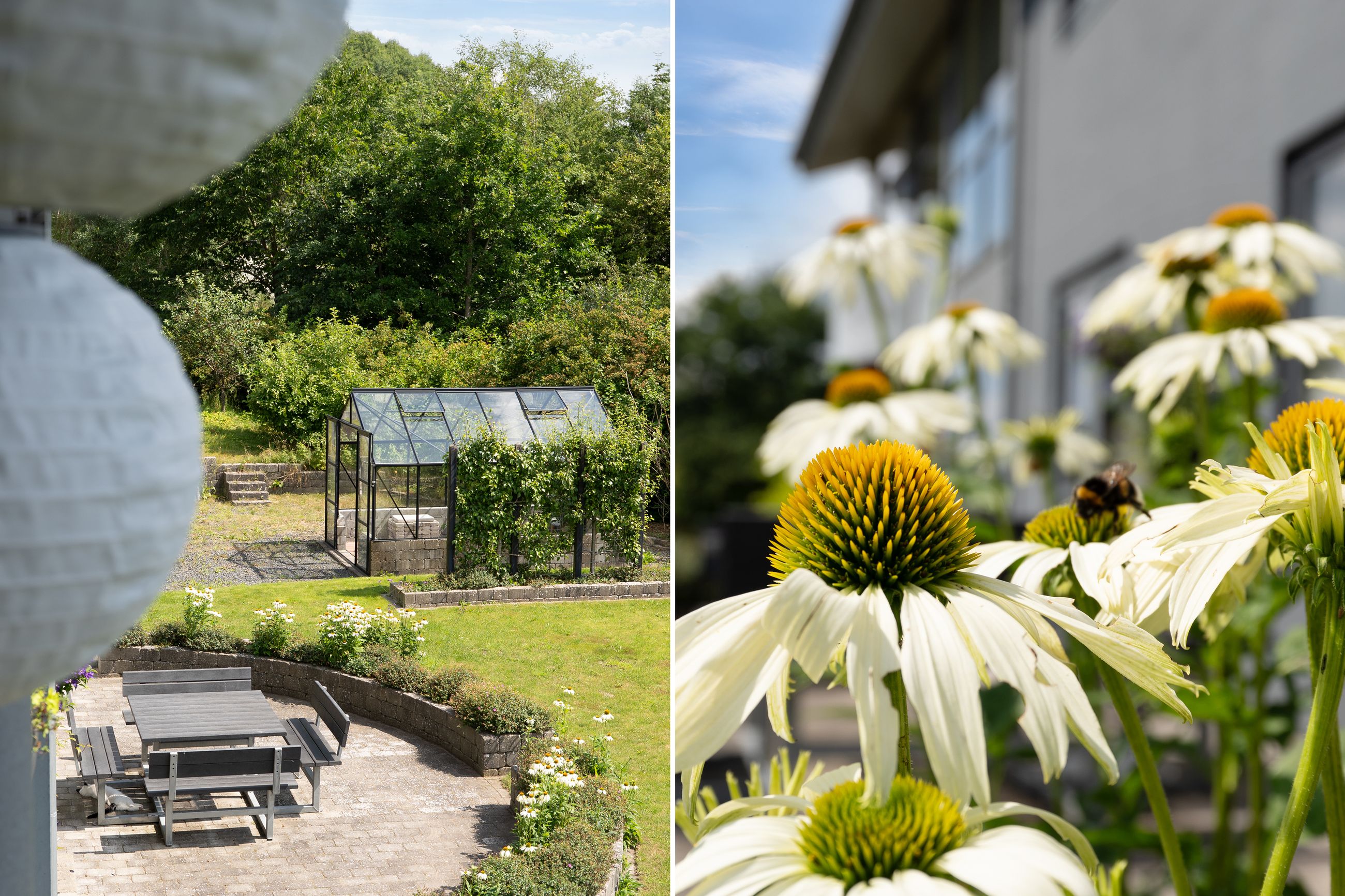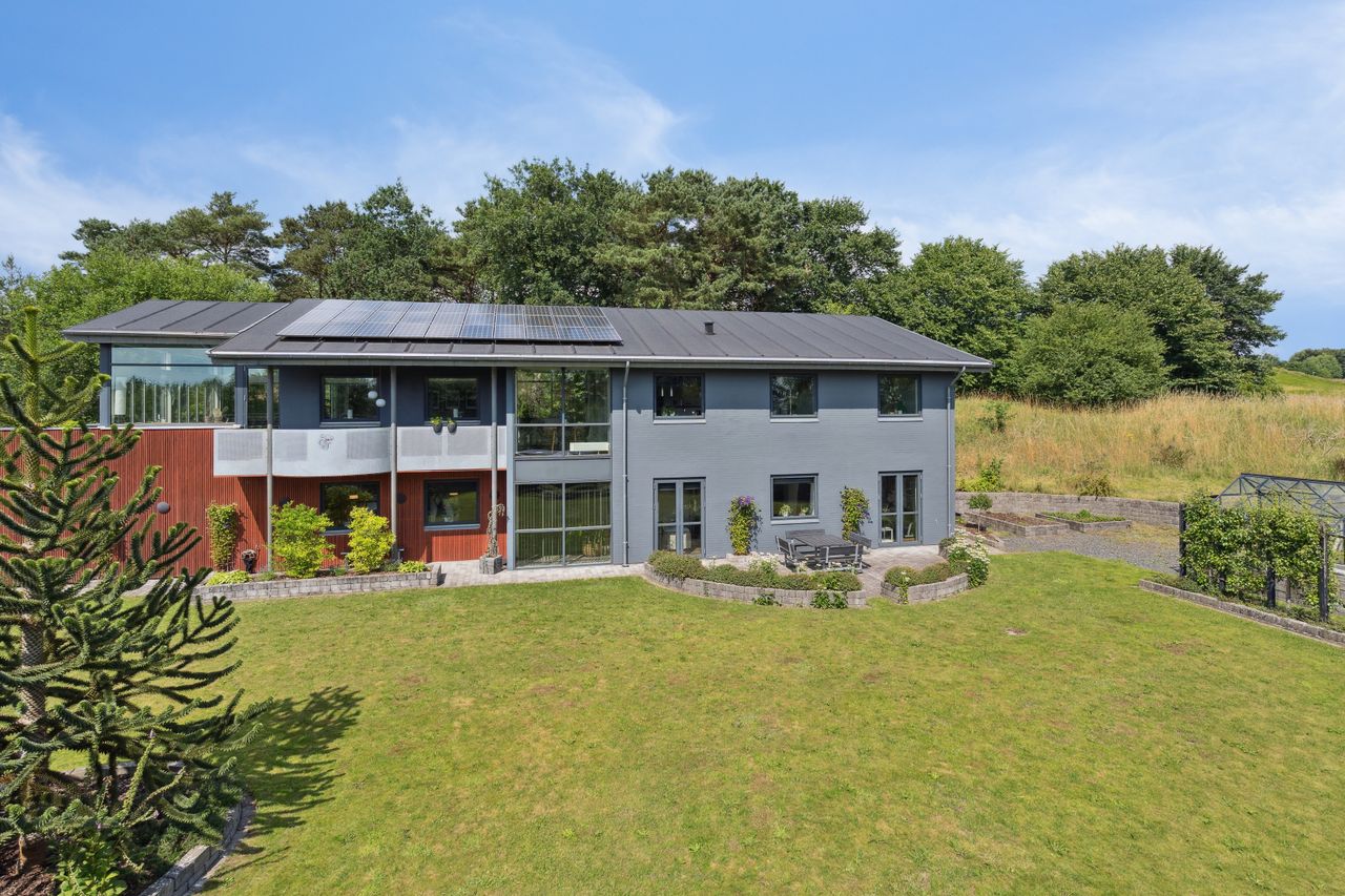 Et af husets store plusser er den imponerende garage med plads til hele fire biler – en sjælden luksus, der både giver praktiske muligheder og ekstra opbevaringsplads. Garagen er integreret i helheden og fuldender det moderne udtryk, som huset i øvrigt fremstår med.