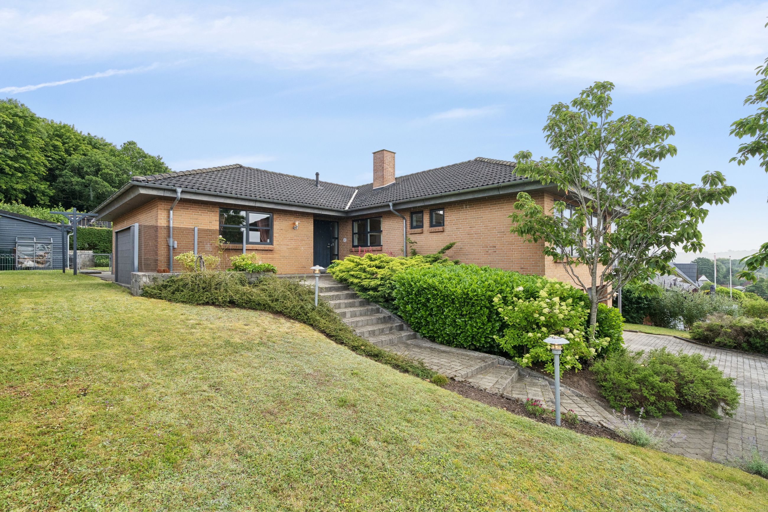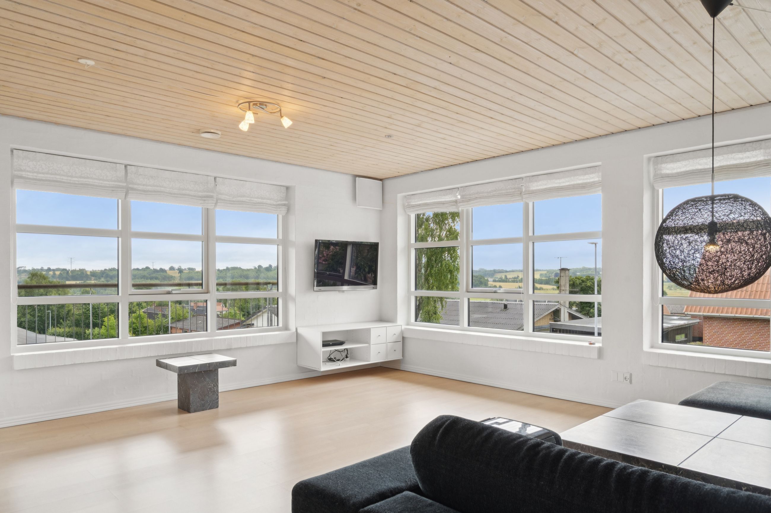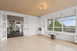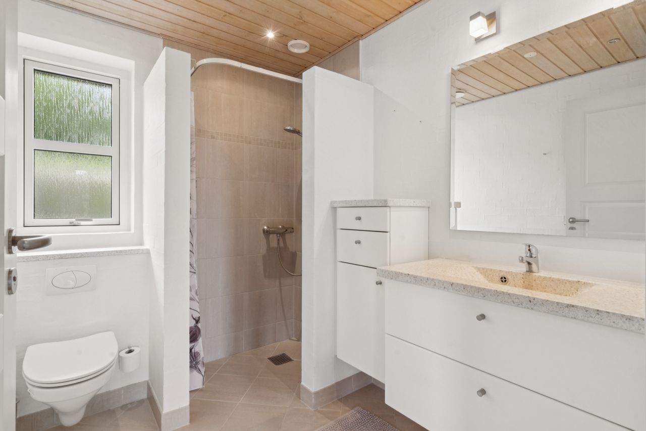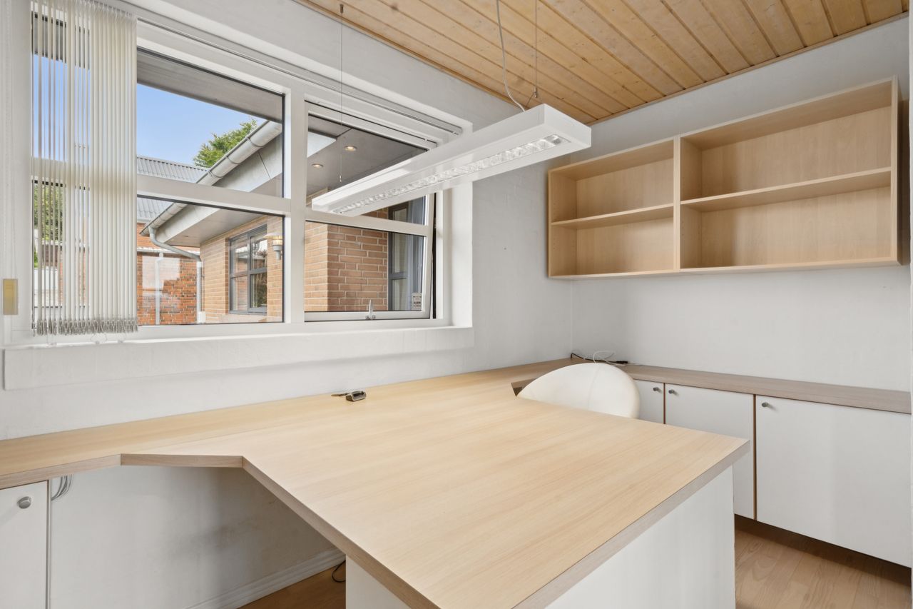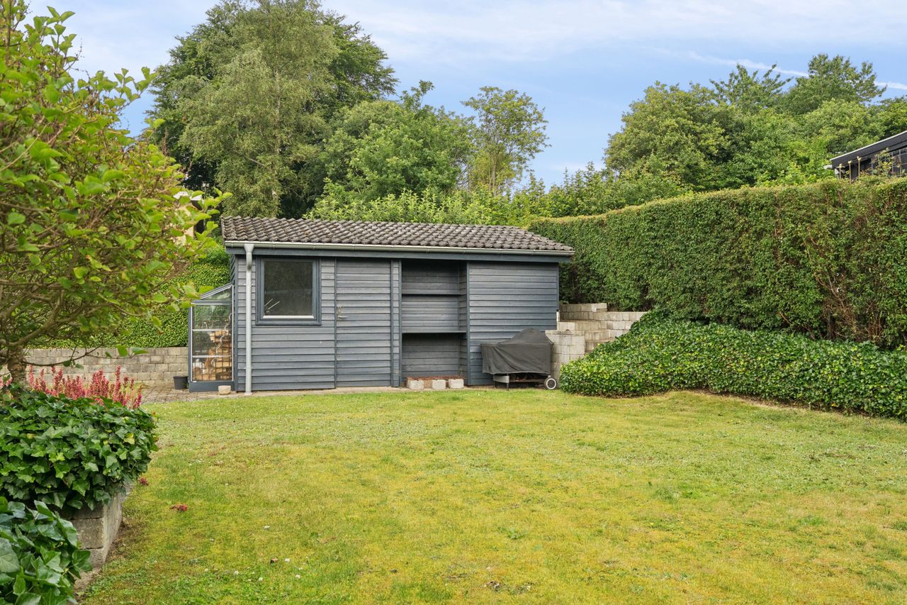 Boligen byder på god plads og en veldisponeret planløsning med hele 4 værelser, 2 badeværelser samt store, lyse opholdsrum. Hjemmets naturlige samlingspunkt er det åbne køkken-alrum og stueområde, hvorfra der er udgang til en sydvendt terrasse – perfekt placeret til sol det meste af dagen og med frit udsyn over dalen. Her er plads til både loungemøbler og spiseplads, og den private beliggenhed gør udelivet ekstra attraktivt.