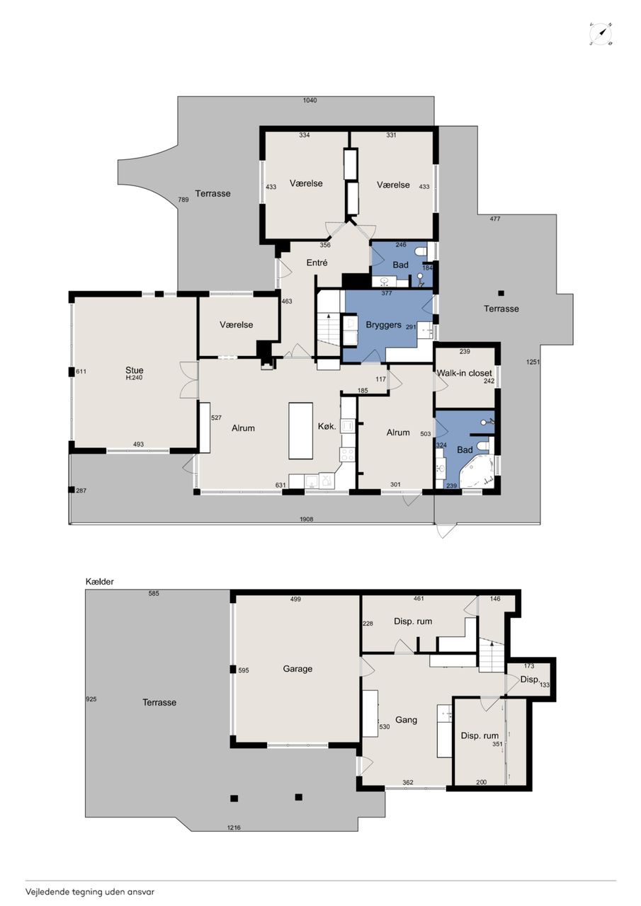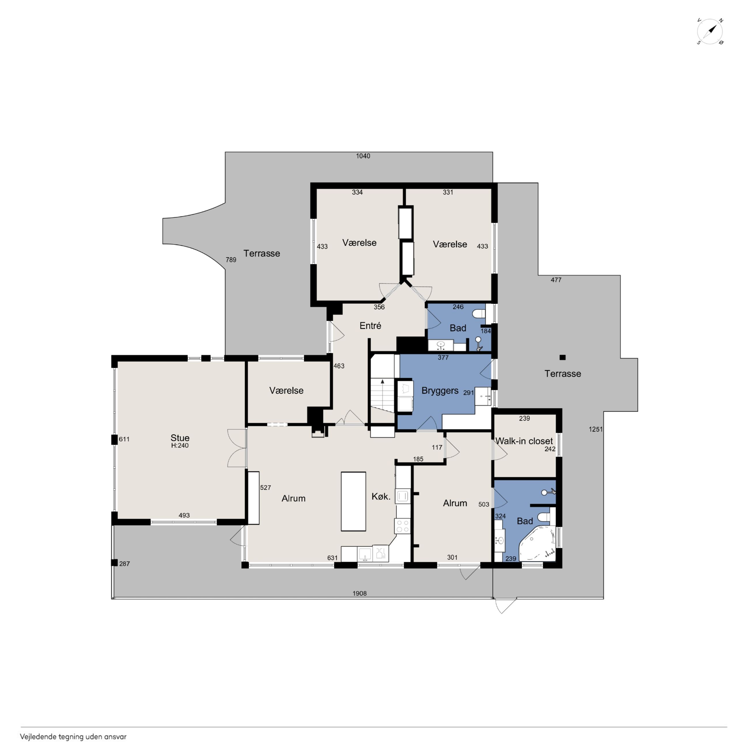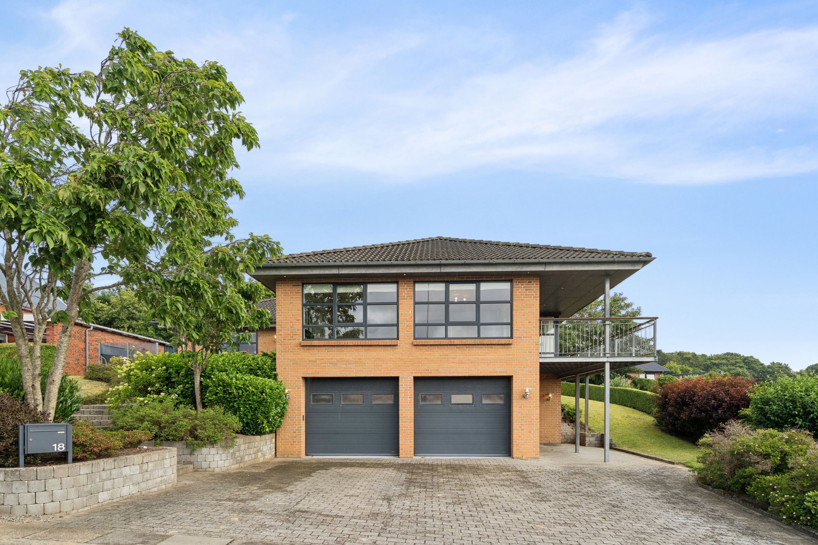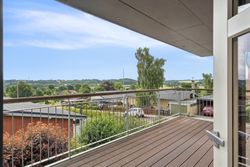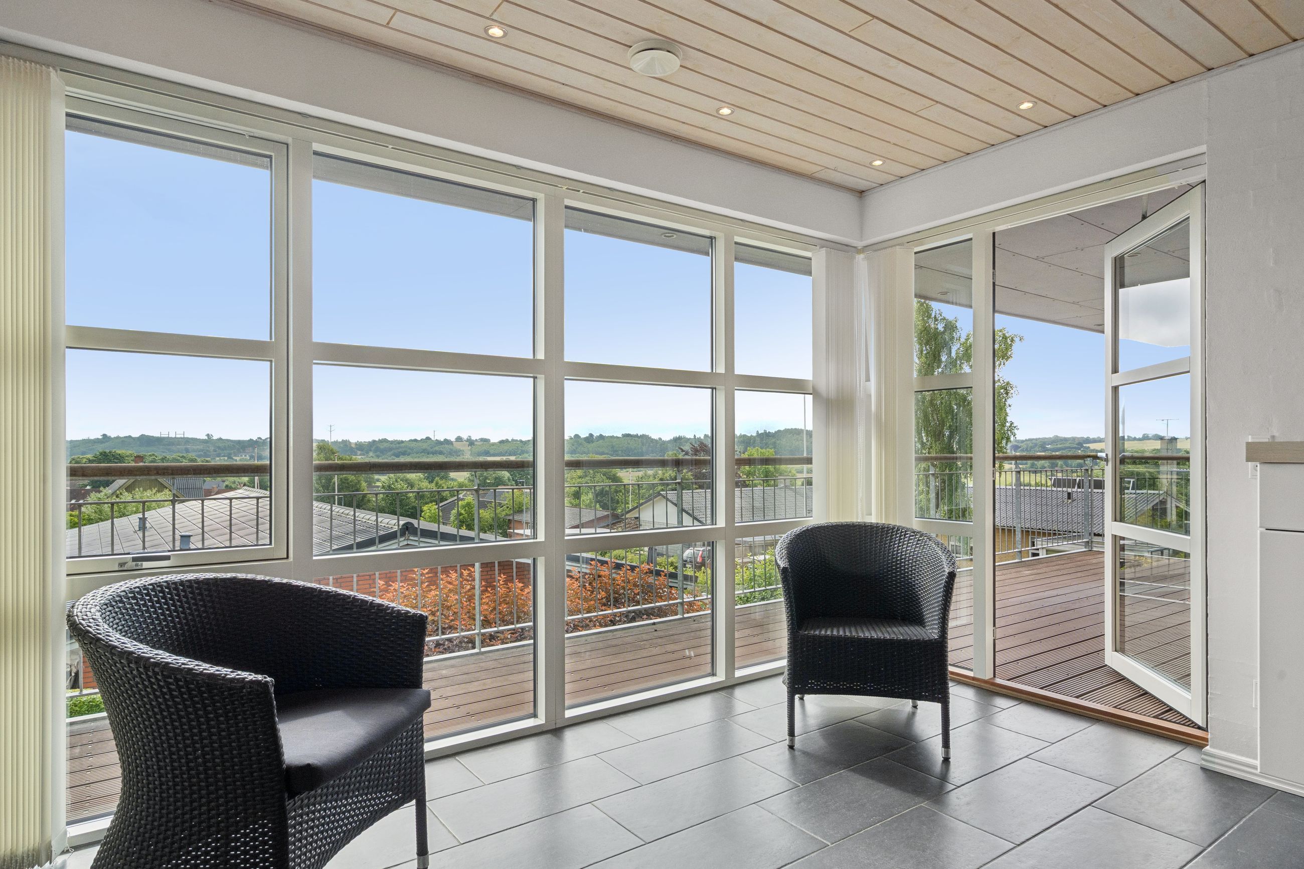 Boligen byder på god plads og en veldisponeret planløsning med hele 4 værelser, 2 badeværelser samt store, lyse opholdsrum. Hjemmets naturlige samlingspunkt er det åbne køkken-alrum og stueområde, hvorfra der er udgang til en sydvendt terrasse – perfekt placeret til sol det meste af dagen og med frit udsyn over dalen. Her er plads til både loungemøbler og spiseplads, og den private beliggenhed gør udelivet ekstra attraktivt.