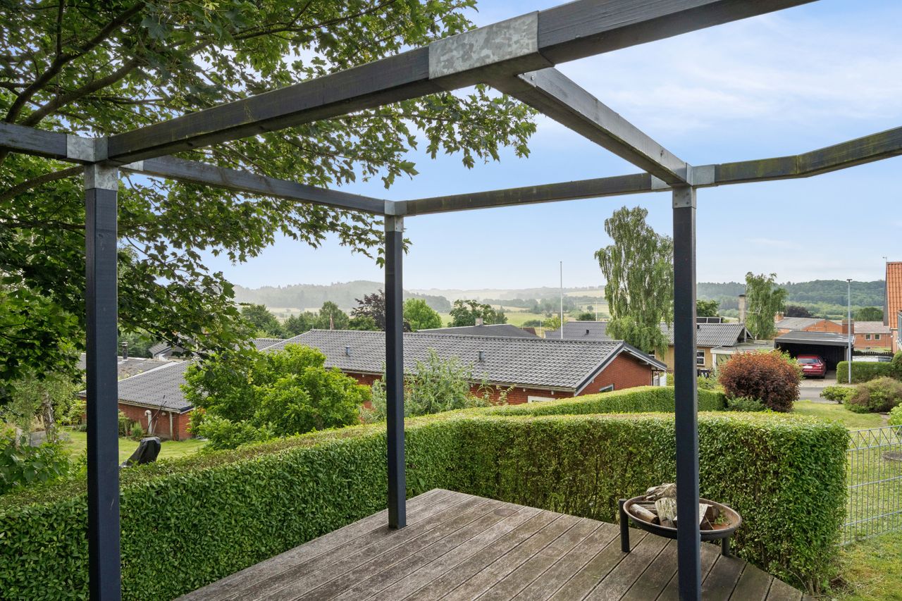 Skolvangen 18 ligger i et fredeligt kvarter i Vejrumbro – tæt på naturen, men med nem adgang til Viborg og hverdagens faciliteter. Her får du en kombination af moderne komfort, flot udsigt og god plads til hele familien.