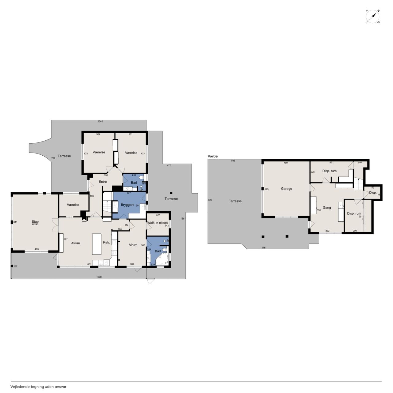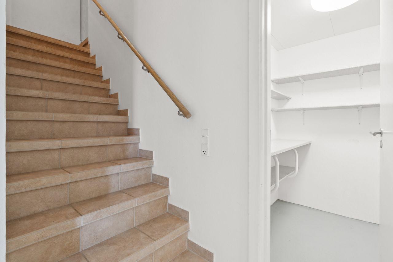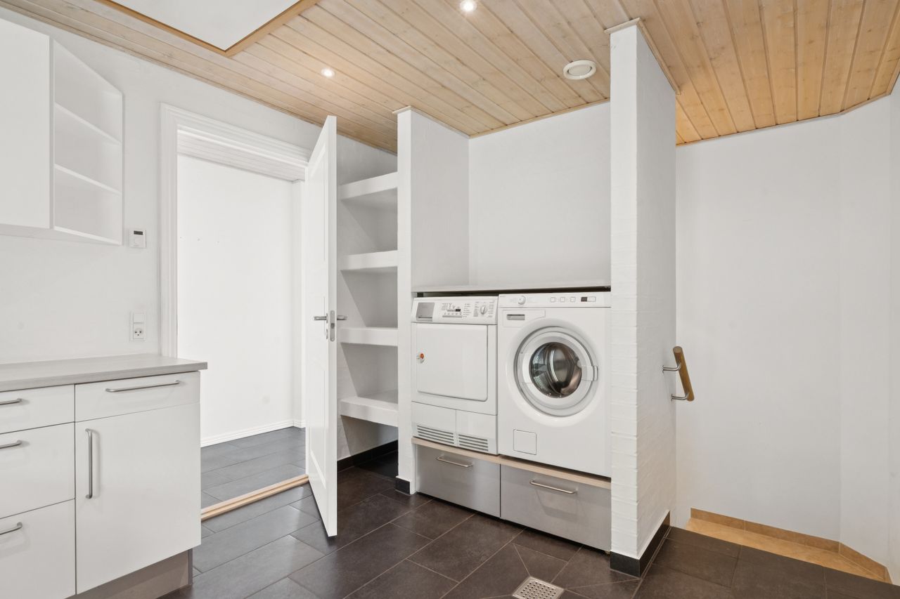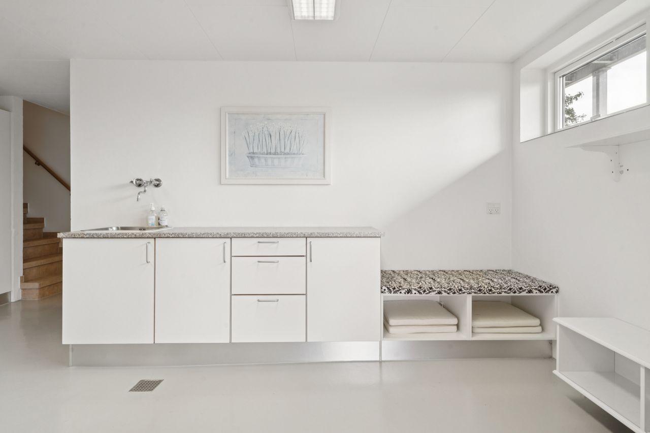 Underetagen rummer en integreret dobbelt garage, hvor der er plads til to biler samt opbevaring og værkstedsmuligheder. Her findes også gode disponible rum, der kan anvendes til hobby, opbevaring, fitness eller lignende – mulighederne er mange.