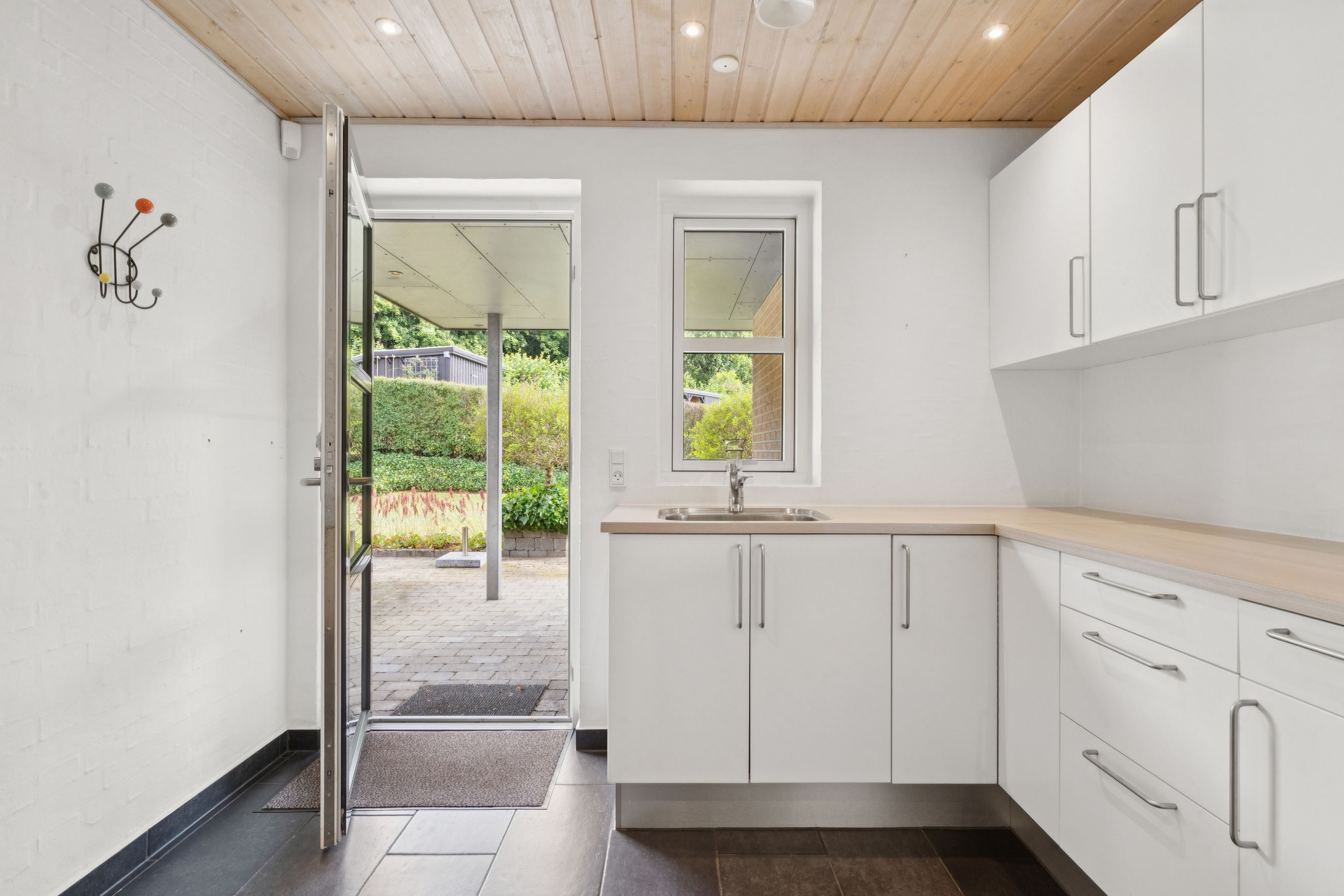Huset fremstår indflytningsklart med et klassisk og tidløst udtryk, og materialerne er valgt med fokus på kvalitet og holdbarhed. Den fuldmurede konstruktion bidrager til både soliditet og et godt indeklima.