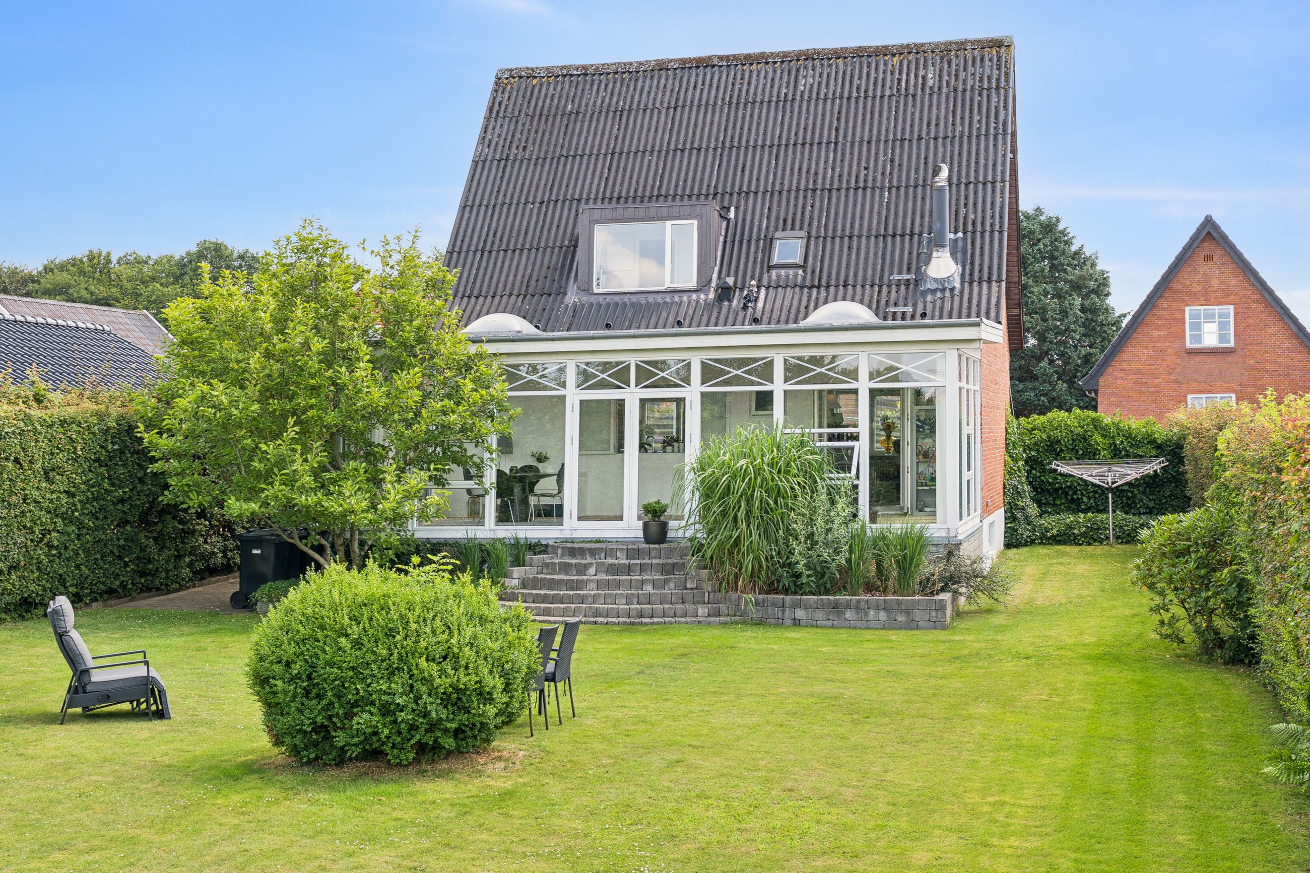Haven er nem at holde og indbyder til både leg, afslapning og udeliv på terrassen. Her er rig mulighed for at skabe små oaser, hvor sommerdagene kan nydes i fred og ro.