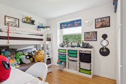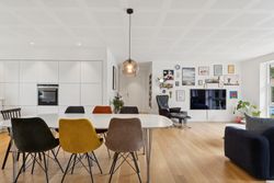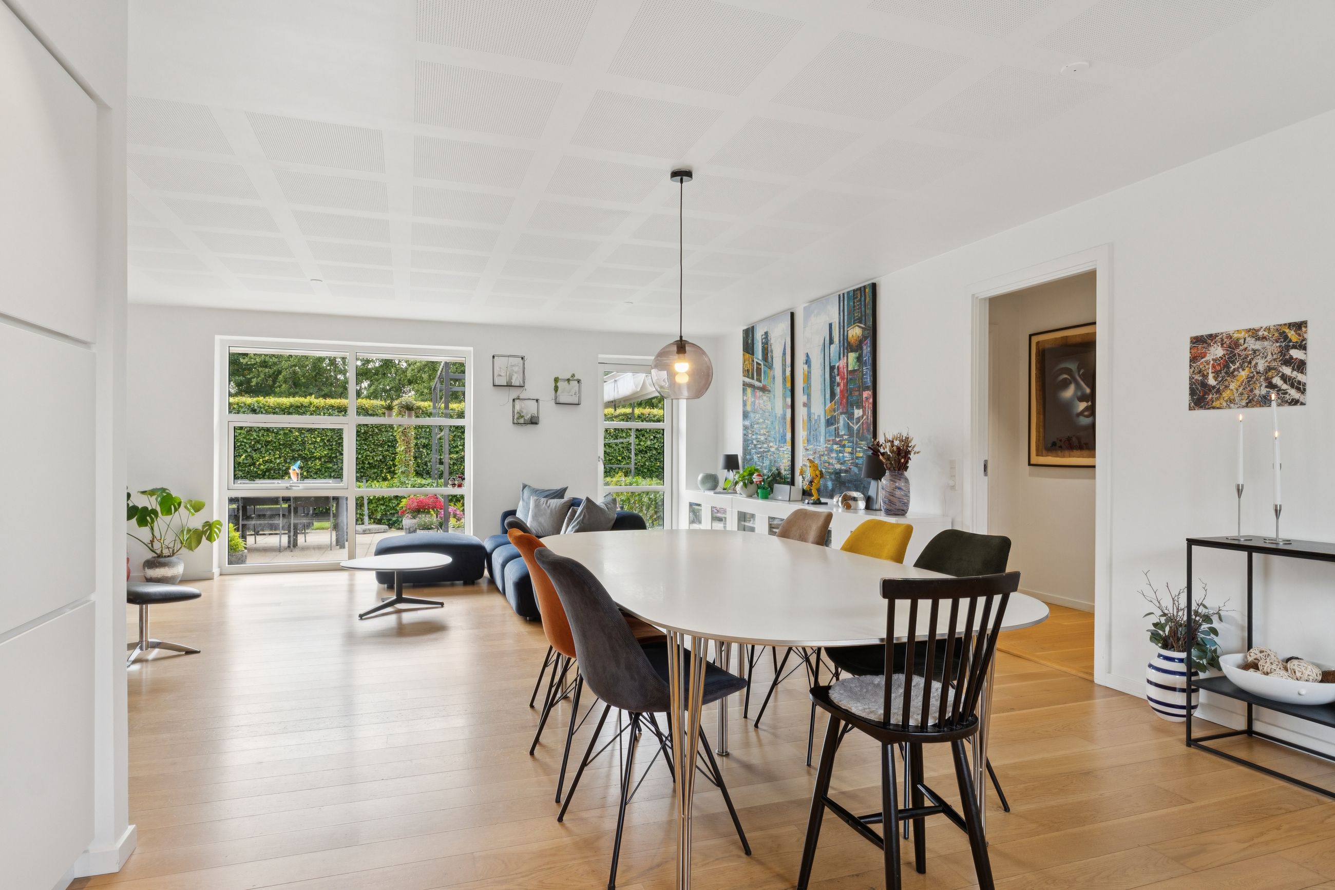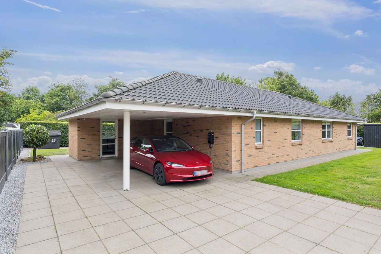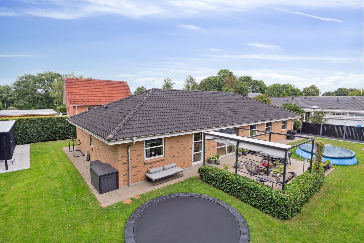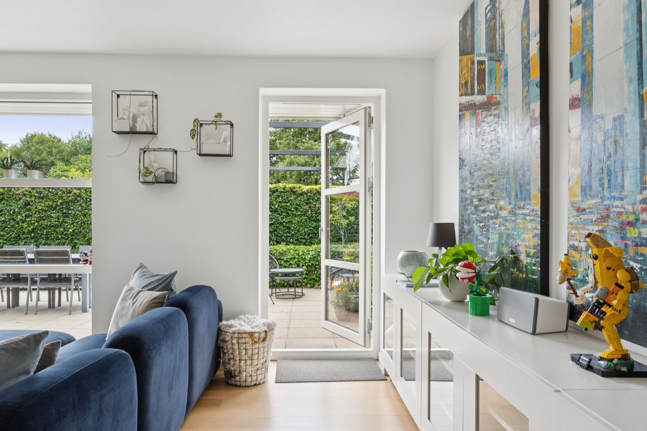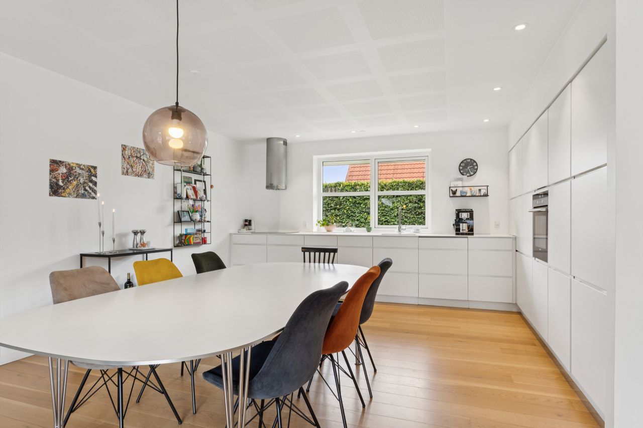 Huset byder på en gennemtænkt planløsning med plads til både fællesskab og privatliv – ideelt til både børnefamilien og parret, der ønsker god plads omkring sig.