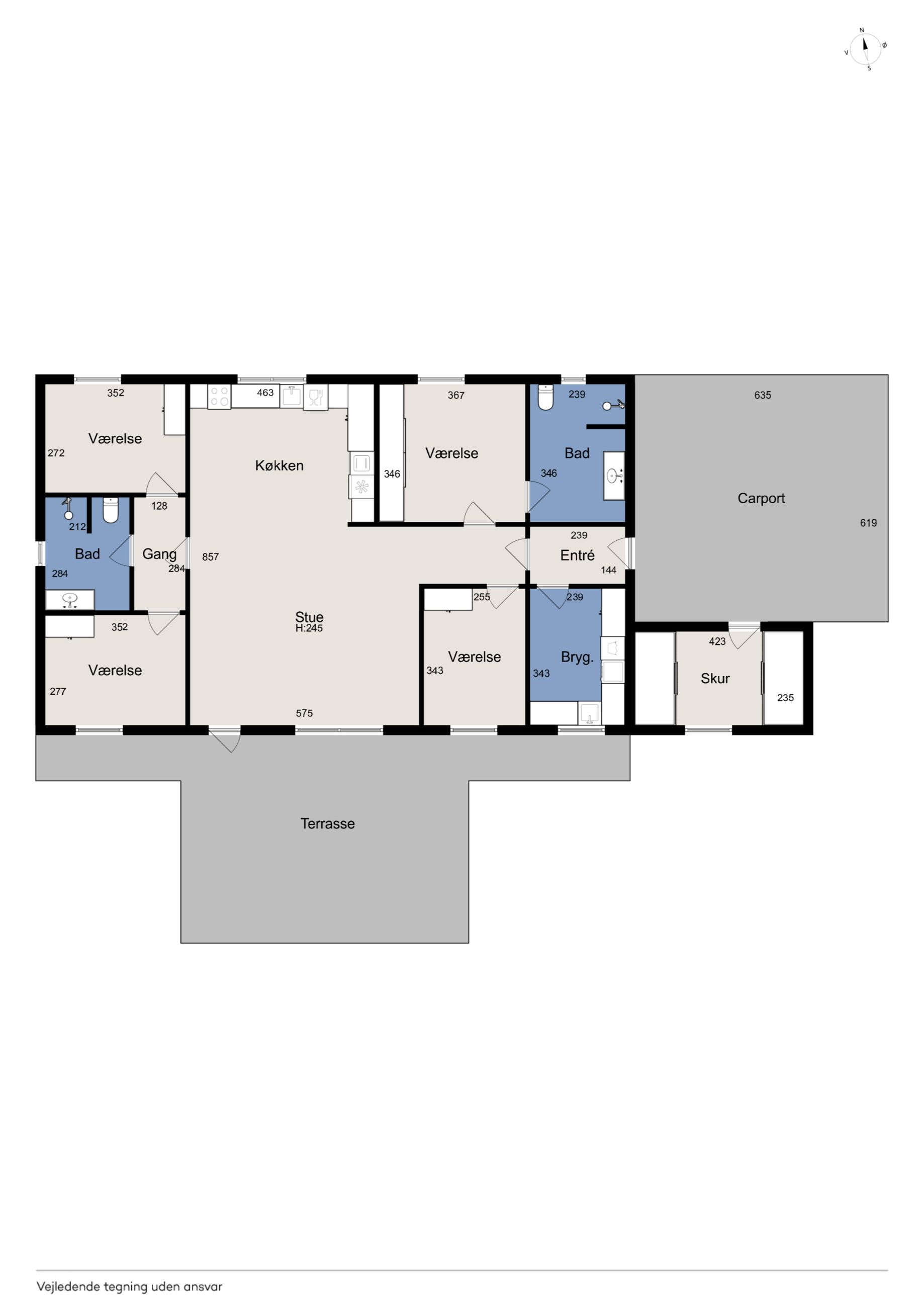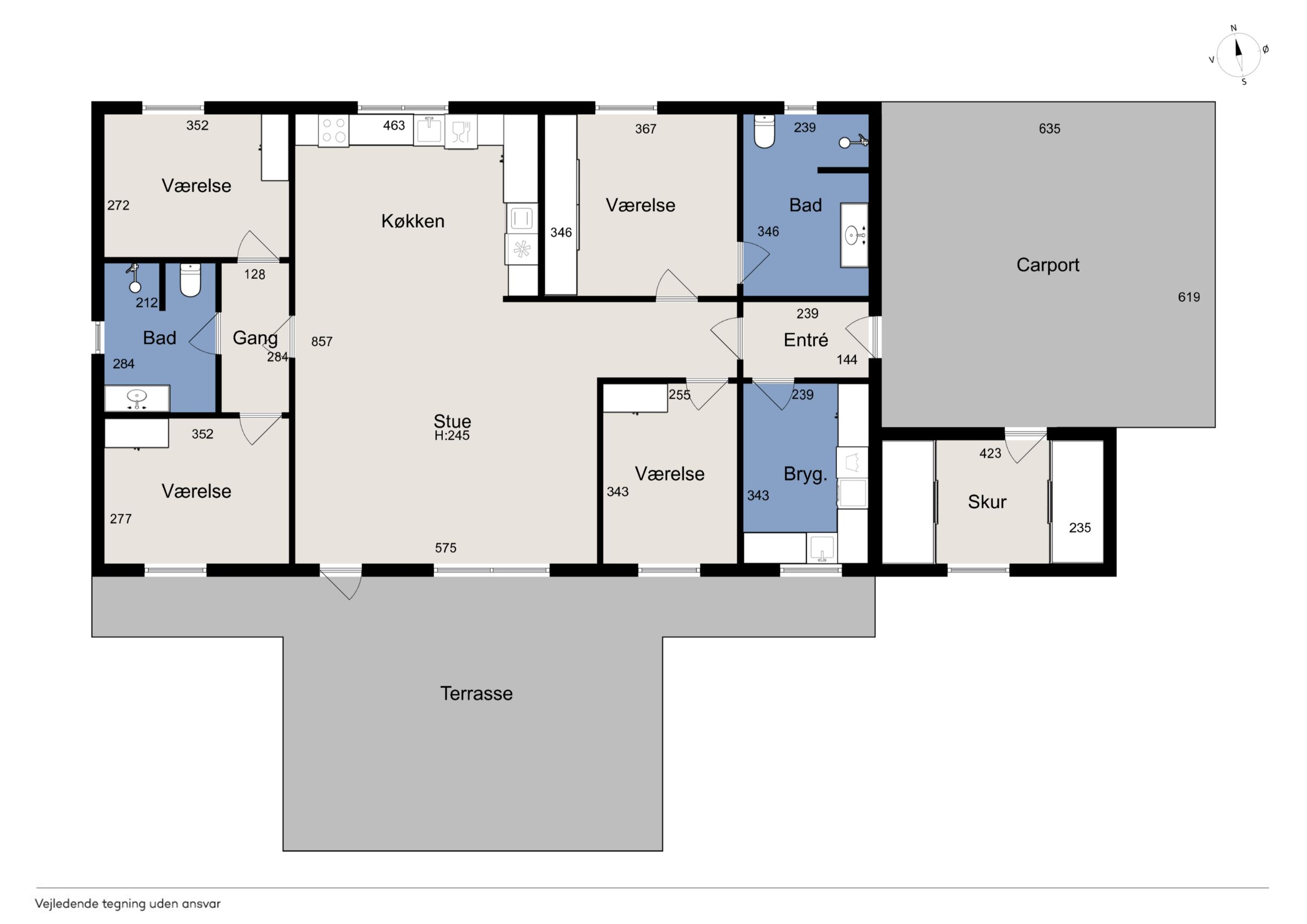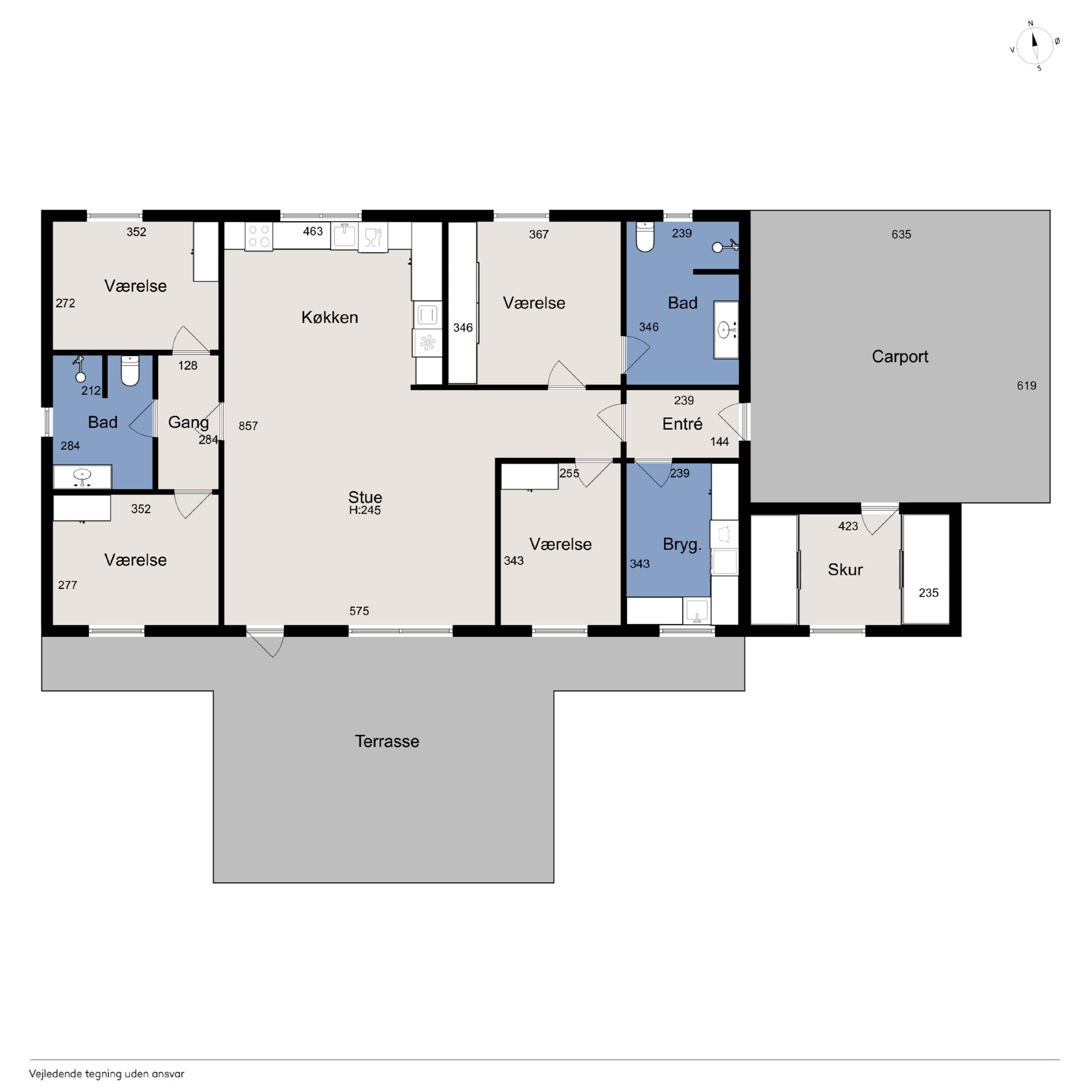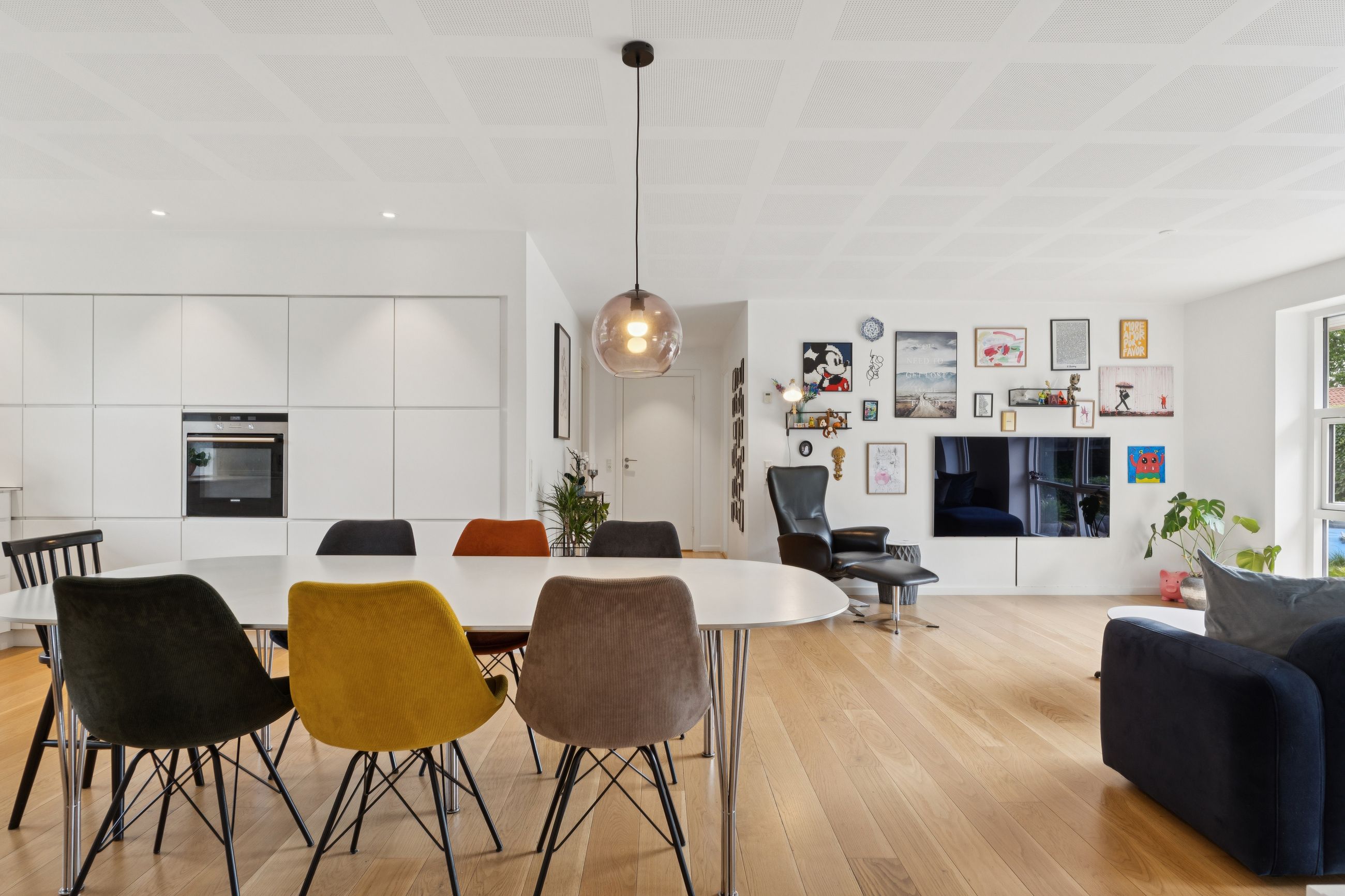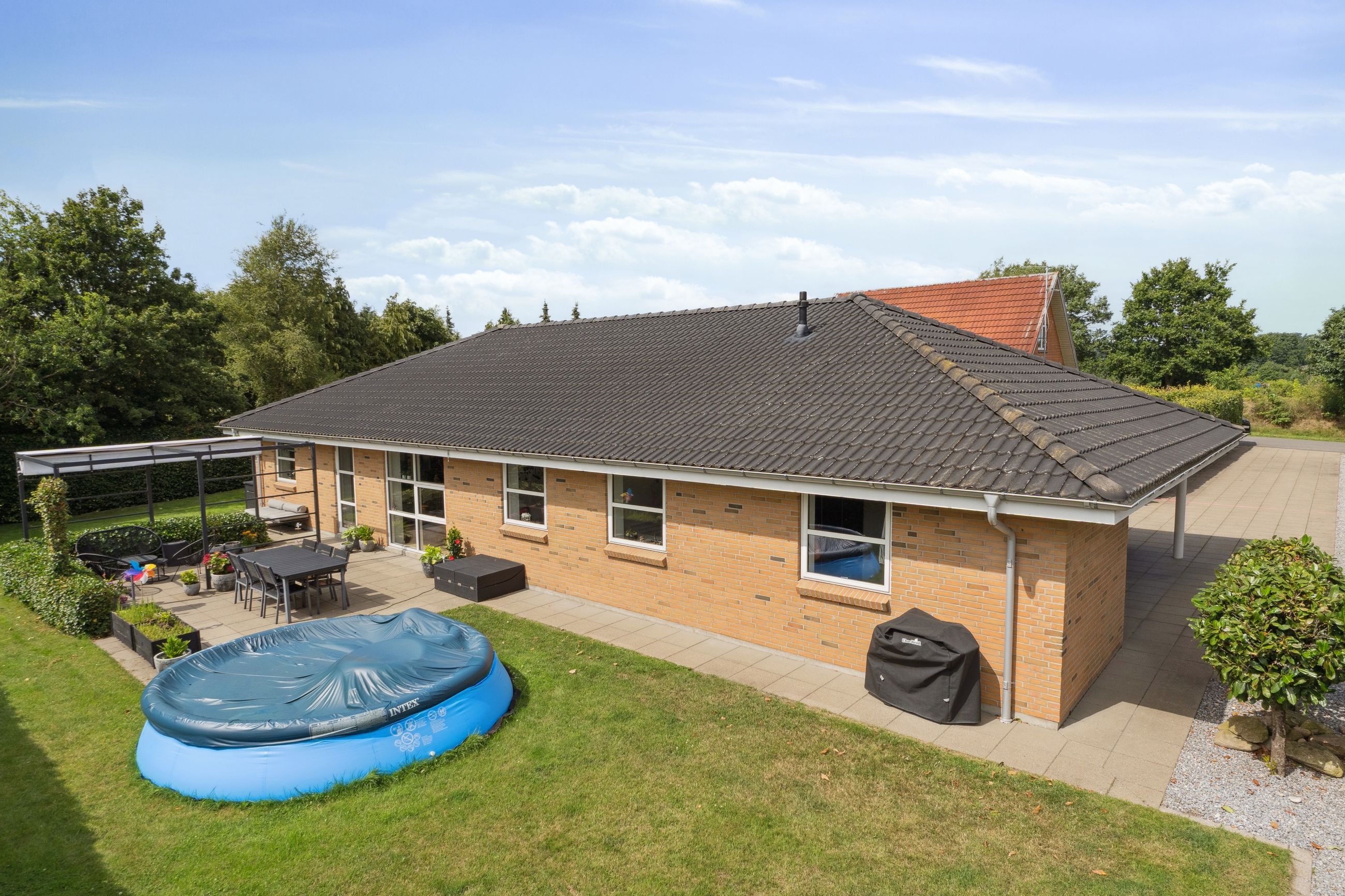 Huset byder på en gennemtænkt planløsning med plads til både fællesskab og privatliv – ideelt til både børnefamilien og parret, der ønsker god plads omkring sig.