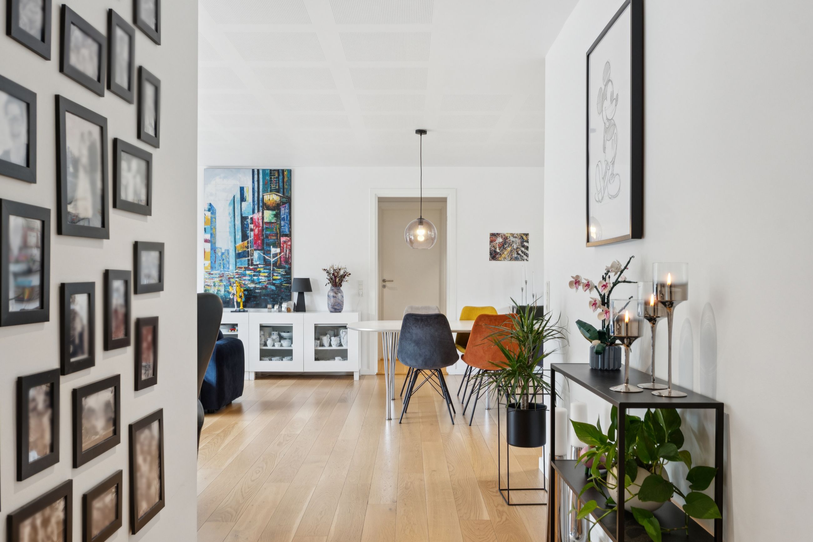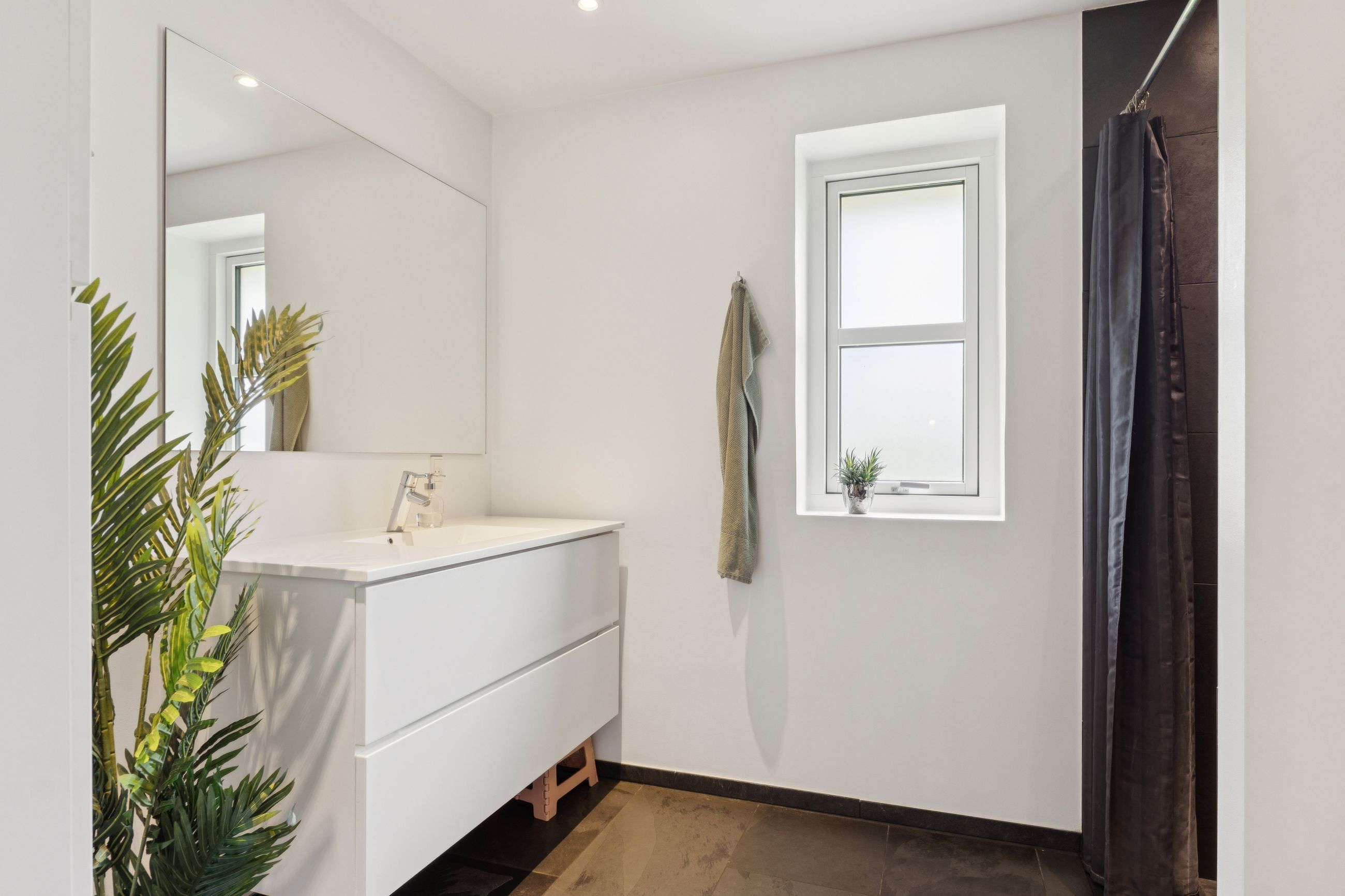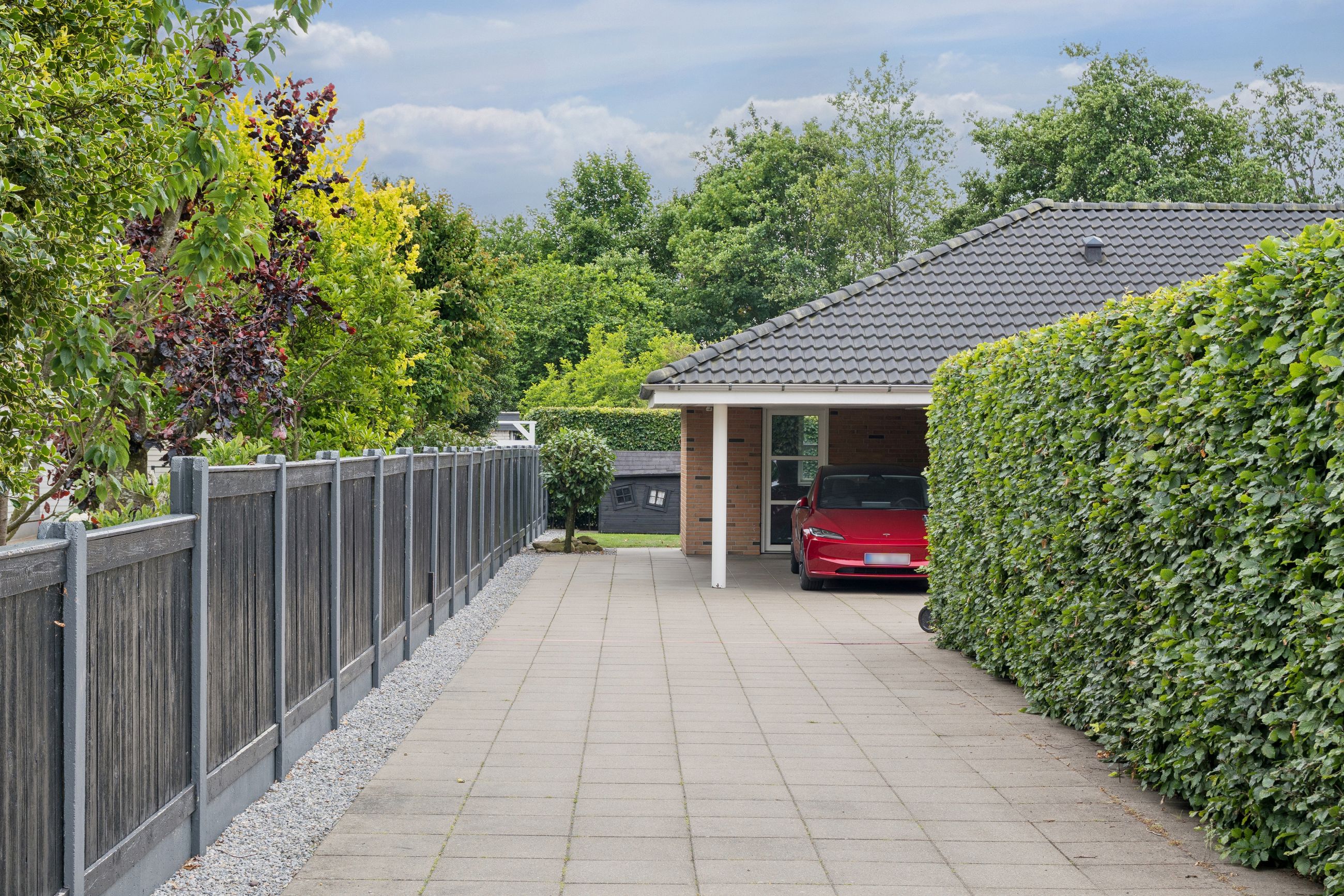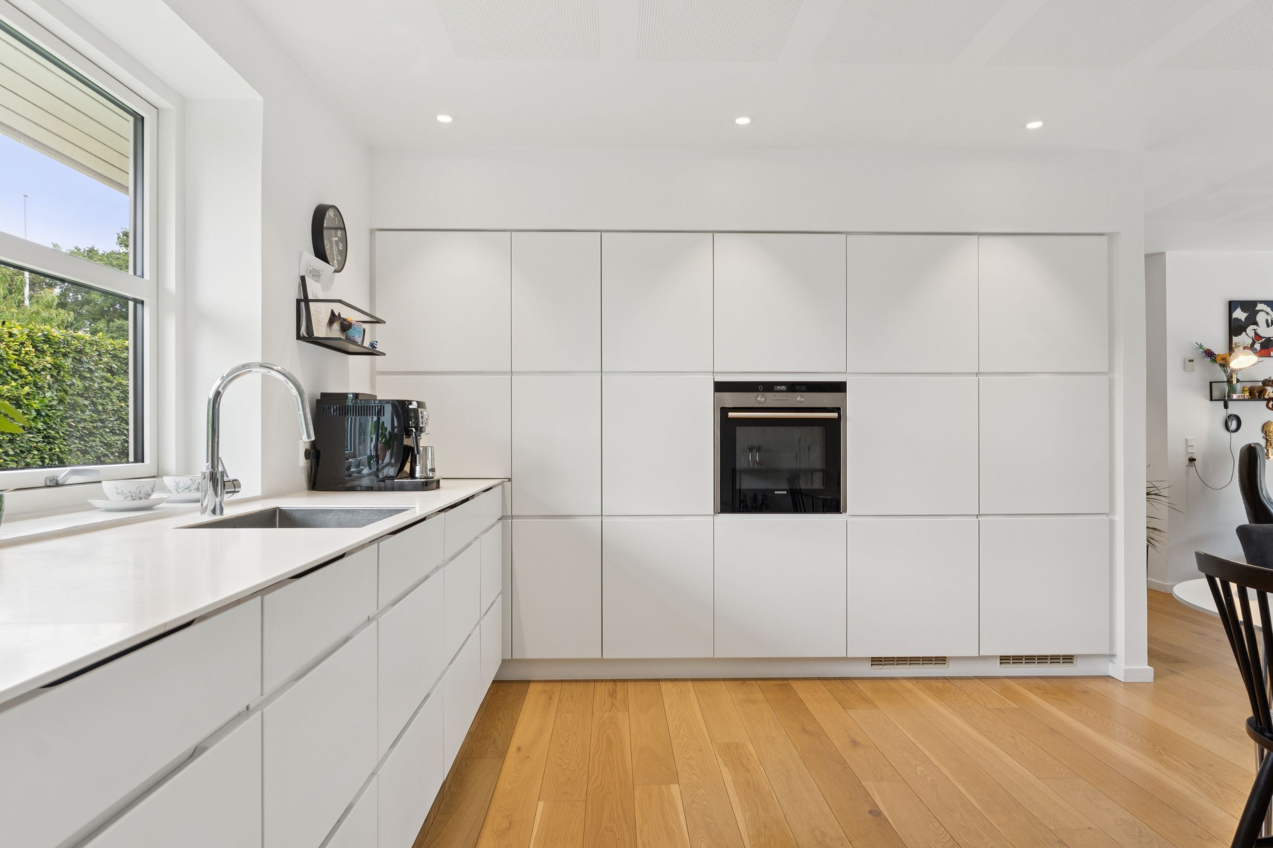 Boligen er opført med fokus på komfort og æstetik. Indenfor mødes du af lyse og indbydende rum med gipslofter og lydfelter, som skaber en behagelig akustik og en rolig atmosfære. Gulvene er en elegant kombination af natur skifer og smukke trægulve, som giver hjemmet et varmt og eksklusivt udtryk.
