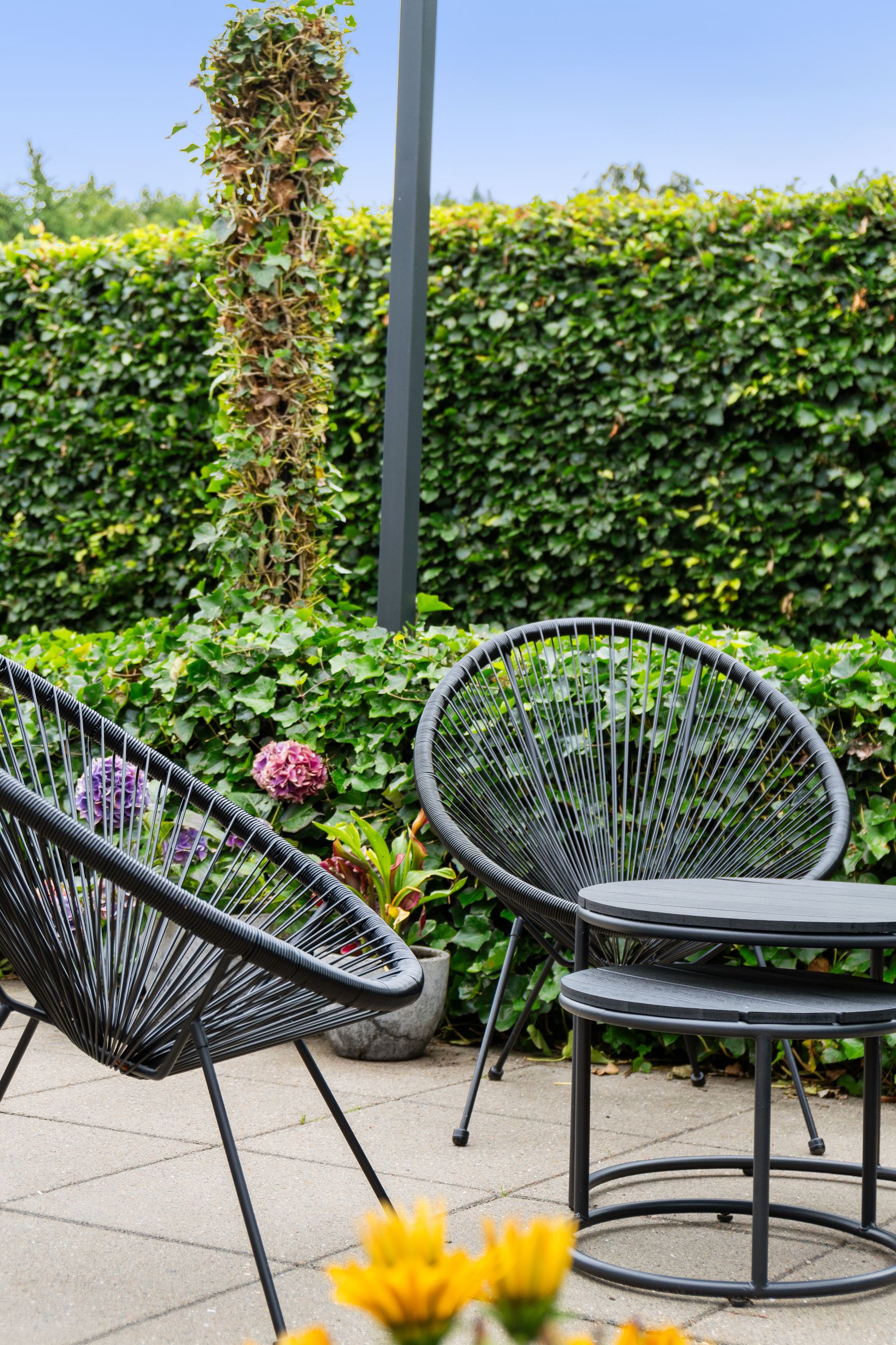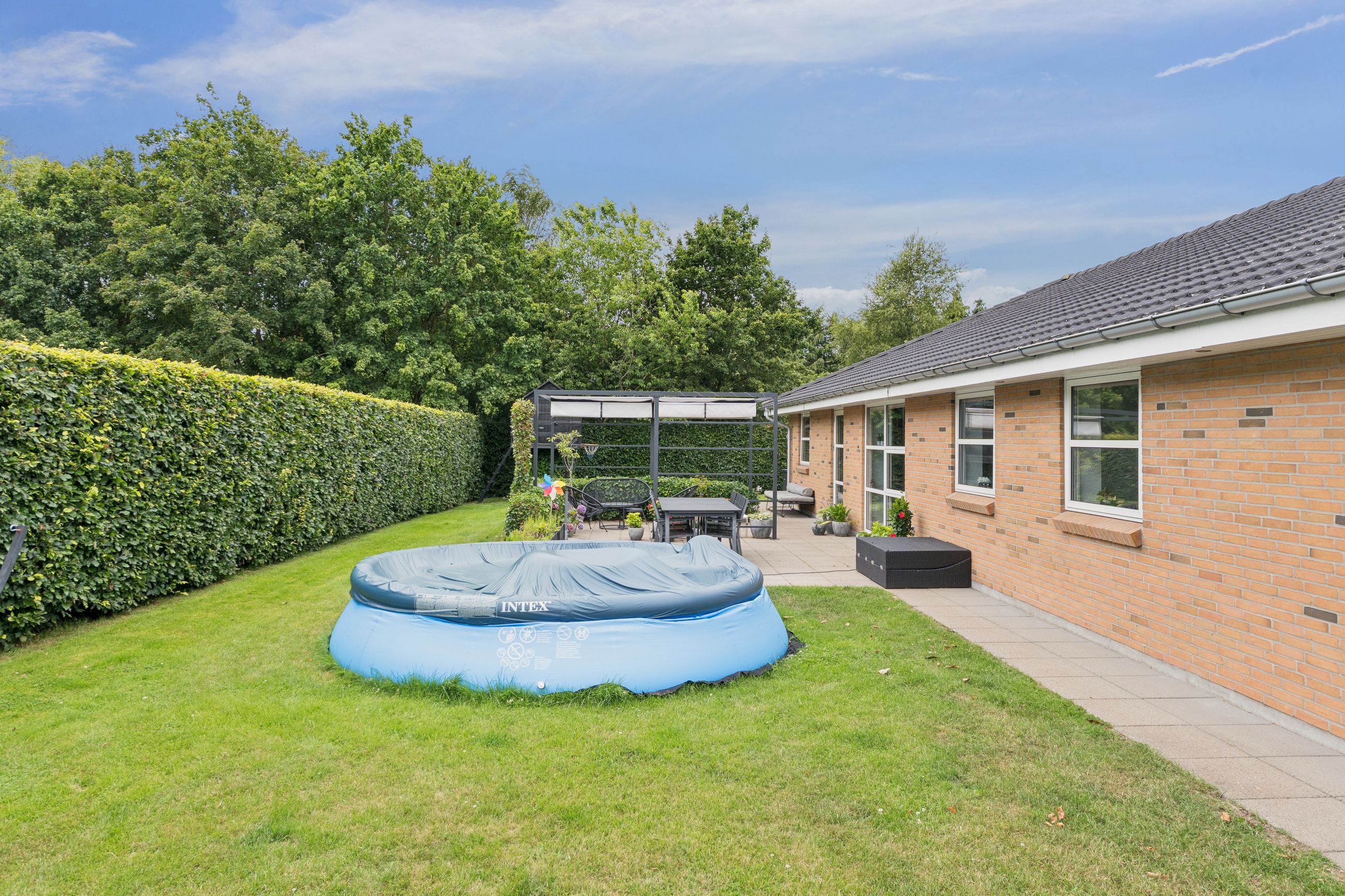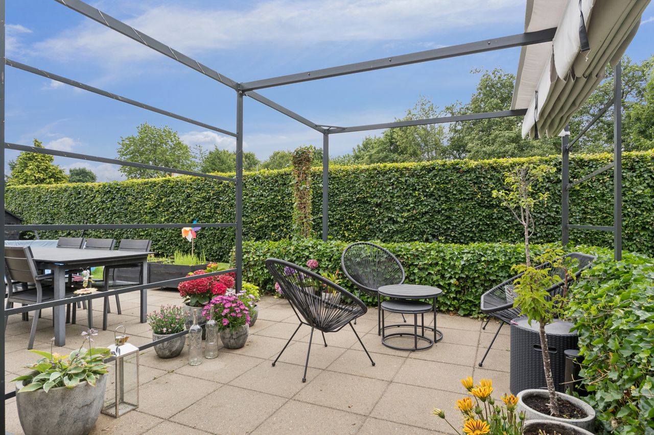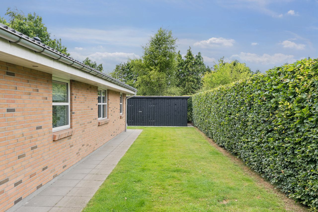 Udenfor venter en skøn og helt ugenert have, hvor du kan nyde stilheden og det grønne i fred og ro. Haven er anlagt med et flot og hyggeligt terrasseafsnit, som indbyder til afslappede grillmiddage, solrige eftermiddage og aftenkaffe under åben himmel.