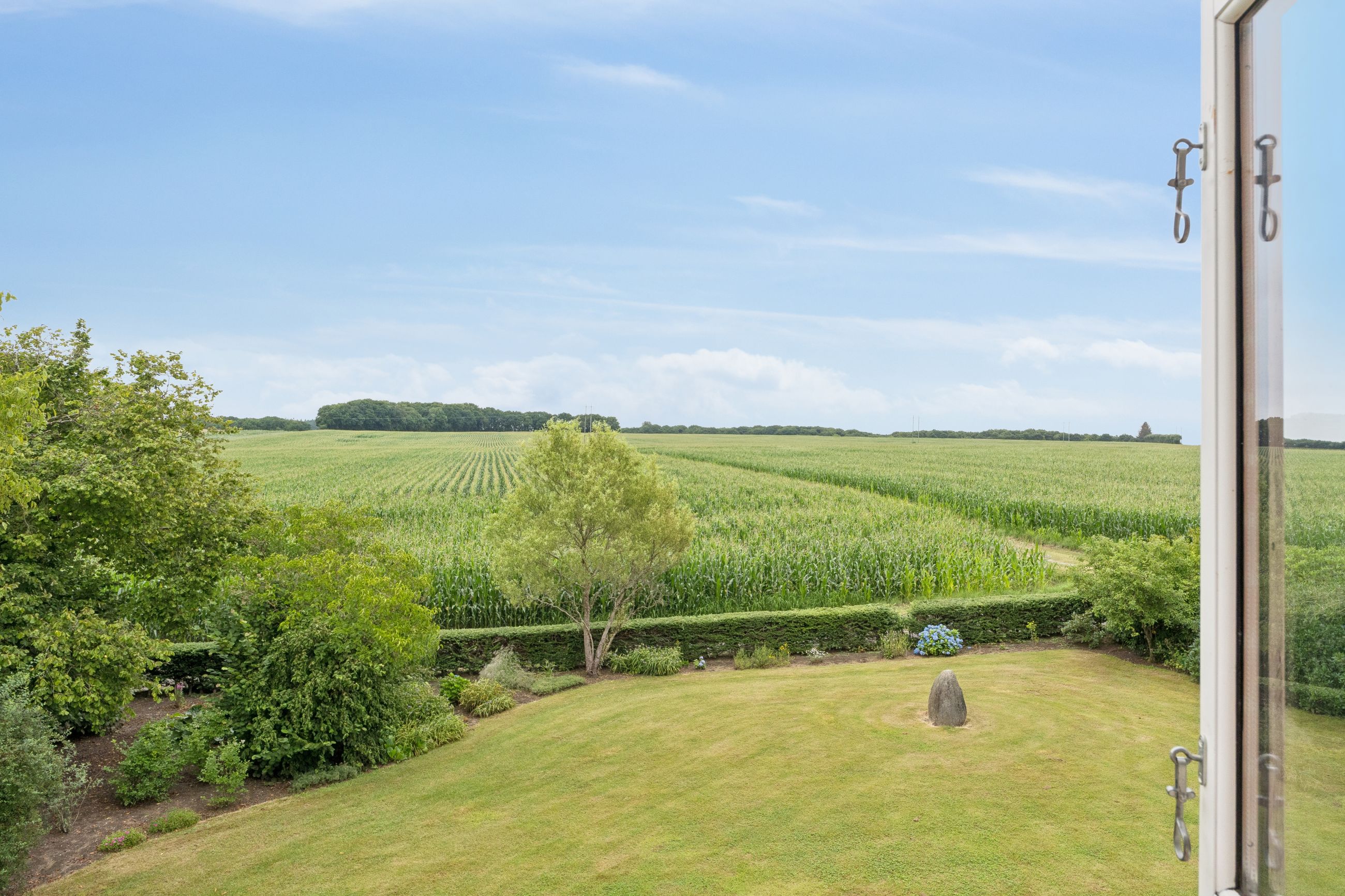 Boligen byder på en varm og indbydende atmosfære med lyse opholdsrum, hyggelige detaljer og god plads til både familie og gæster. Her er det let at føle sig hjemme. Fra stue og køkken er der udsigt til haven og markerne, og udenfor kan du indrette terrasser og hyggekroge, hvor du kan nyde naturen i fred og ro.