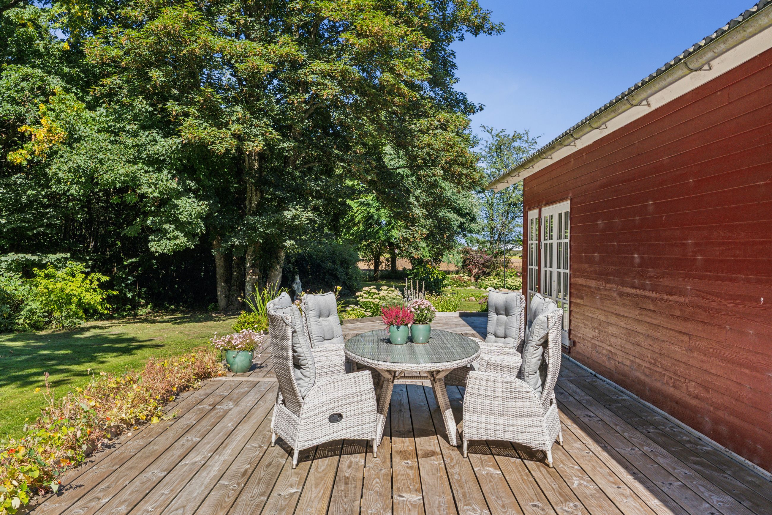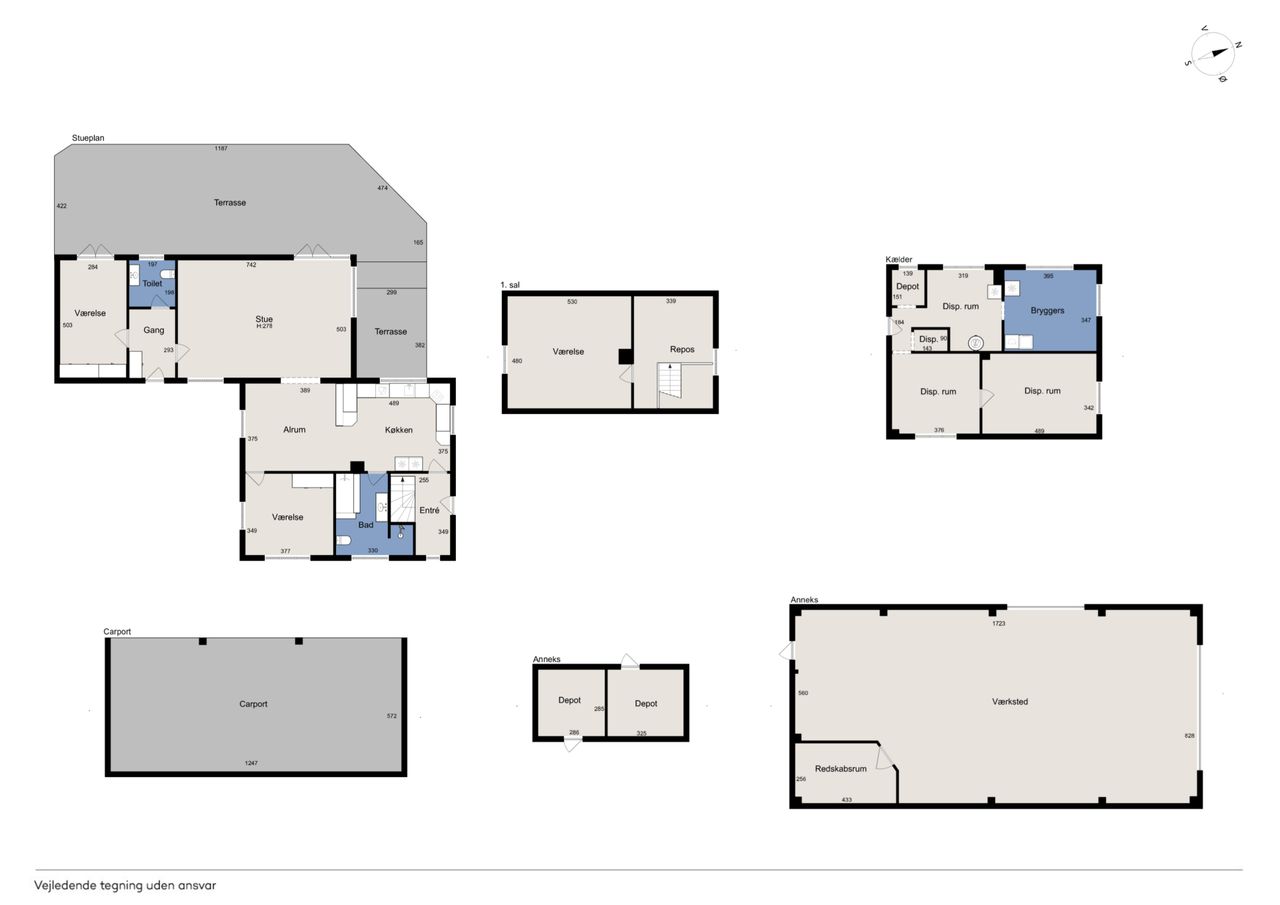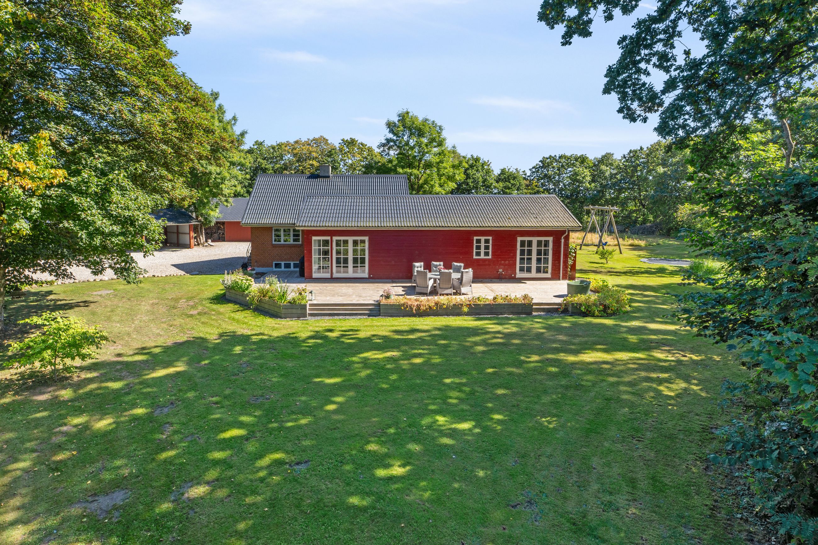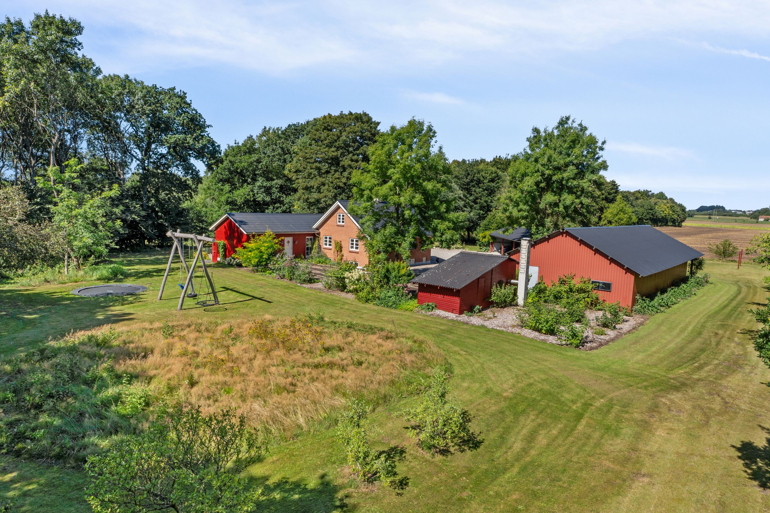 Ejendommen rummer solide og anvendelige udbygninger, der åbner op for mange muligheder – uanset om det er til hobby, opbevaring eller mindre erhverv. Hertil kommer en rummelig tredobbelt carport, hvor både biler, trailer og maskiner kan stå godt beskyttet.