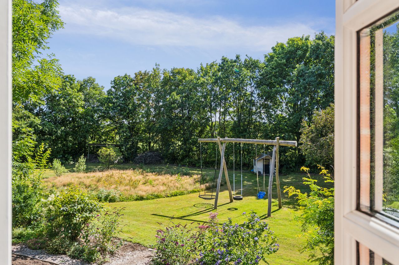 Det er en ejendom, der henvender sig til familien, der ønsker at bo i grønne omgivelser, såvel som til dig, der længes efter mere plads, udsigt og en hverdag, hvor fuglekvidder og naturens rytme sætter tempoet.