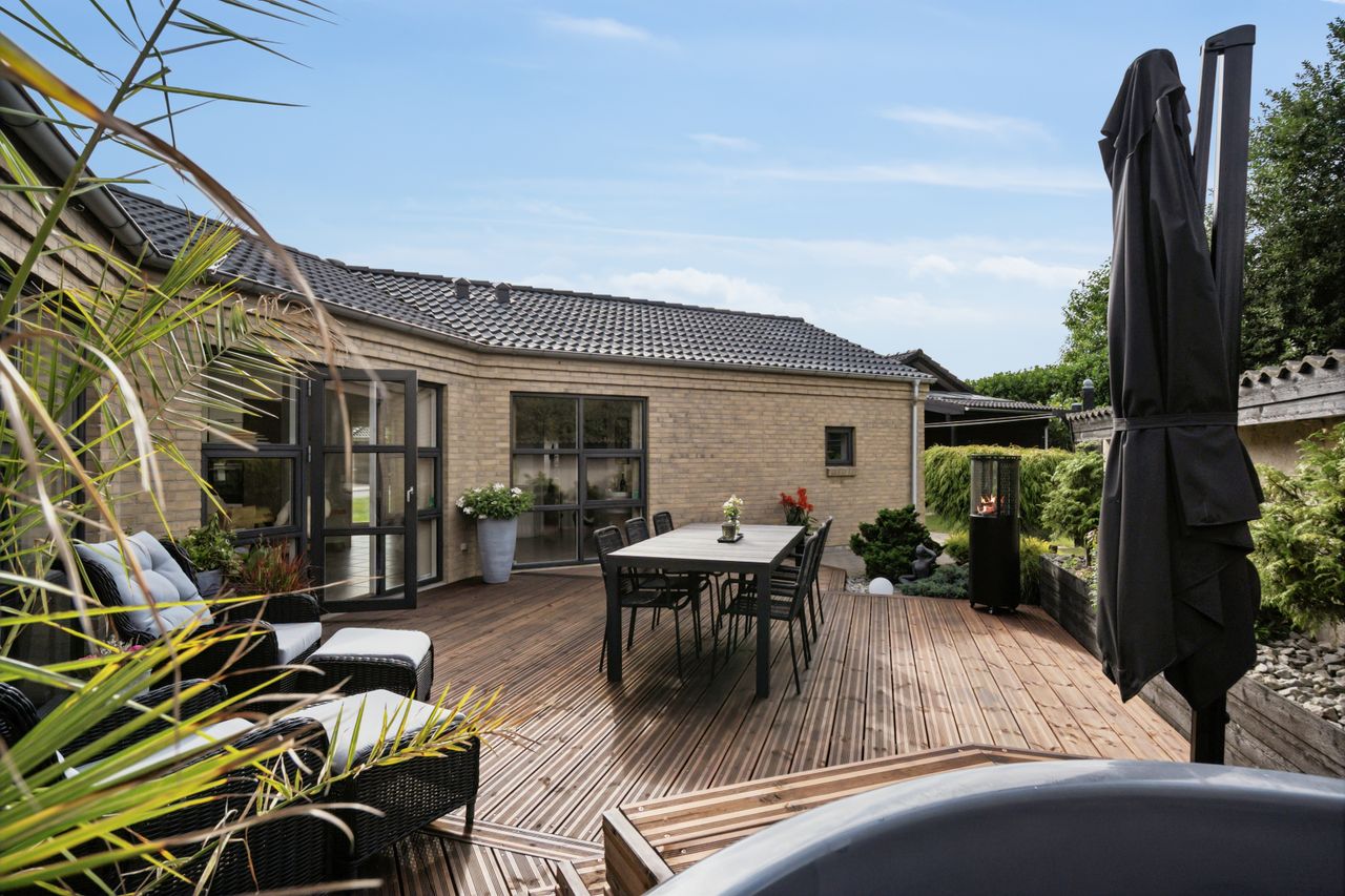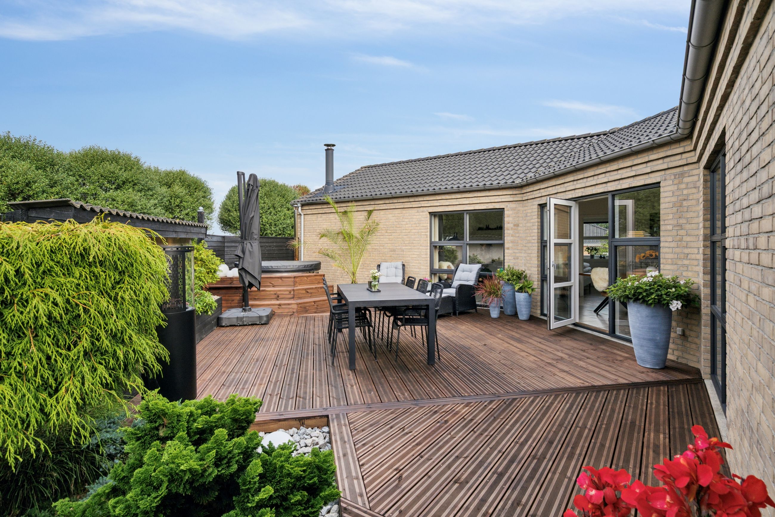 En af ejendommens absolutte perler er den store, solrige terrasse, som inviterer til hyggelige stunder med familie og venner. Her er det oplagt at nyde sommerdage, grillmiddage eller bare ren afslapning i private rammer.