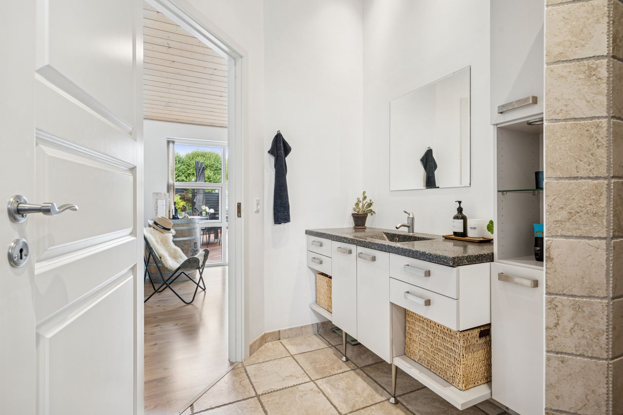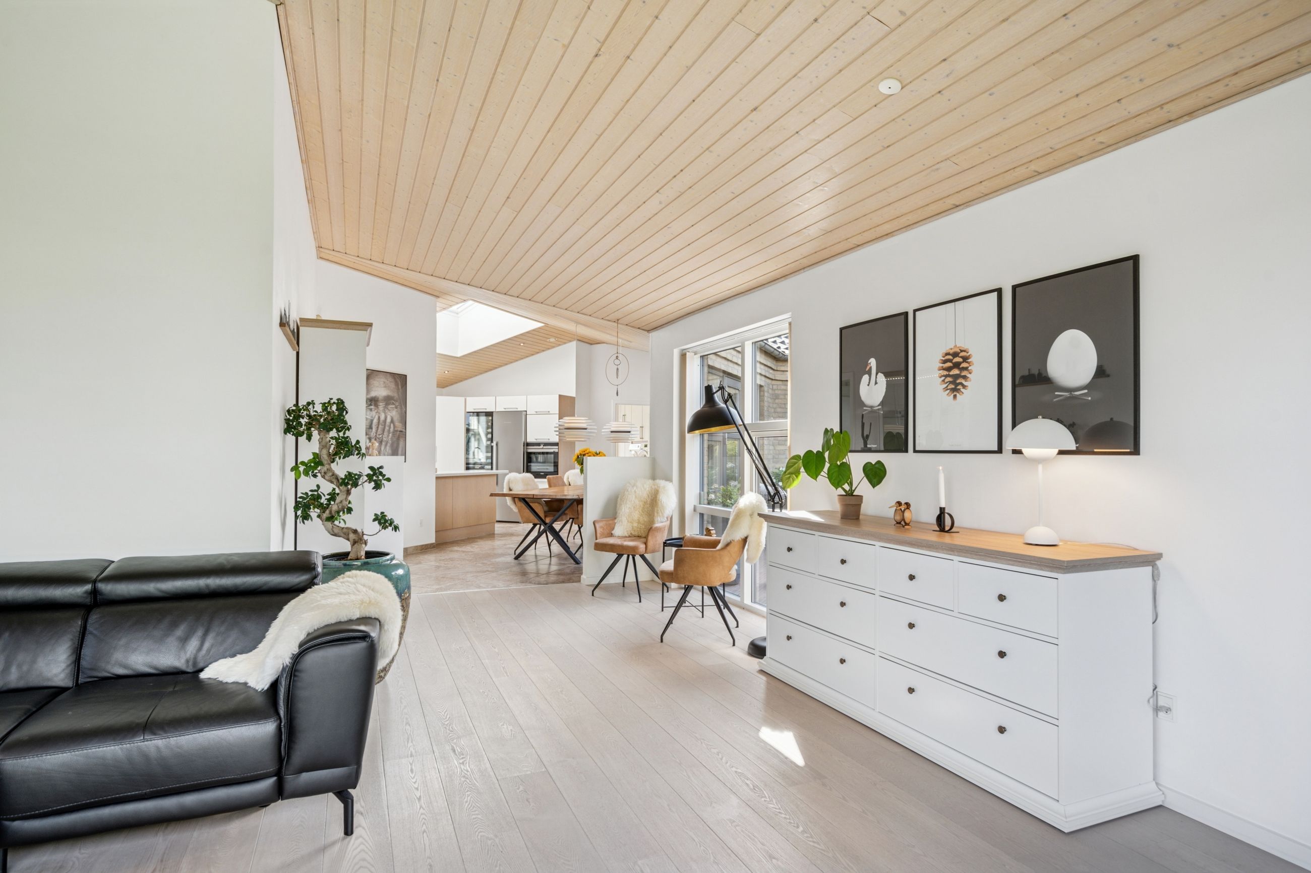 Boligen fremstår lys, moderne og indflytningsklar med en gennemtænkt planløsning, der giver både plads og komfort til hele familien. Her får du et hjem, hvor detaljer og materialevalg går op i en højere enhed, og hvor du straks mærker, at der er kælet for helheden.