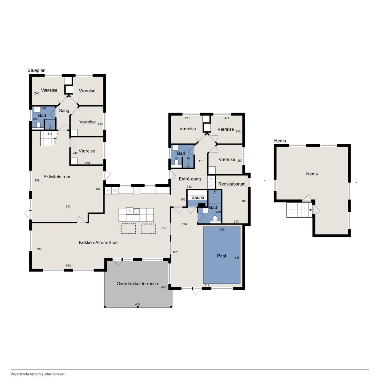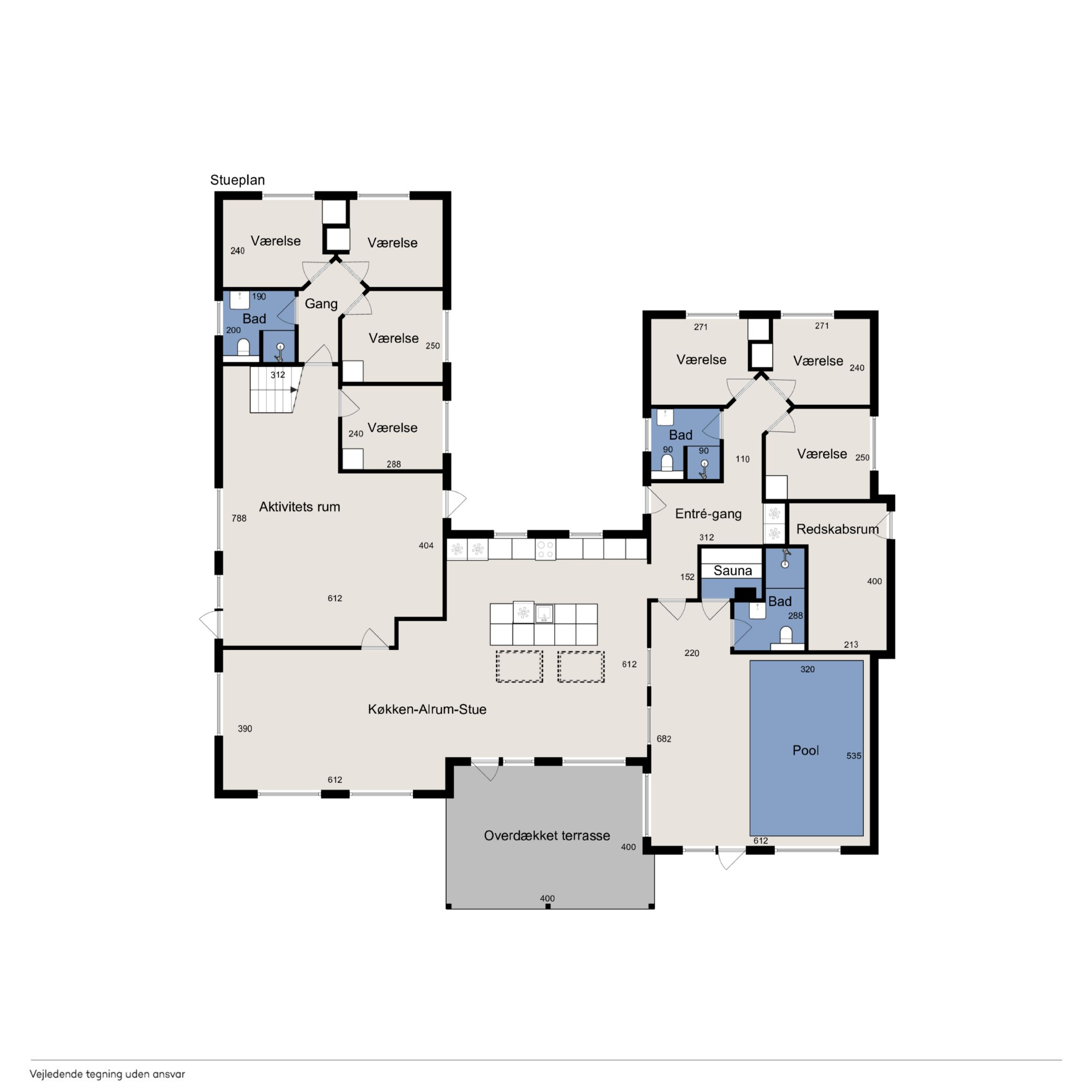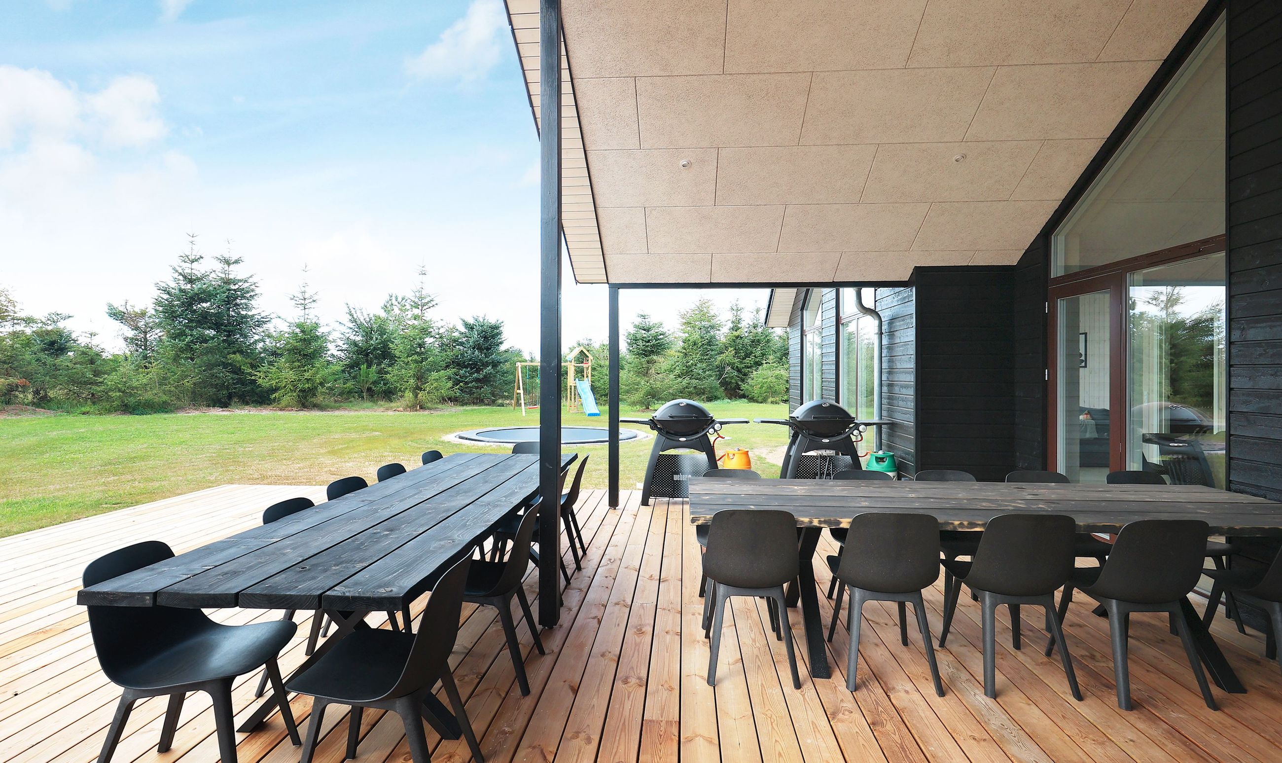 Huset er indrettet med plads til hele 20 personer, hvilket gør det ideelt til store familier, flere generationer eller grupper af venner, der ønsker at samles i naturskønne omgivelser.