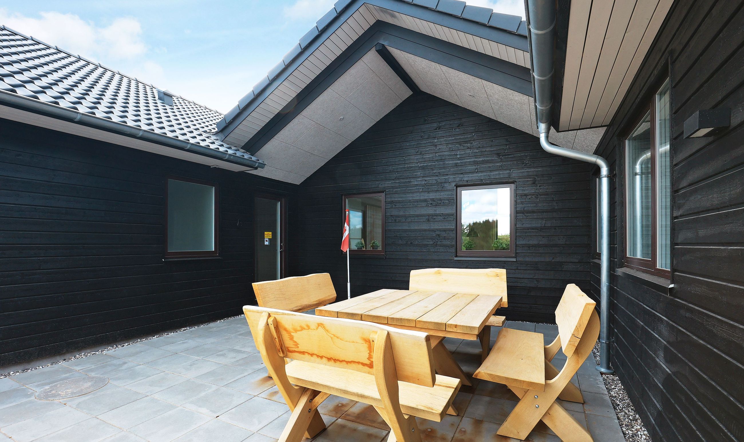 Udenfor finder I en skøn terrasse, hvorfra man kan nyde solen, de lune sommeraftener og de dejlige omgivelser.