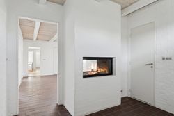 Huset byder på et særdeles generøst boligareal med plads til både familieliv og gæster. Her er lyse og indbydende opholdsrum, hvor store vinduespartier sikrer et flot lysindfald og en tæt kontakt til uderummet. Indretningen er gennemtænkt og funktionel – et hjem, hvor æstetik og praktiske løsninger går hånd i hånd.