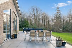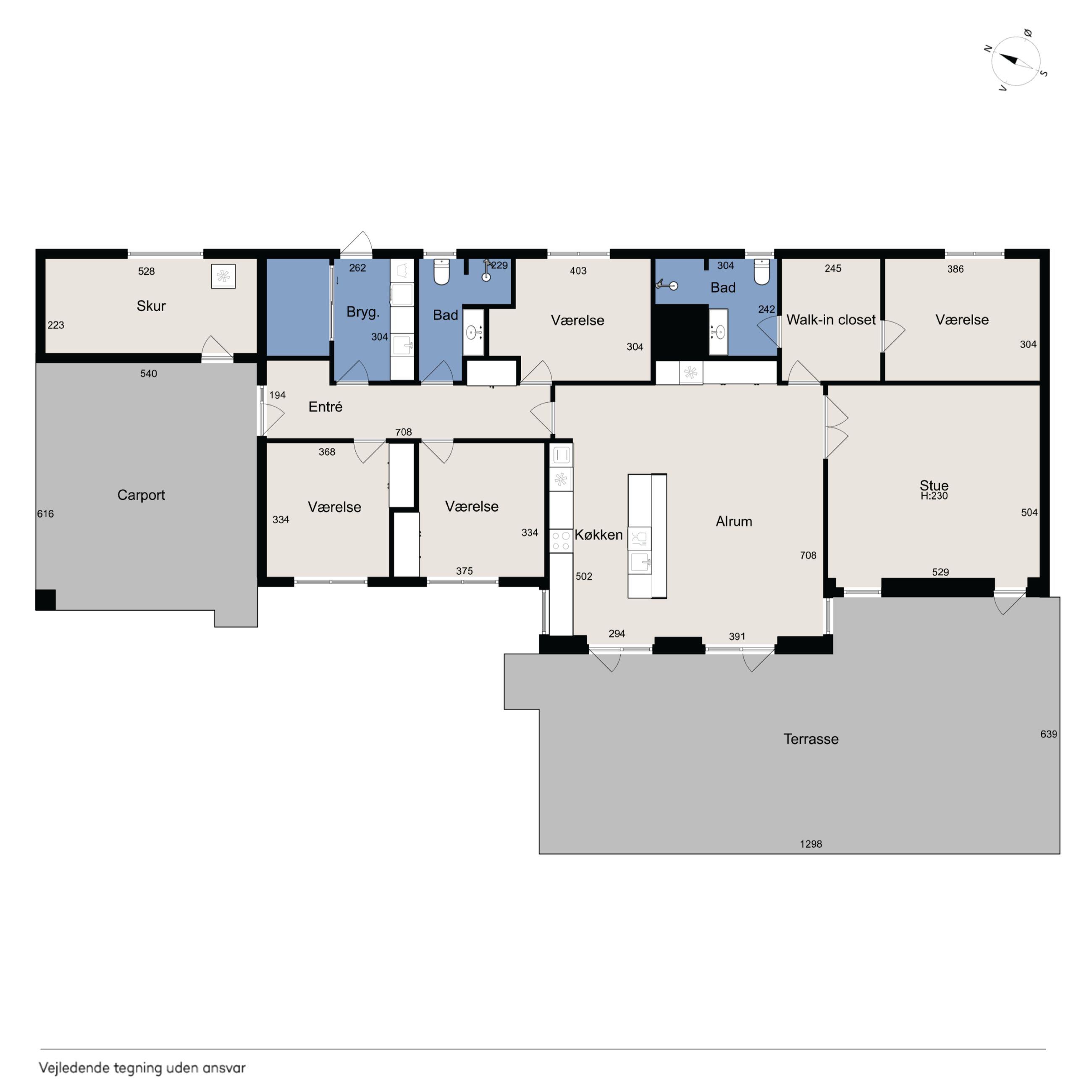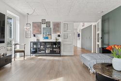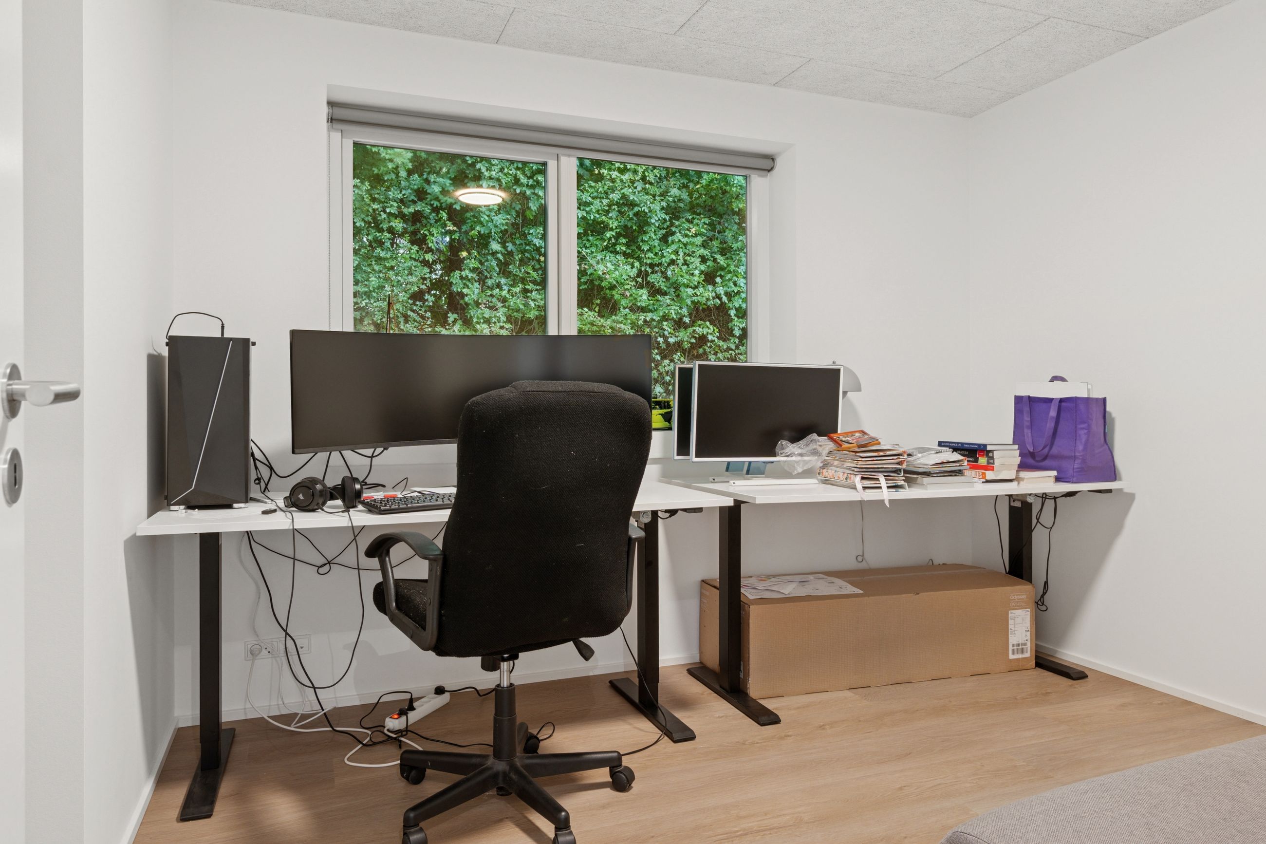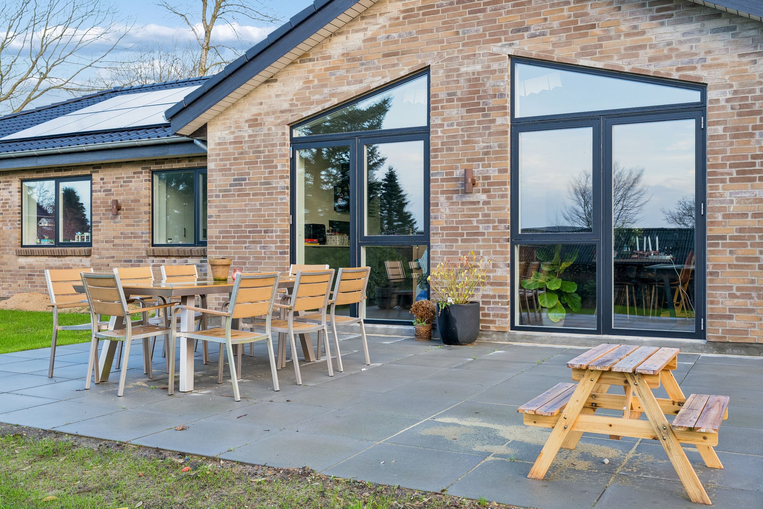 I forlængelse af alrummet finder du en hyggelig stue med direkte udgang til terrasse. Den udendørs tilknytning gør det let at flytte den sociale aktivitet udenfor – perfekt til sommeraftener, grill og udendørs måltider. Stuen har store vinduer, der giver et gennemgående og venligt lysindfald og skaber en følelse af rummelighed.