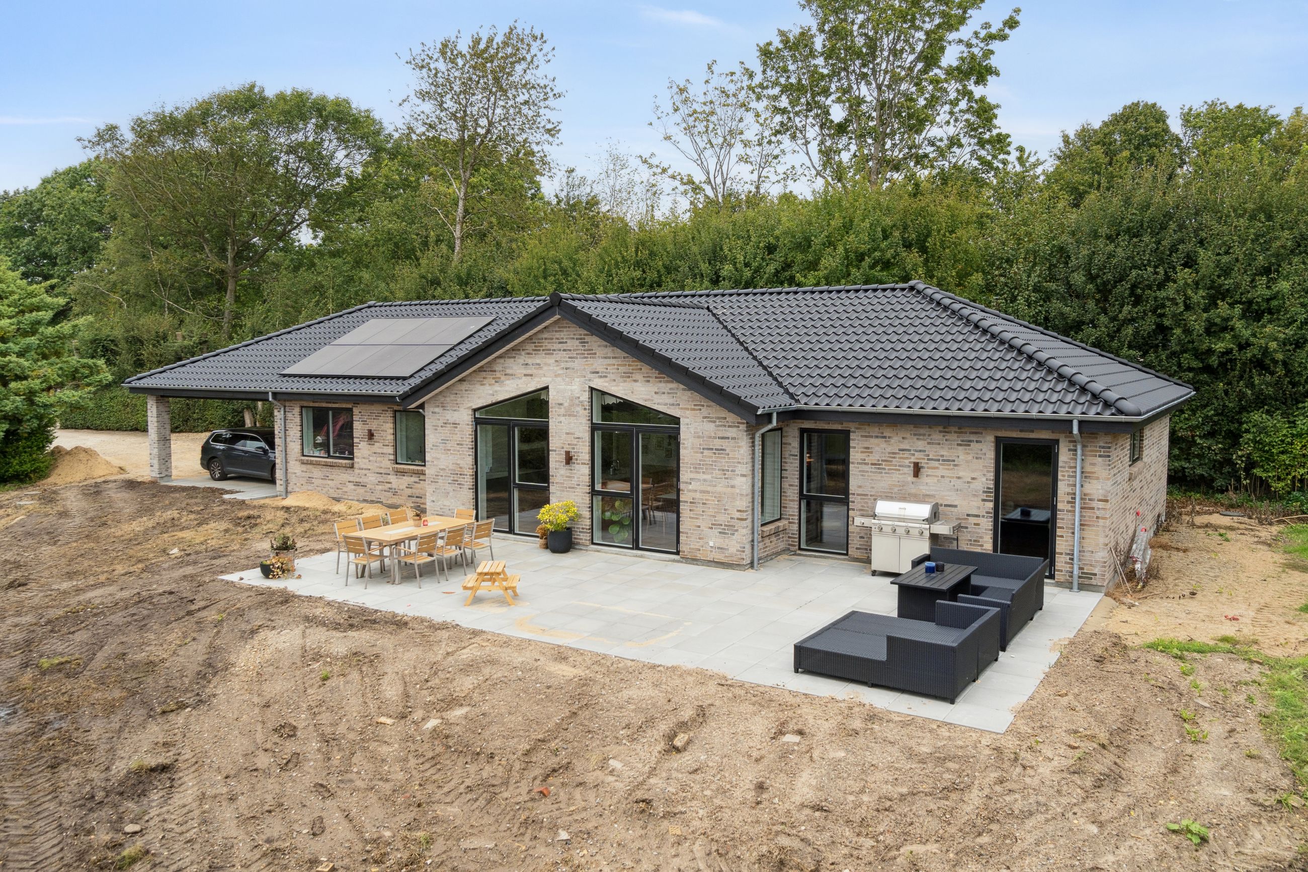 Nyopført villa på stor grund - med ryggen mod skoven.
