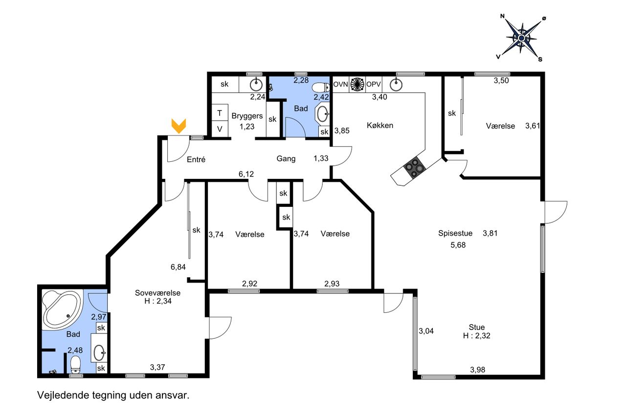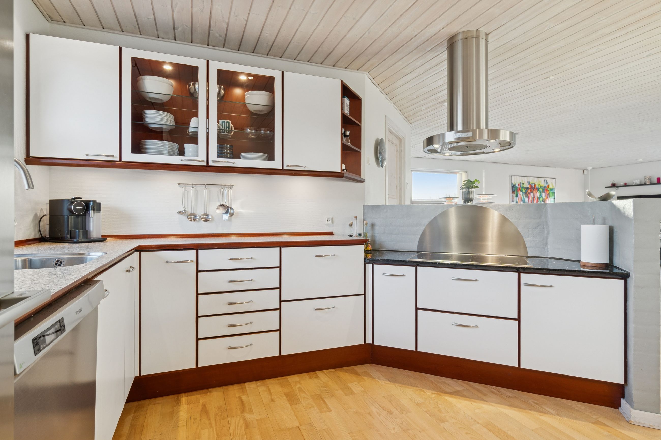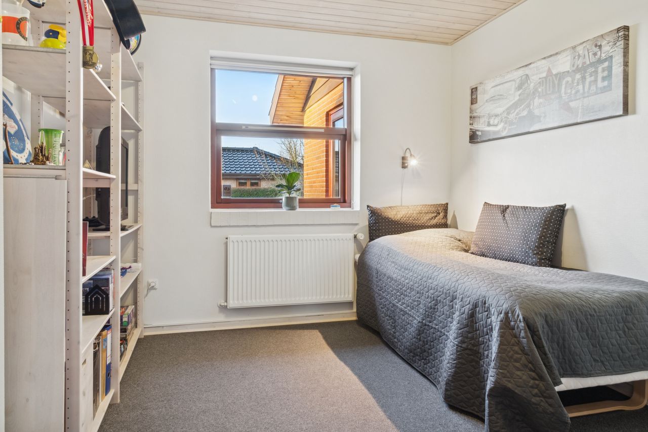 Huset rummer 3 børneværelser, et stort soveværelse og 2 badeværelser, så der er rigeligt med plads til både børn og voksne. Alle rum fremstår indbydende og funktionelle, med smukke detaljer og praktiske løsninger, der gør hverdagen lettere.