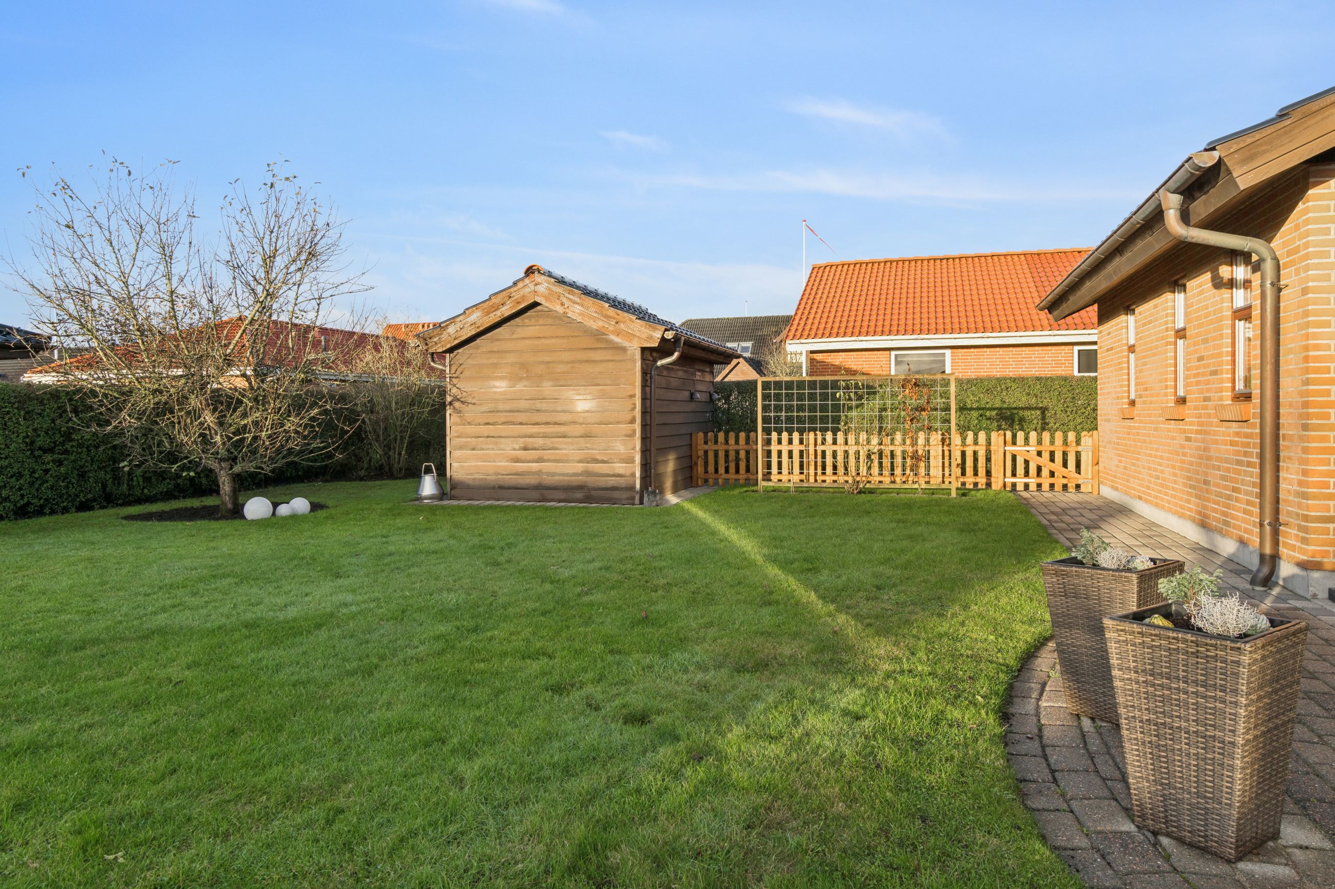 Udenfor venter en dejlig, lukket have, hvor du kan nyde solen i fred og ro. Huset har desuden et sydvestvendt haveafsnit, som giver perfekt mulighed for at nyde solens stråler hele dagen. Den grønne oase er ideel til både afslapning og leg for børnene.