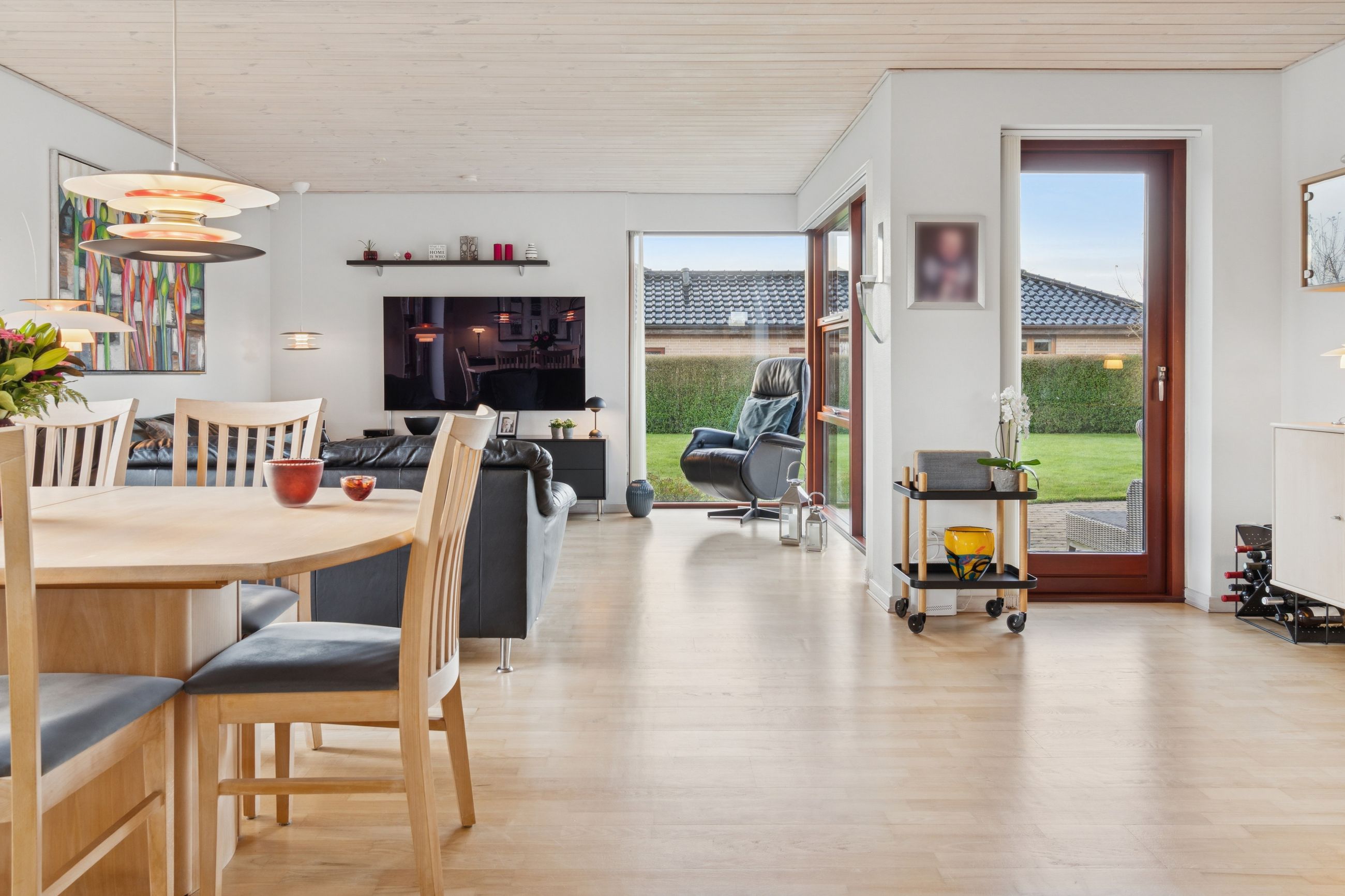 Beliggenheden er også en stor fordel. Huset ligger i et roligt og børnevenligt område med mange stisystemer, der giver nem adgang til både Undalslund Skov, indkøbsmuligheder, skole og børnepasning. Her får du det bedste af begge verdener – fred og ro tæt på naturen, samtidig med at du har alt det praktiske tæt på.