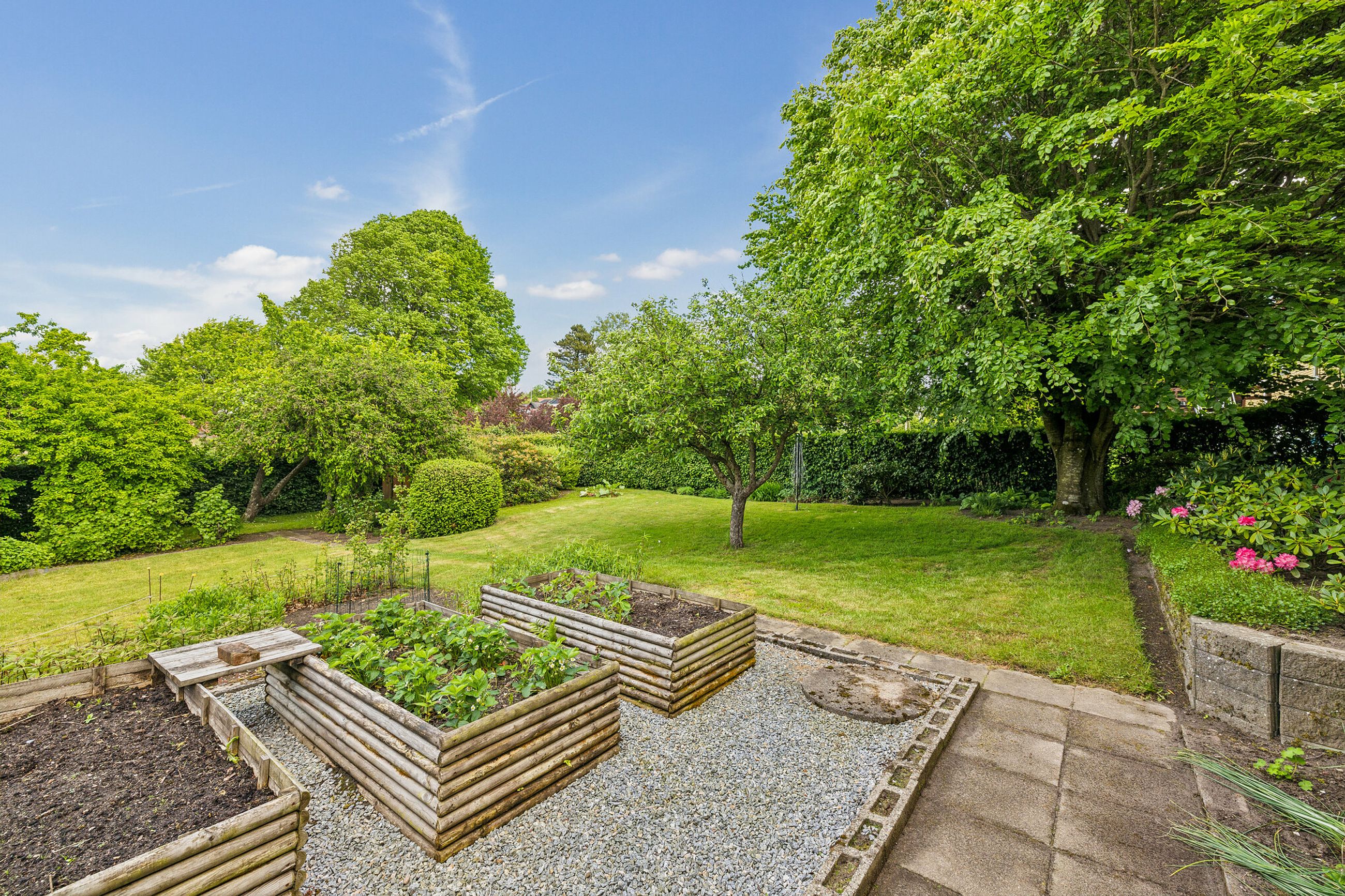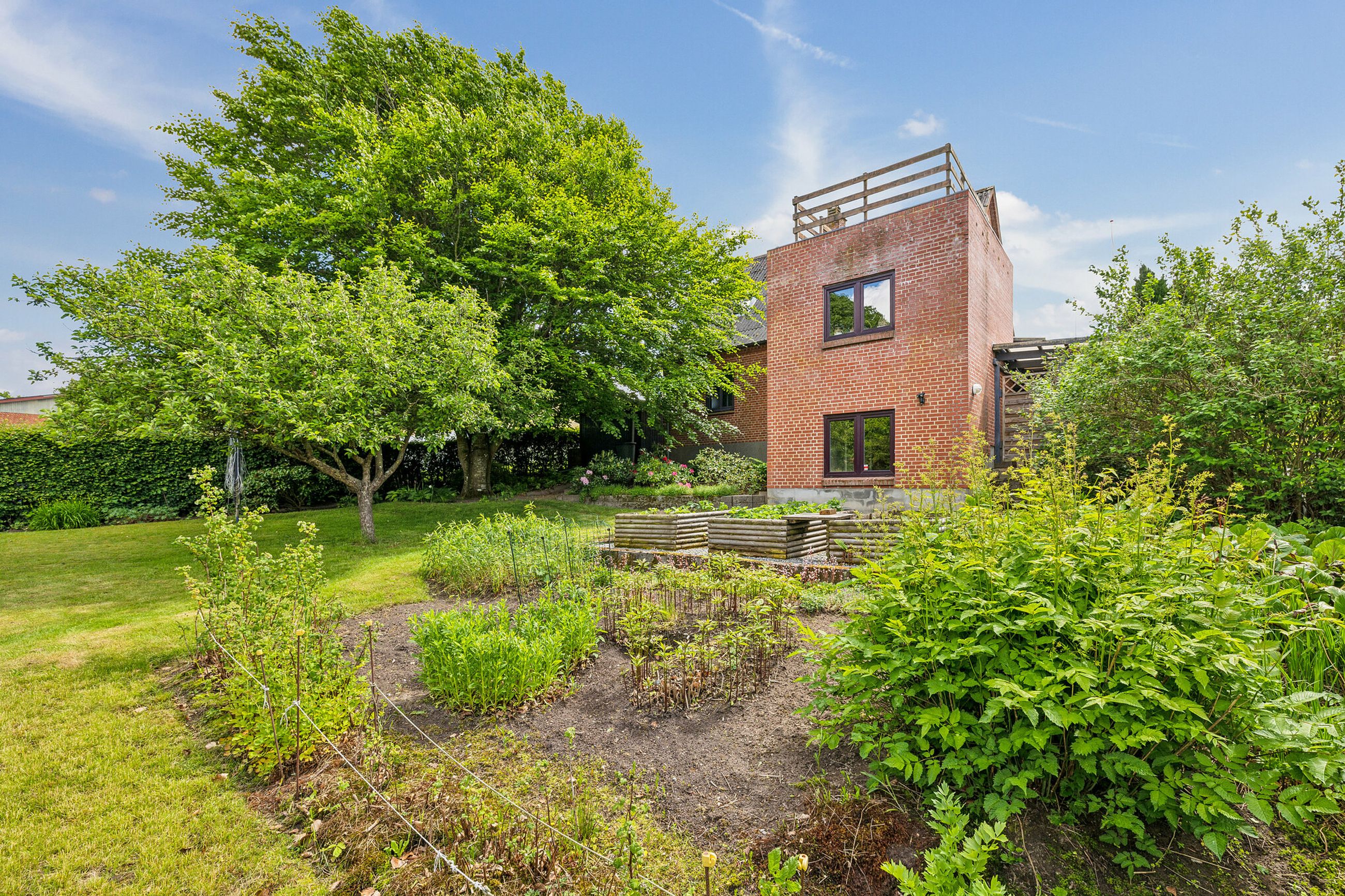 Udenfor venter en stor, solrig have, ideel til både afslapning og leg. Her er plads til både grillfester på terrassen, børnelege i haven. Du får oven i købet et lille drivhus til den grønne hobbyist. Den velplejede have giver også gode muligheder for at skabe din egen drømmeoase, og den naturskønne beliggenhed giver ro og fred, samtidig med at du kun er få minutters kørsel fra Viborgs byliv.