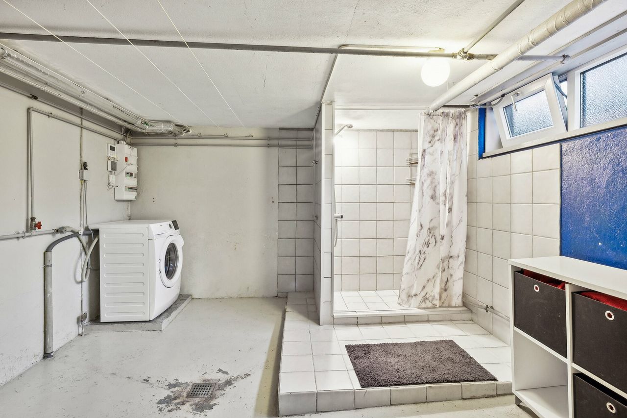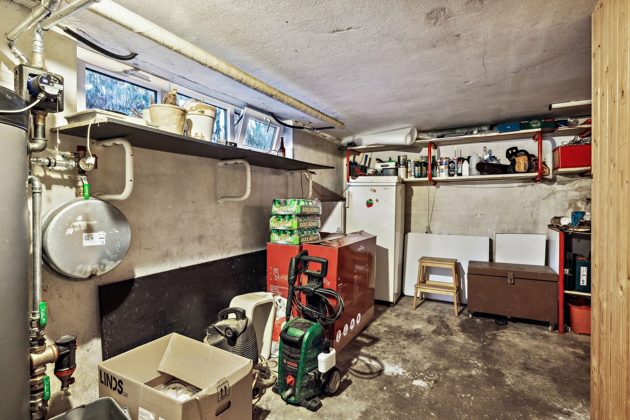 Kælderen på 74 kvm giver både et ekstra soveværelse og opbevaringsplads eller mulighed for at indrette et hobbyrum, værksted eller måske et ekstra opholdsområde. Det er en ekstra fordel, der gør denne bolig yderst funktionel for familien med behov for både plads og fleksibilitet.