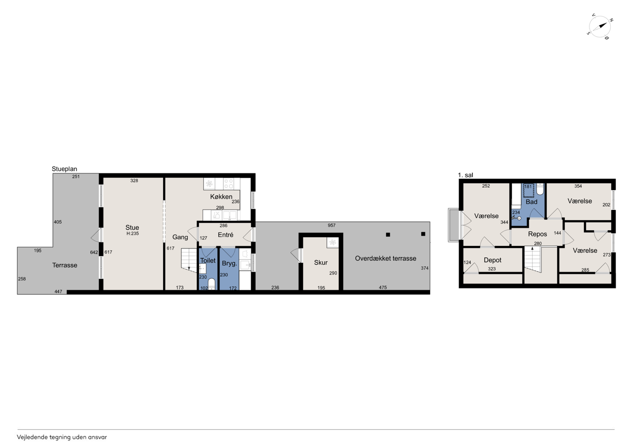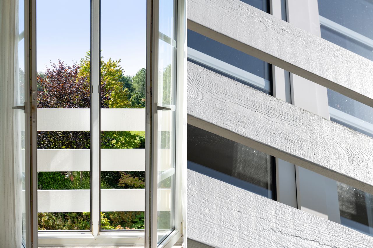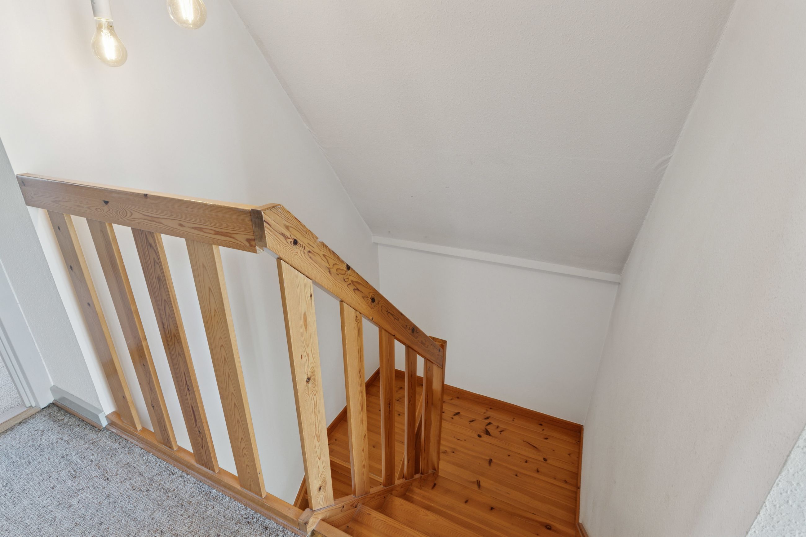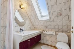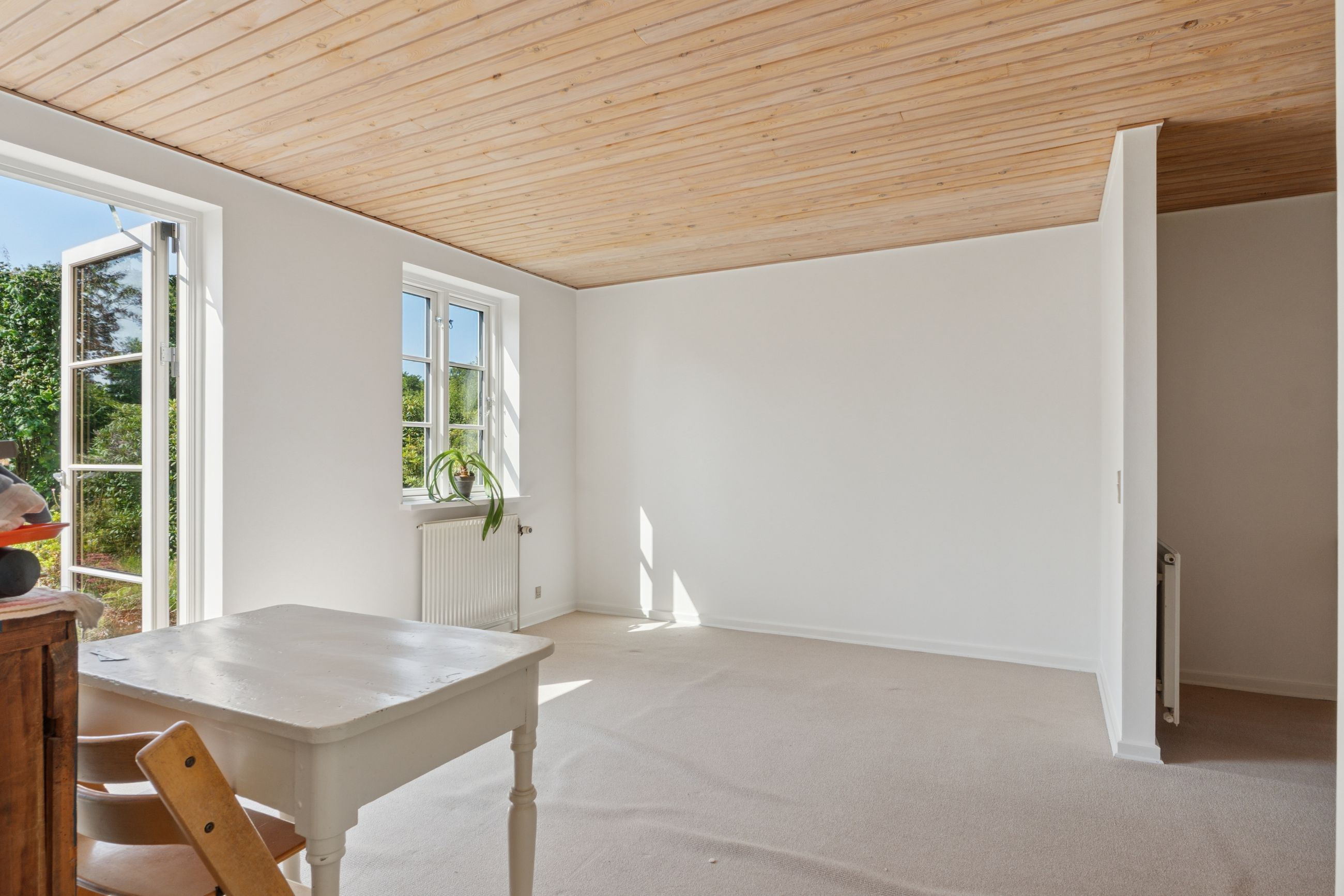Første sal nås via en halvsvingstrappe til repos. Her finder du et badeværelse med brus samt tre gode værelser – det ene med fransk altan og udsigt til smukt grønt areal.