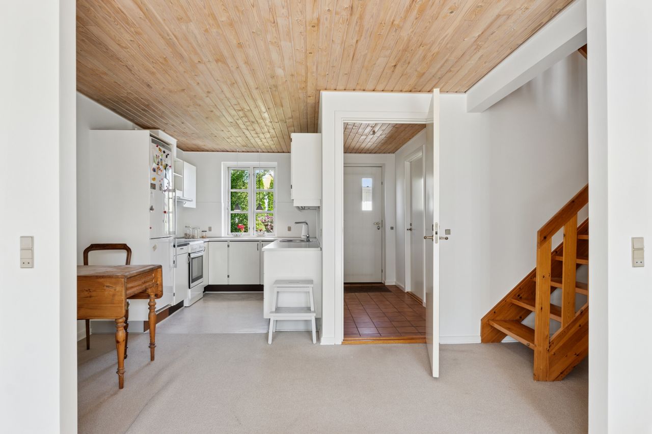 Midt i det grønne Houlkær-kvarter finder du en lille, velholdt landsby med 18 smukke skagenshuse, som med deres karakteristiske arkitektur og fællesskabsånd leder tankerne direkte mod det autentiske Skagen. Her bor man i fredelige og trygge omgivelser – omgivet af blomstrende haver, røde tegltage og en stemning, der skal opleves. Boligen er opført i 1985 og byder på 95 veludnyttede kvadratmeter fordelt på to plan. Indretningen er gennemtænkt og funktionel med både hygge og praktik i højsædet. Derudover fremstår boligen med flotte og nymalet vægge i hhv. stuen og køkken/alrum i 2025. Stueplanen rummer en rummelig entré med adgang til praktisk bryggers og et gæstetoilet. Hjertet i boligen er det lyse og åbne køkken/alrum i åben forbindelse med stuen, hvor flere vinduespartier giver et skønt lysindfald og inviterer haven og terrassen indenfor. Herfra er der udgang til en solrig, sydvestvendt terrasse og en privat have, hvor solen kan nydes hele dagen – fra morgenkaffen til aftenens sidste stråler.