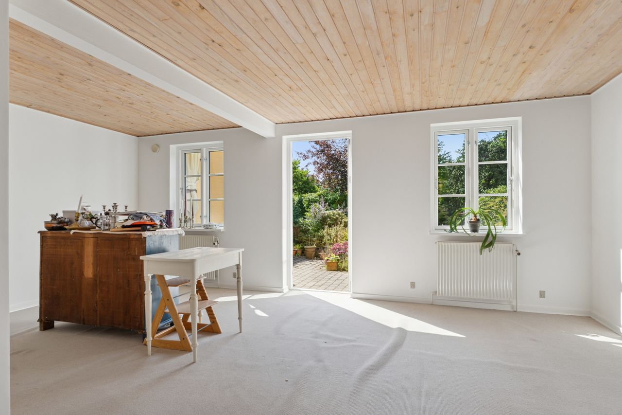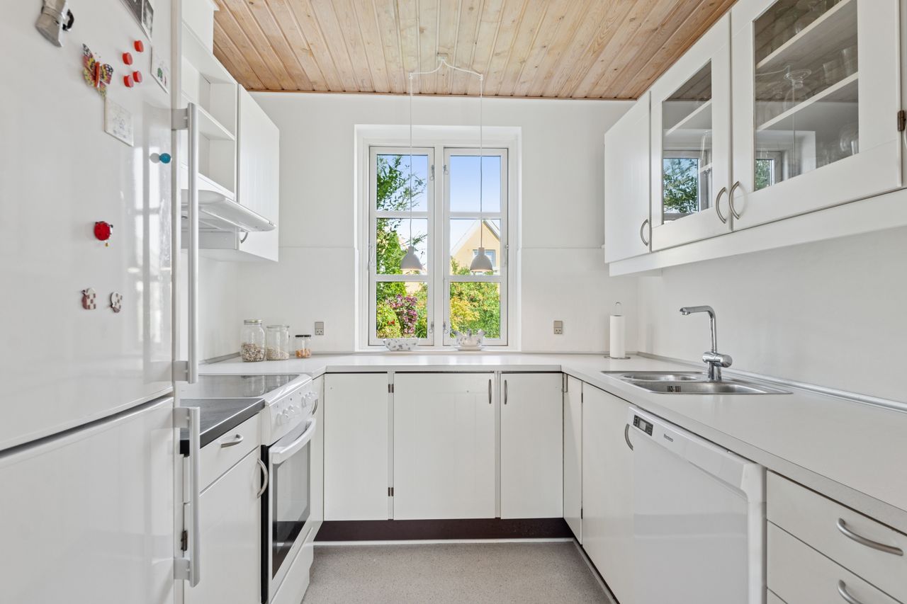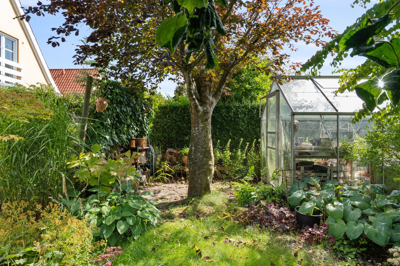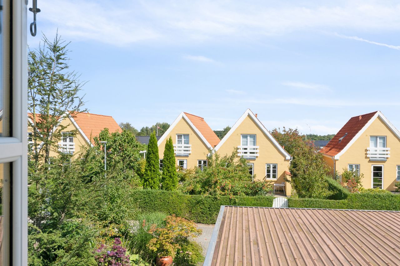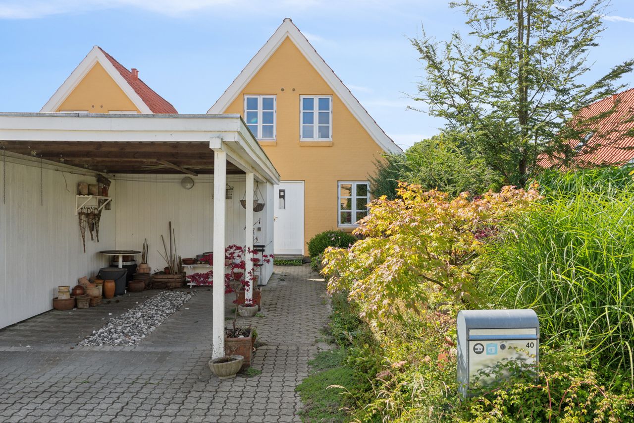 Til boligen hører carport med integreret udhus og en skøn have, hvor du kan finde sol hele dagen på flere skønne terrasser.